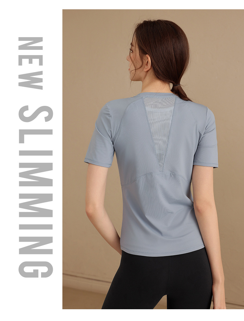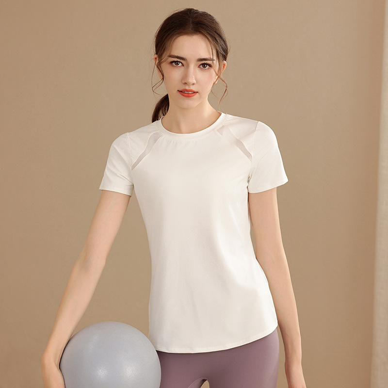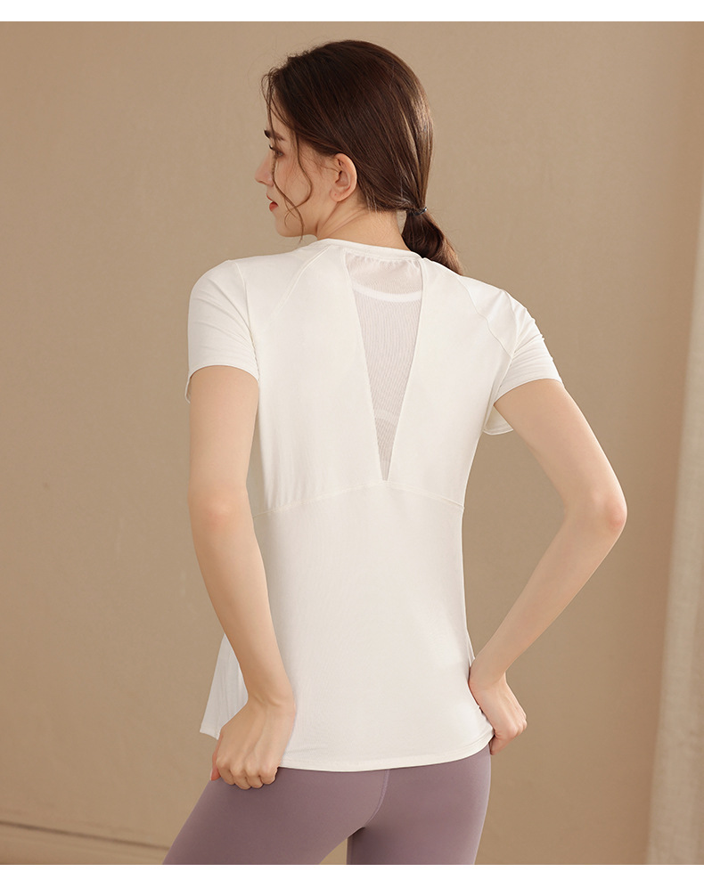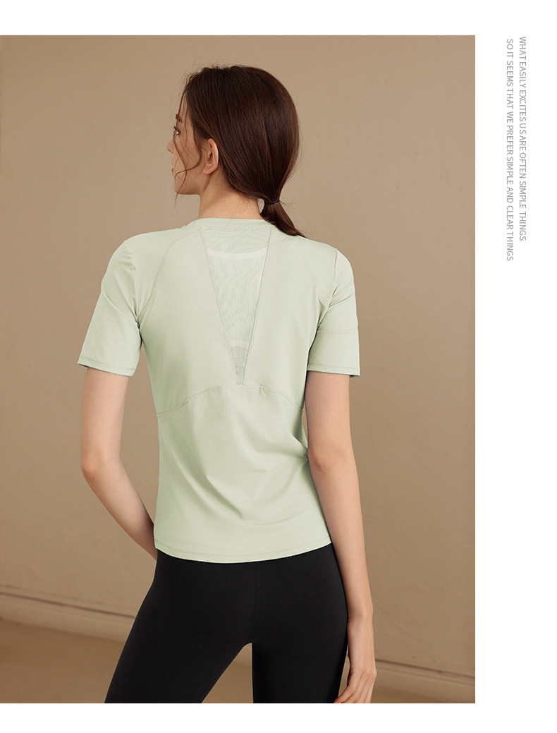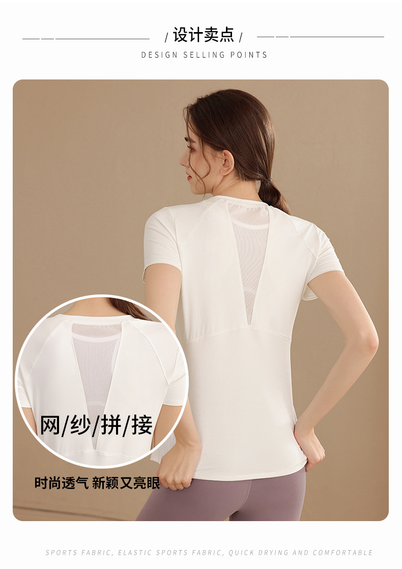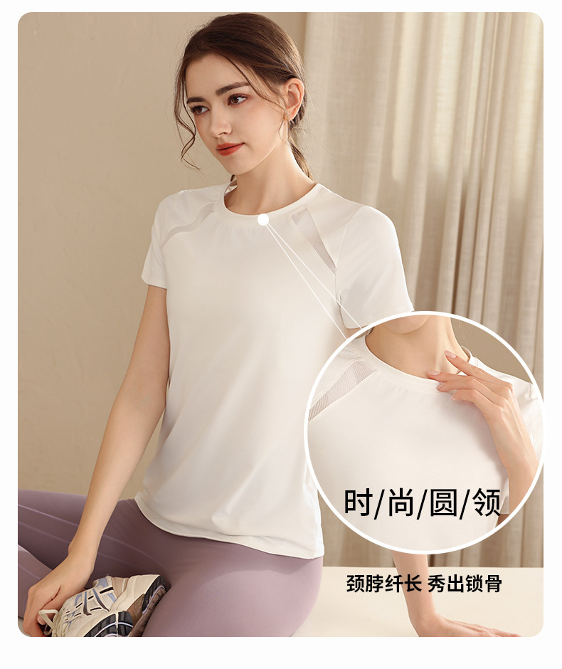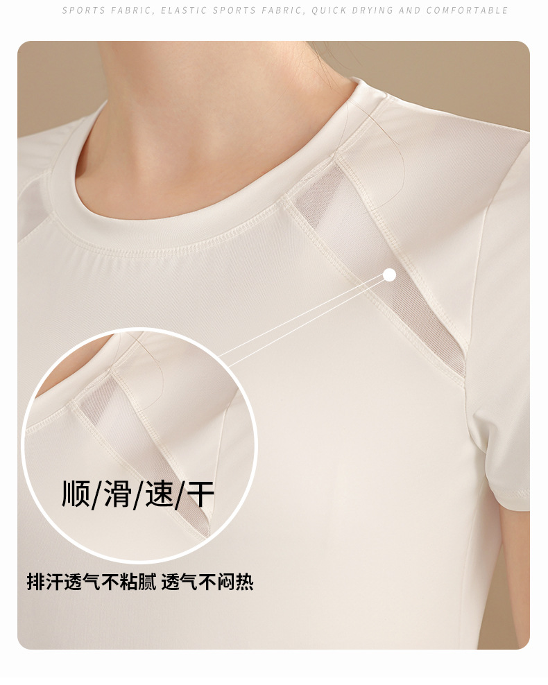 跑步健身速干运动短袖T恤女夏季透气网纱拼接薄款瑜伽服运动上衣