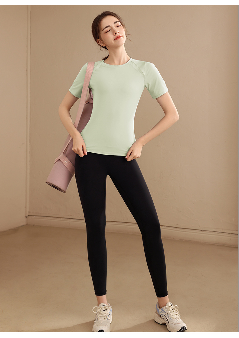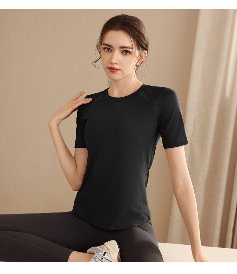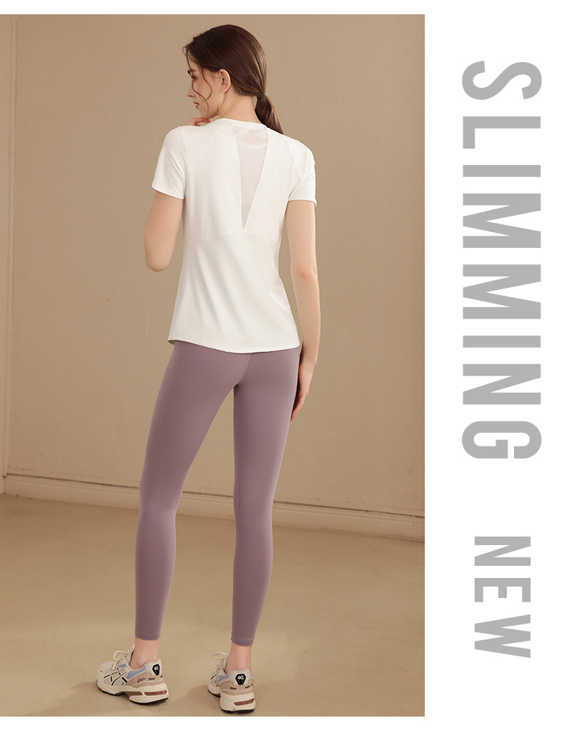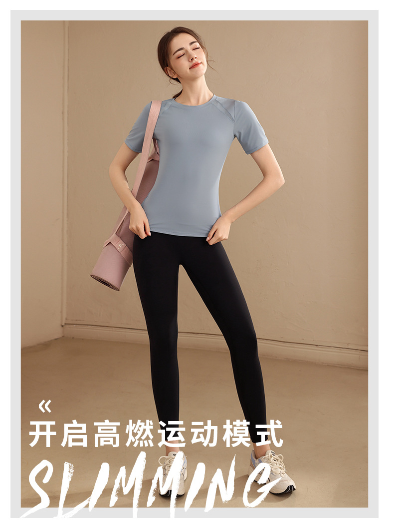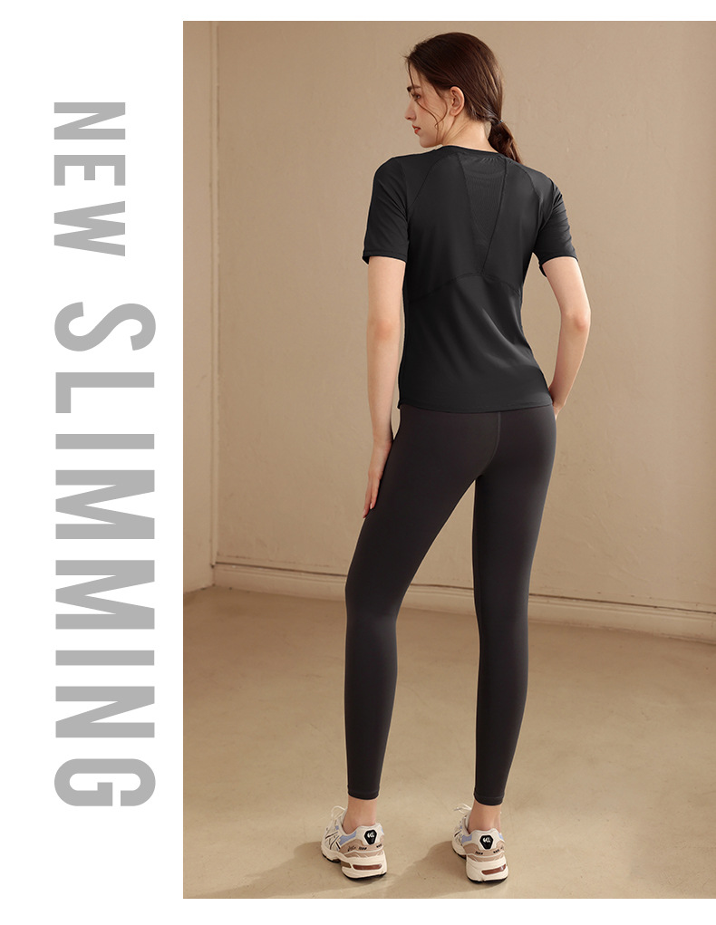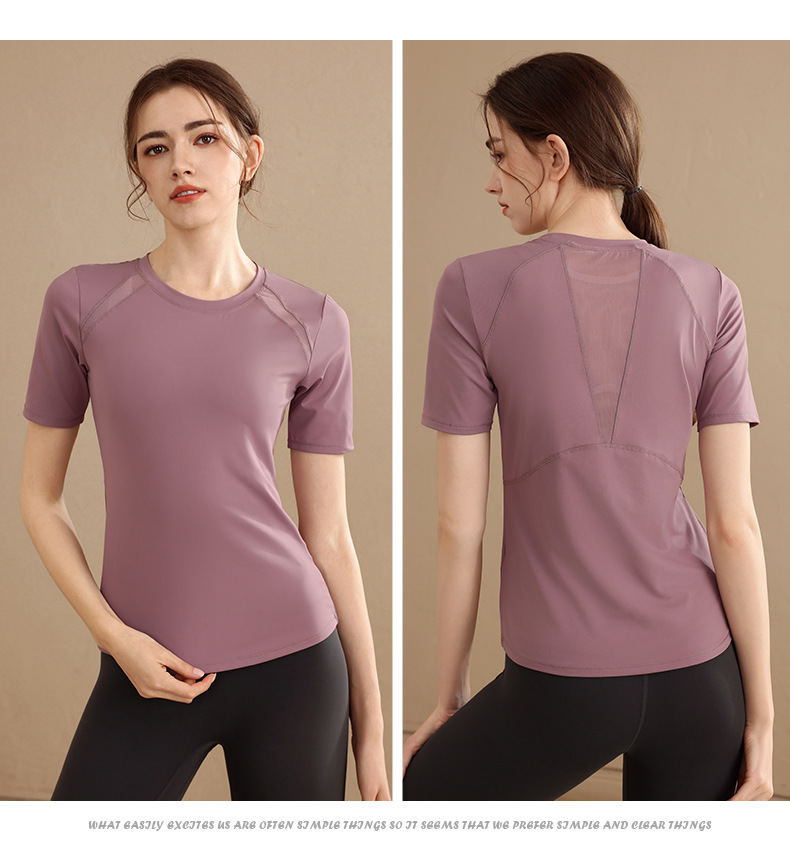 跑步健身速干运动短袖T恤女夏季透气网纱拼接薄款瑜伽服运动上衣