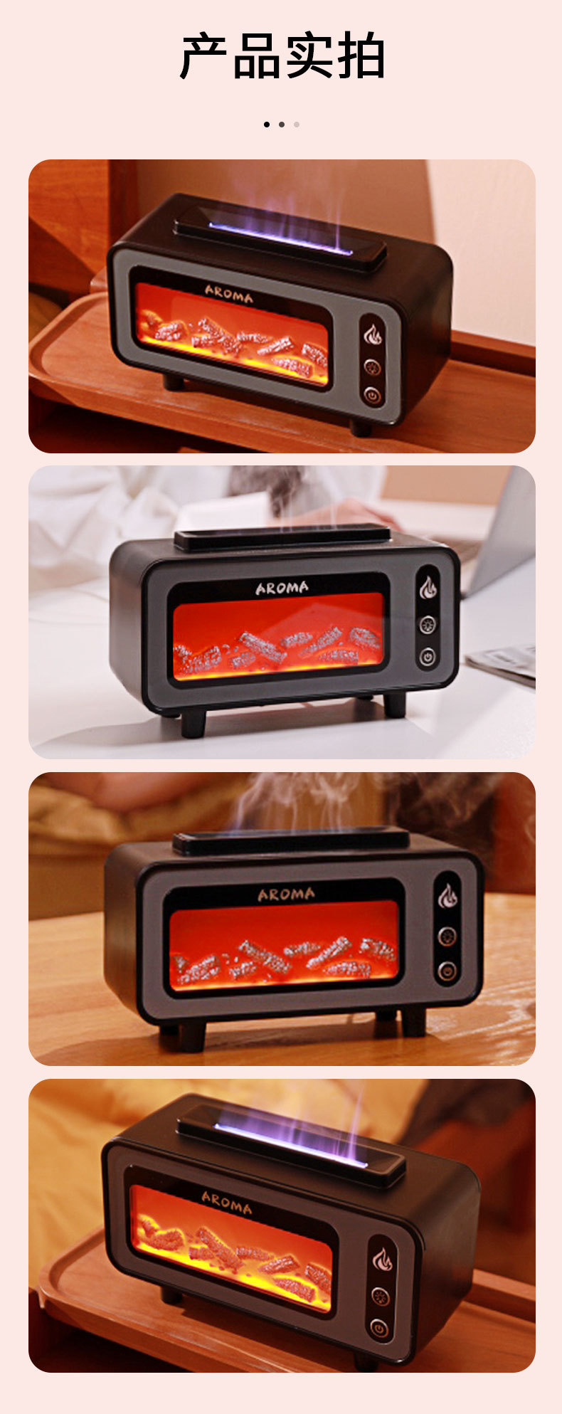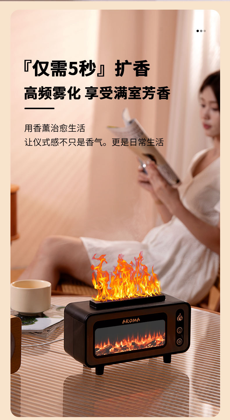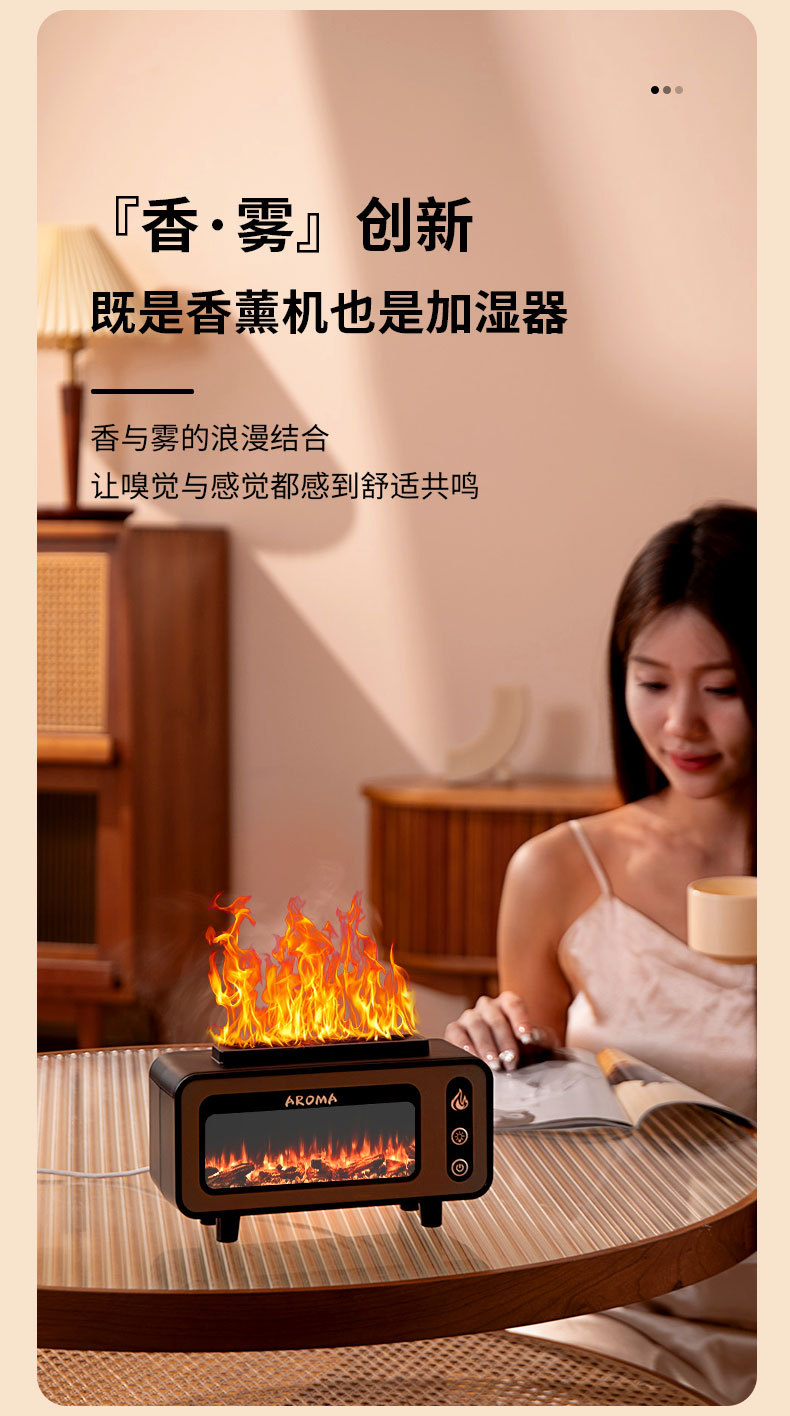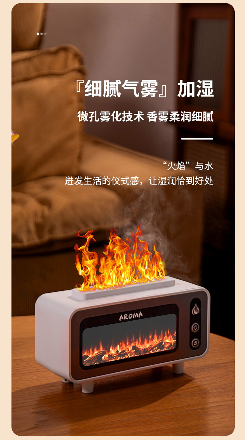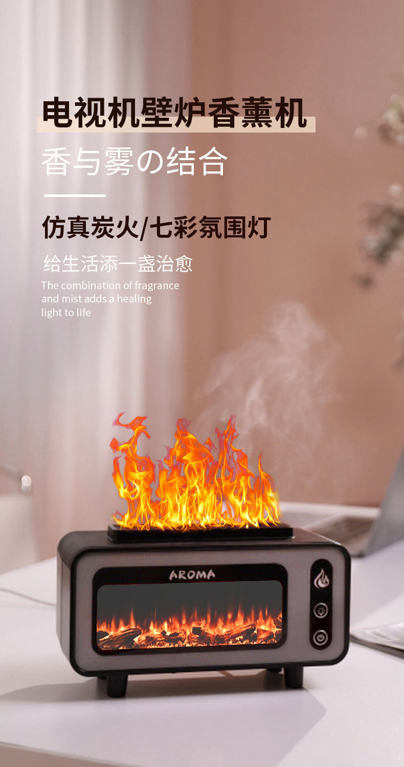 【加工定制】壁炉香薰加湿器USB七彩仿真火焰香薰机OEM定制logo
