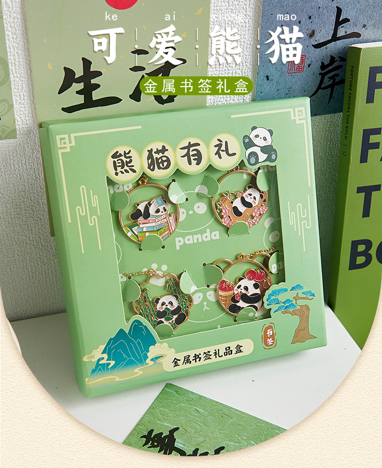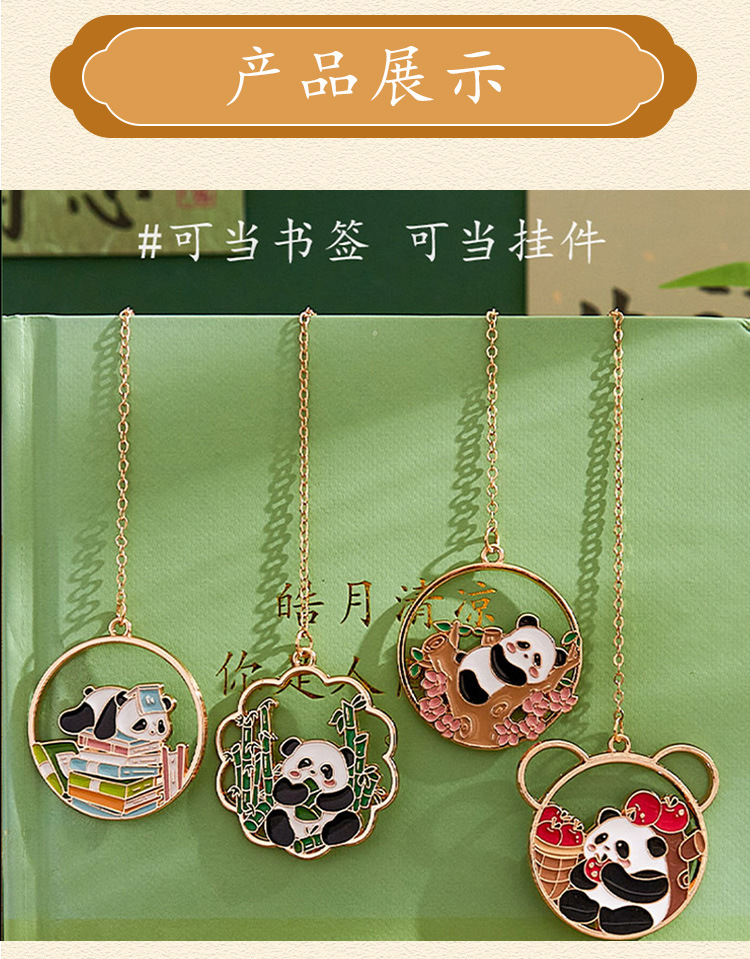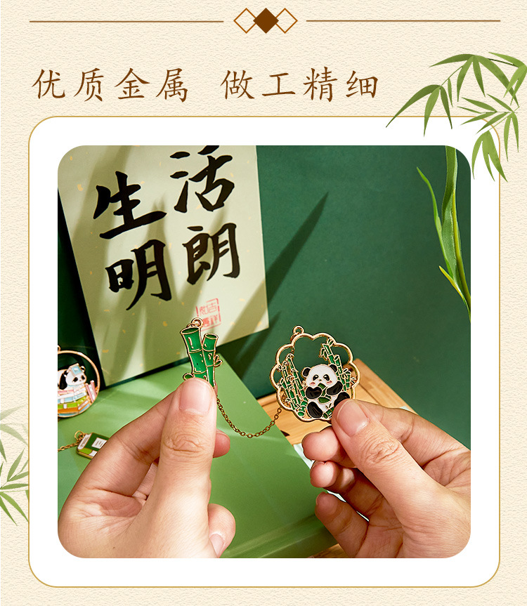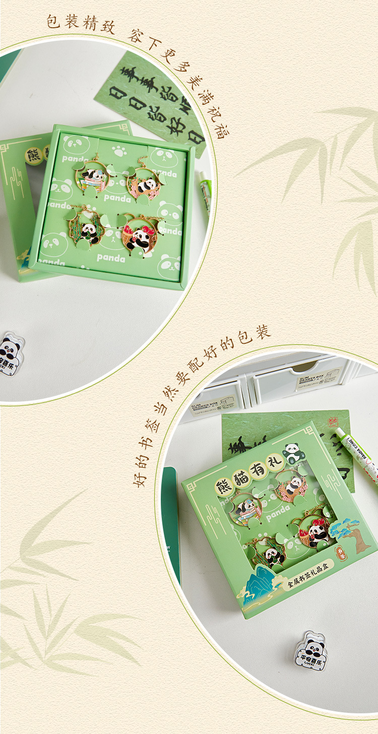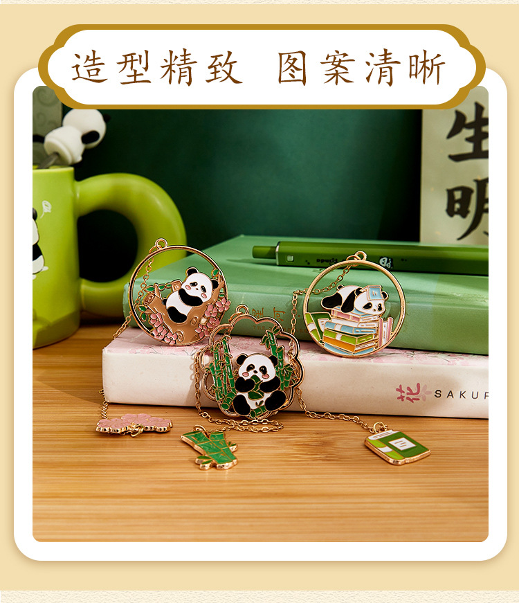 创意文艺金属可爱熊猫古风书签吊坠学生文具儿童节小礼品纪念礼盒