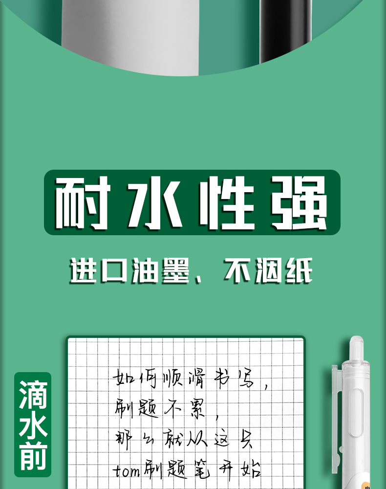 ST笔尖刷题笔小白笔专用速干按动中性笔黑笔顺滑水笔考试