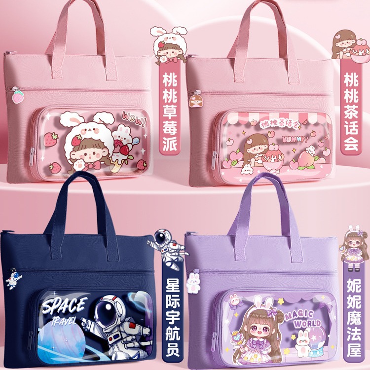 咔巴熊学生补习袋手提袋拎书袋小学生帆布袋男孩女孩作业文件袋
