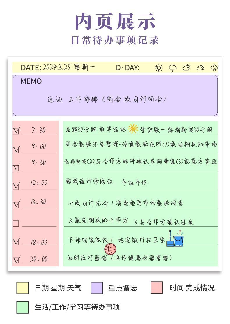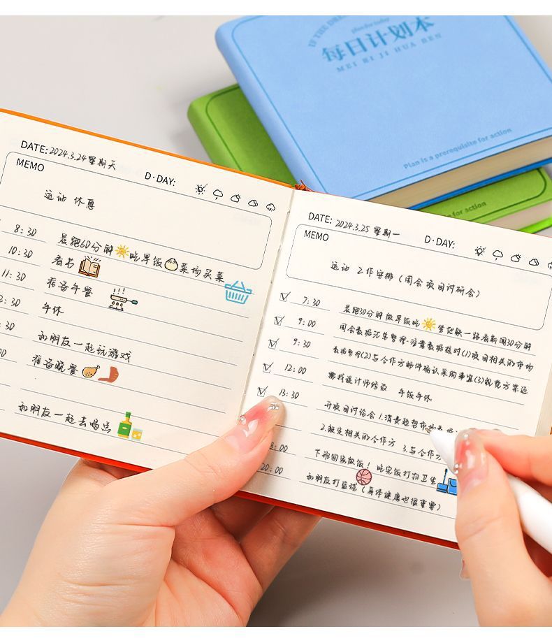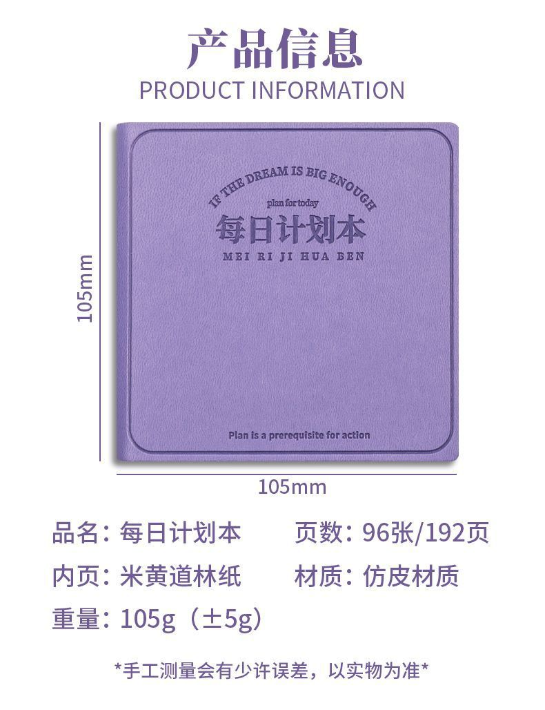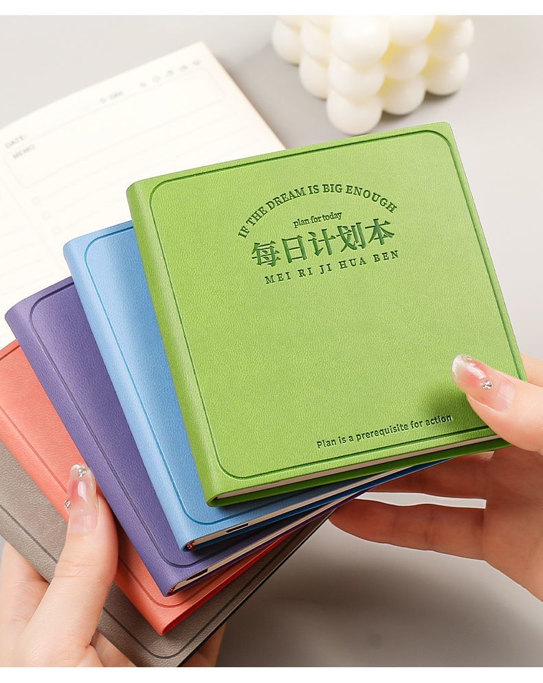 每日计划本方形笔记本子高颜值皮面本时间管理自律打卡日程本简约