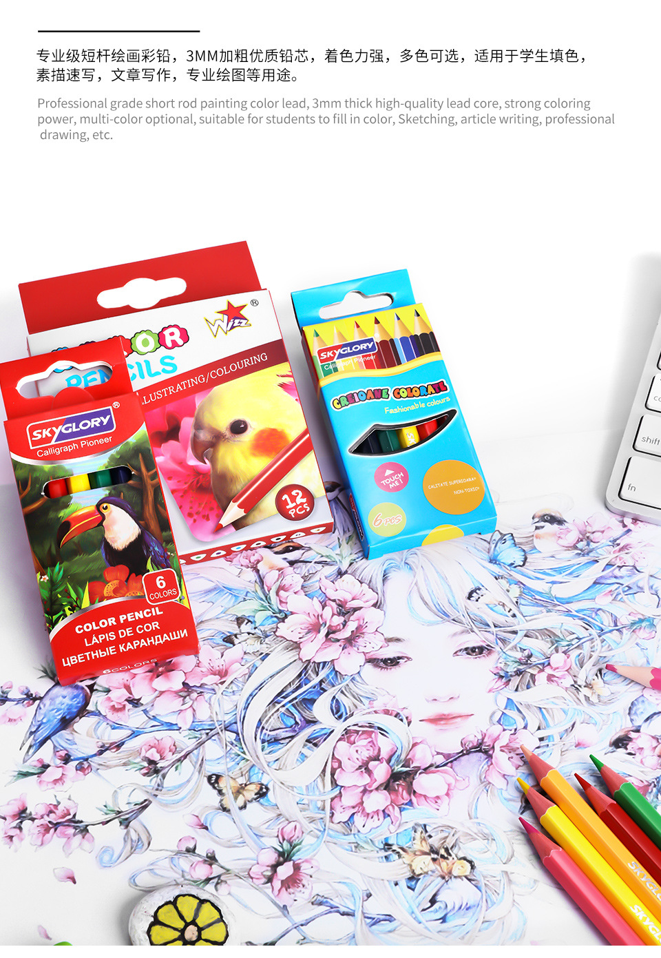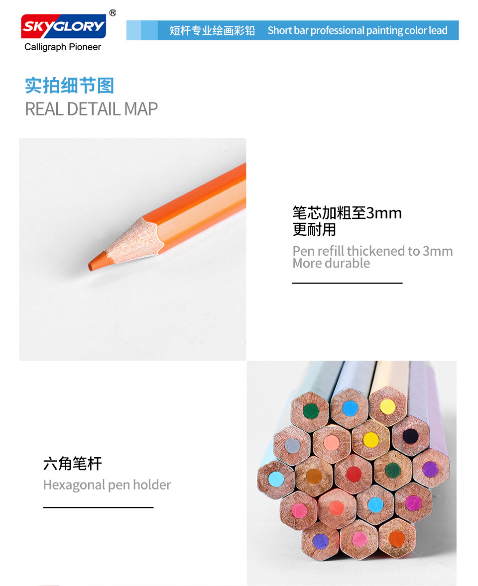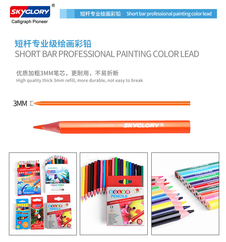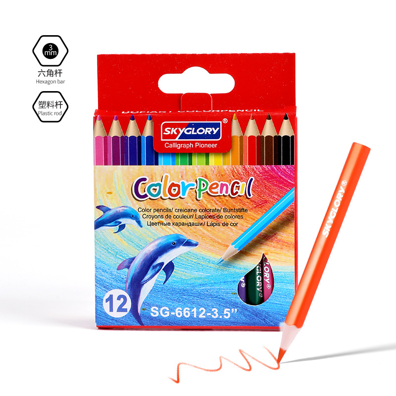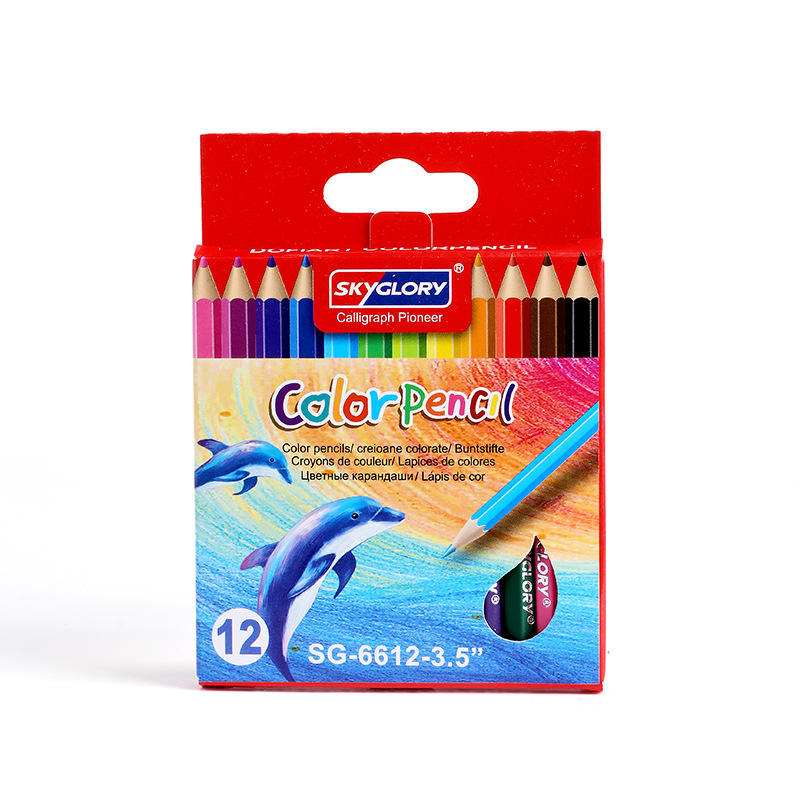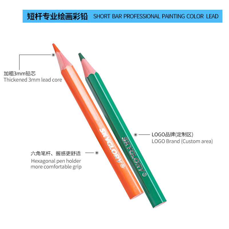 学生文具油性彩色铅笔短款笔杆儿童美术绘画画笔油性跨境批发