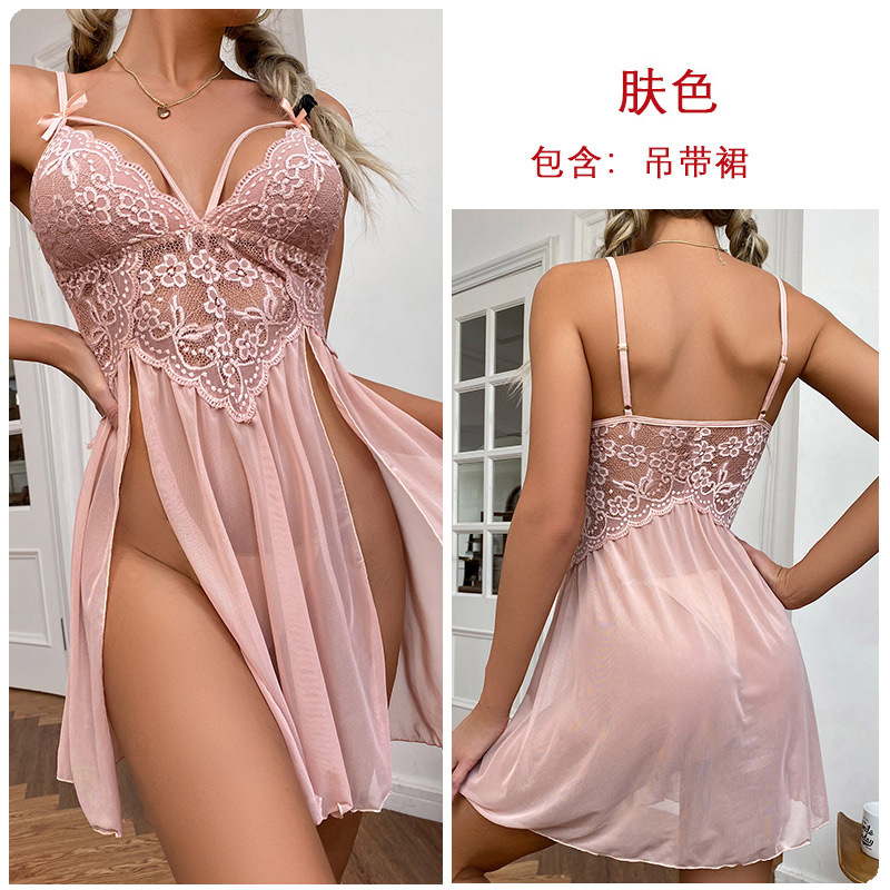 跨境外贸情趣内衣性感网纱透视睡衣 蕾丝刺绣吊带睡裙女家居服311