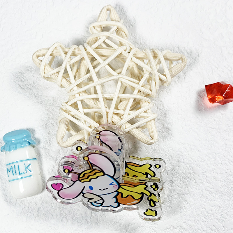 小红书同款卡通少女心亚克力夹子收纳夹学生文具长尾夹PP夹文件夹
