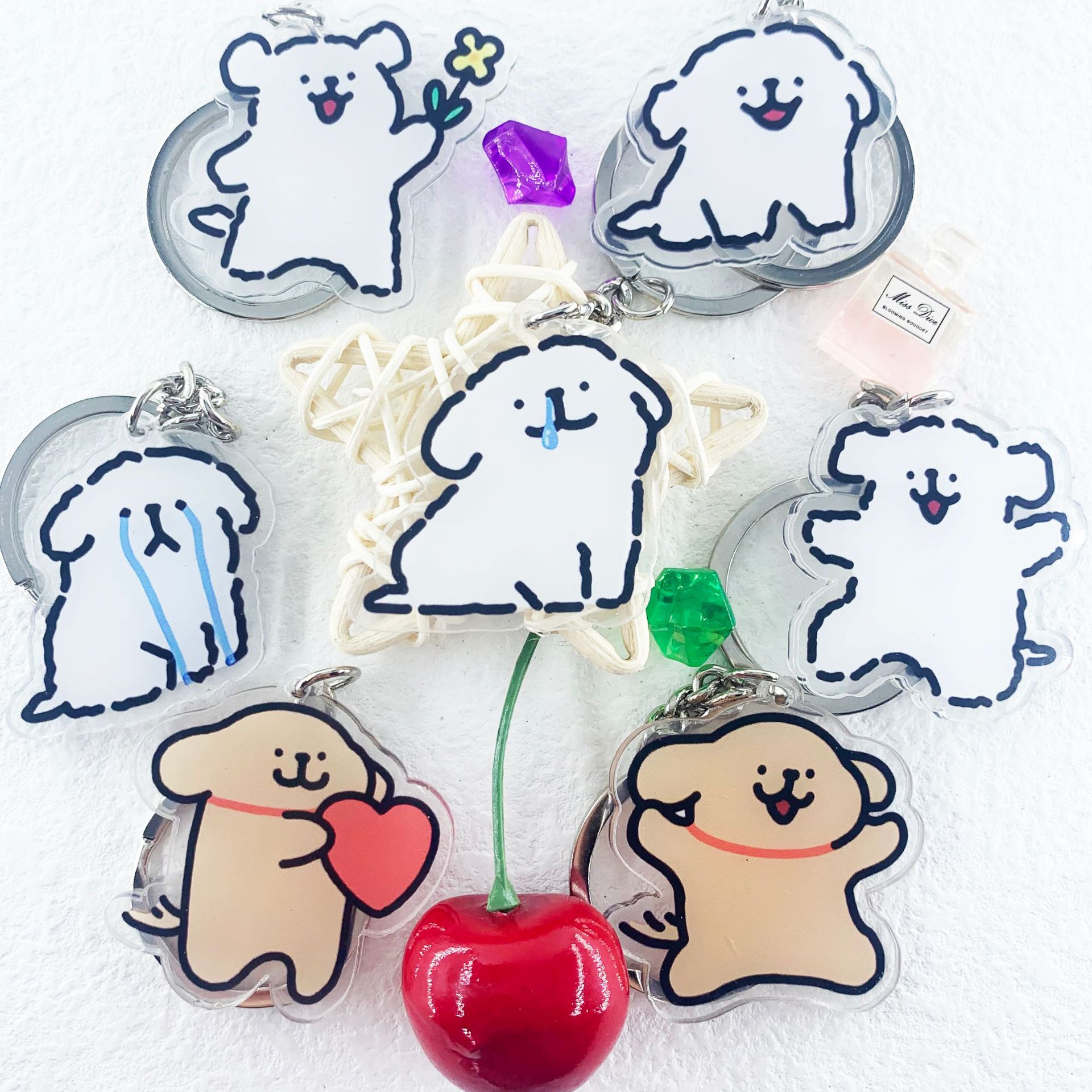 马尔济斯线条小狗钥匙扣亚克力挂件卡通情侣钥匙链可爱修狗小挂饰