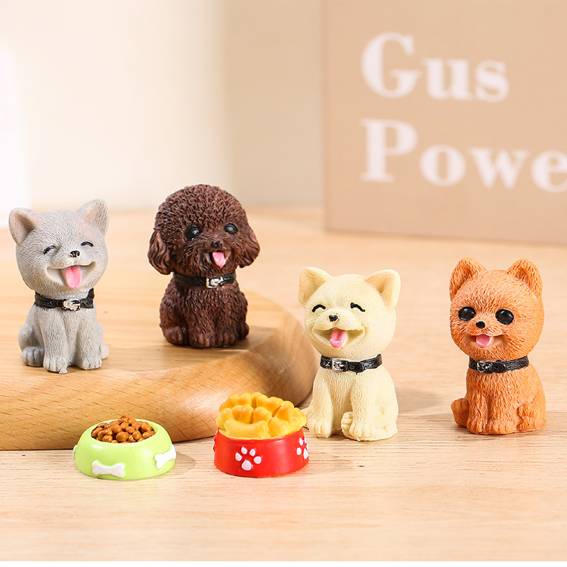 新款四色小狗微景观树脂创意仿真卡通狗狗园艺造景装饰品