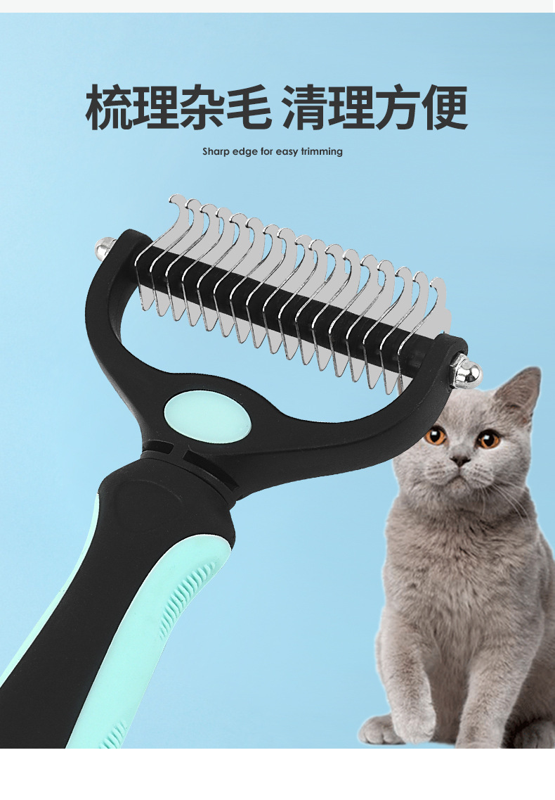 宠物猫咪狗狗双面开结梳不锈钢亚马逊跨境褪毛梳子脱毛刷用品