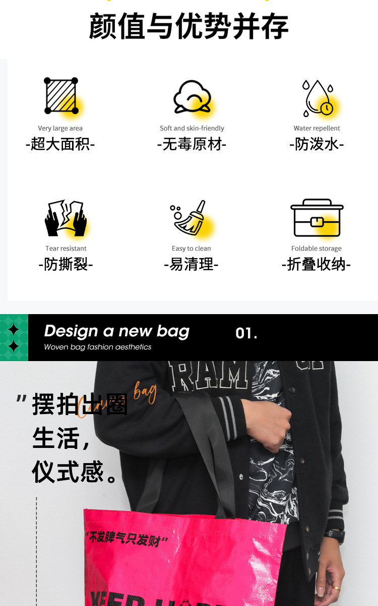 展会广告宣传显眼包覆膜彩印编织袋定制pp购物袋塑料防水手提袋