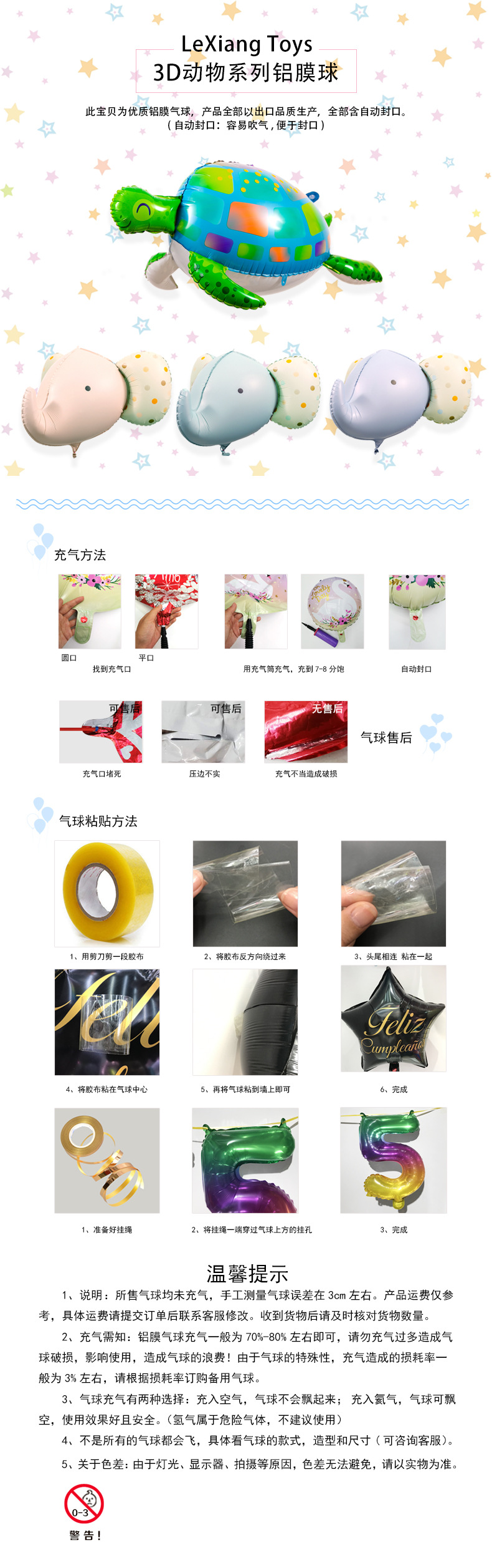 新款 3D飘空哑光动物铝膜气球 大象海龟海洋动物主题生日派对装饰