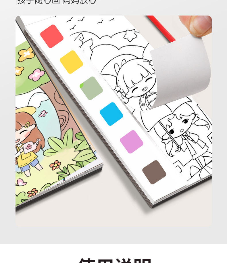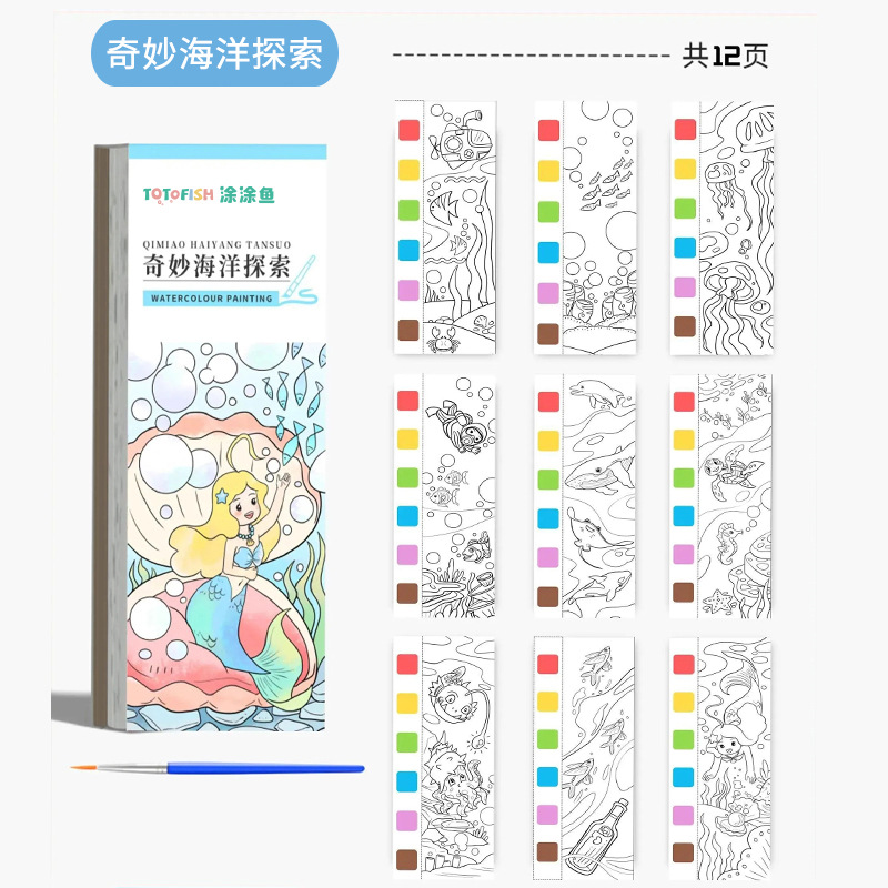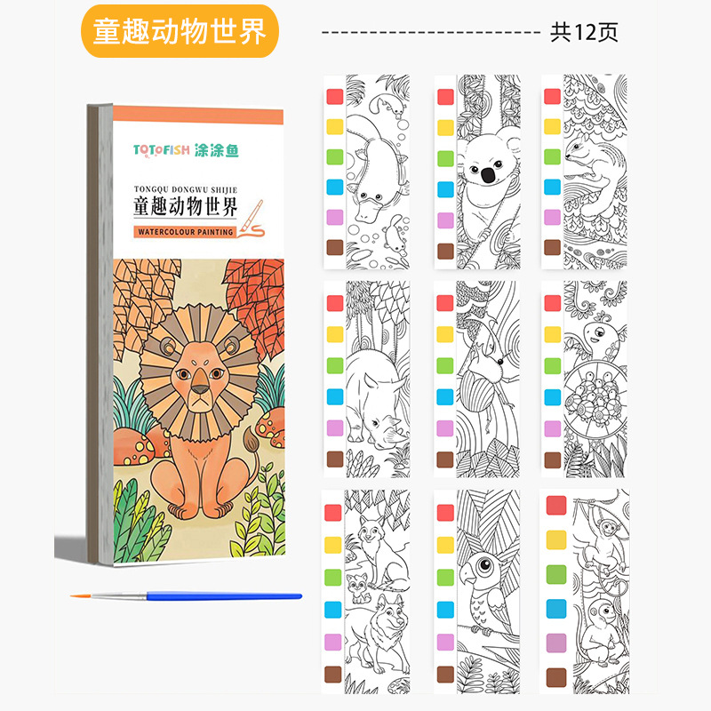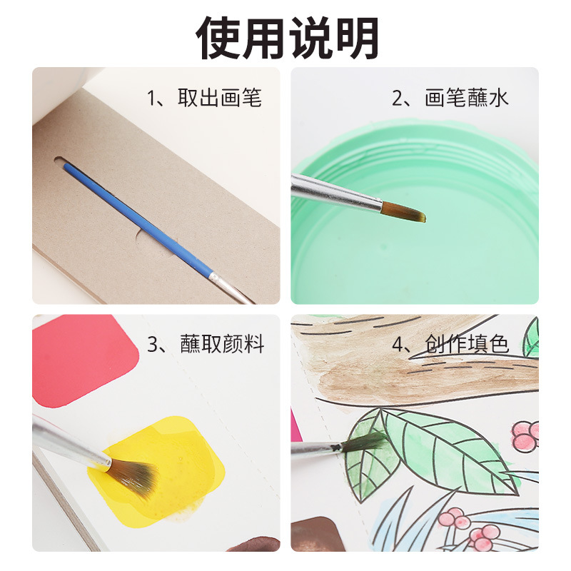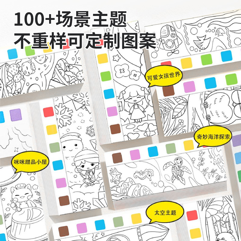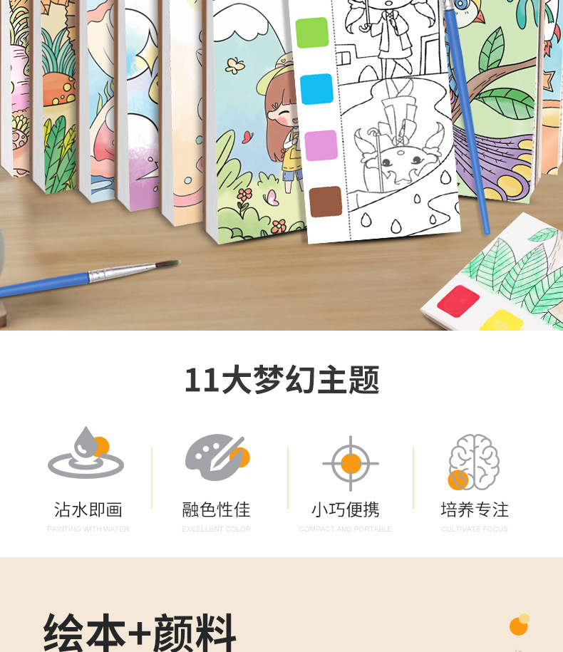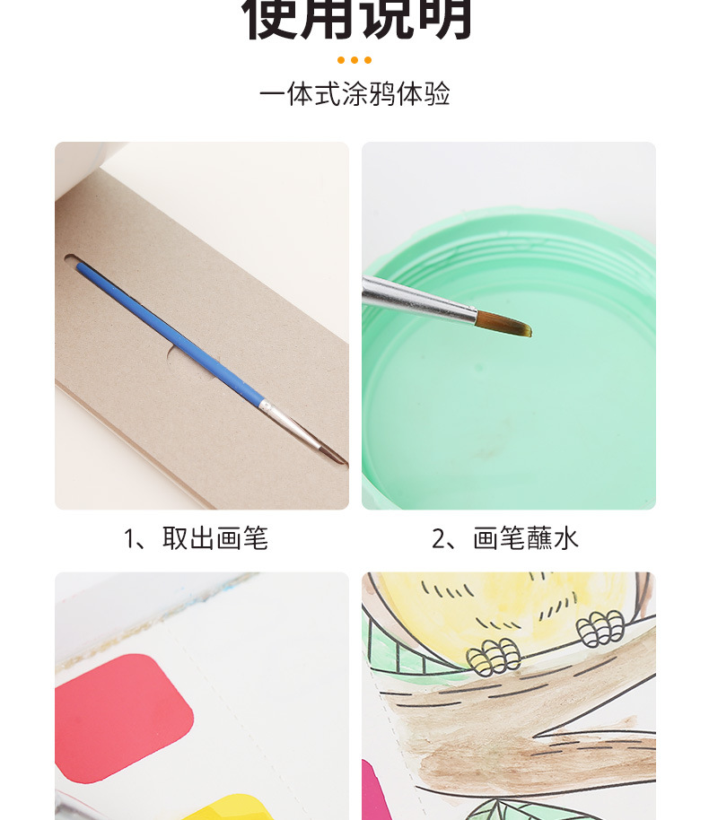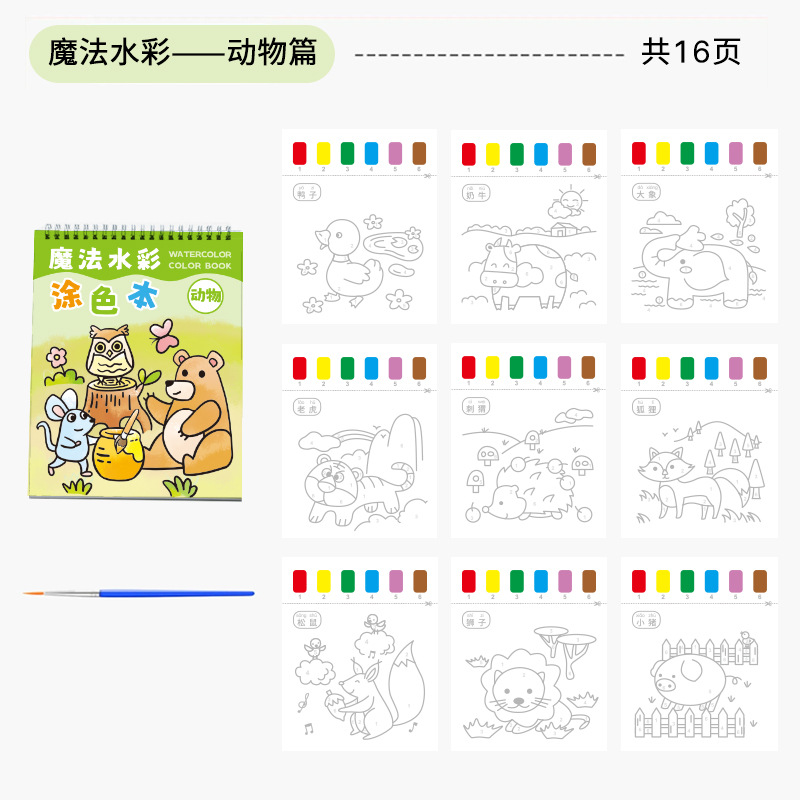 儿童水彩涂色本少儿涂鸦画画本填色本幼儿美术生自带颜料绘画本专