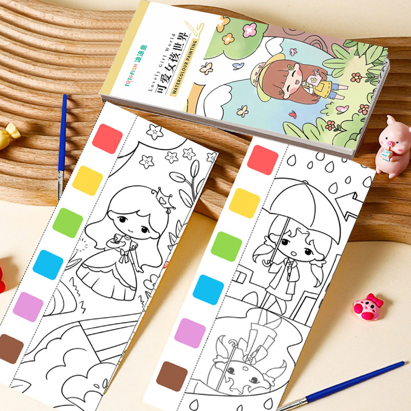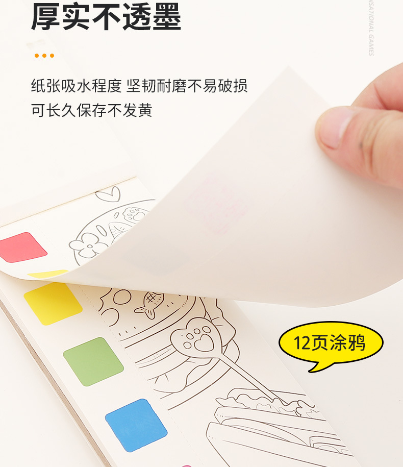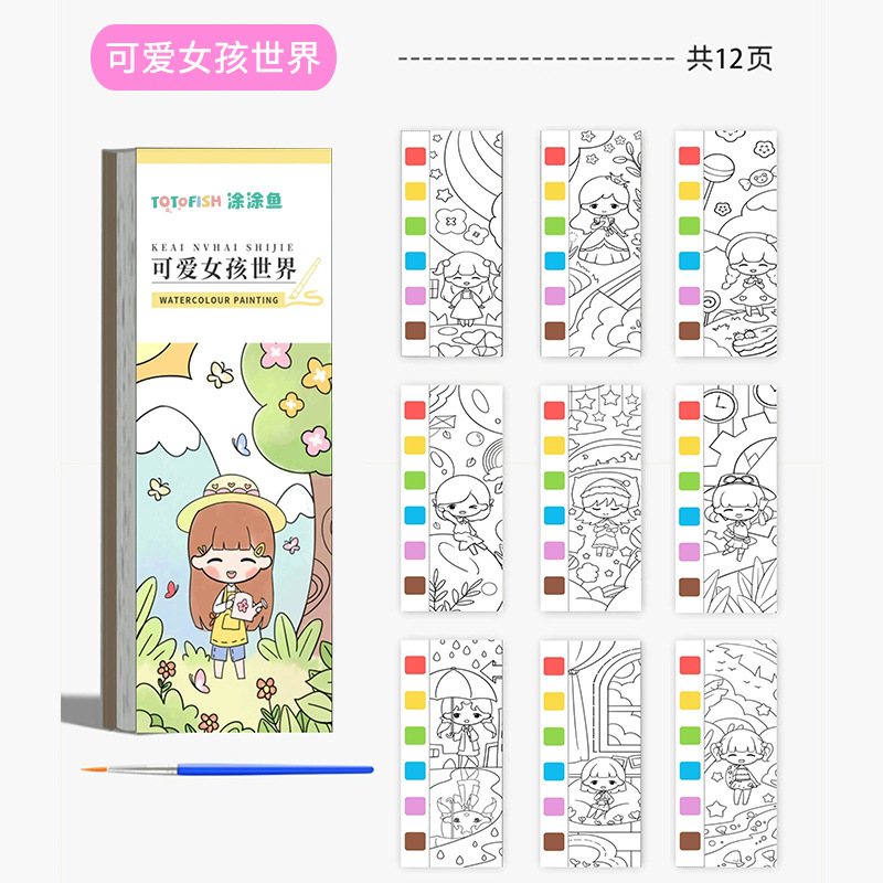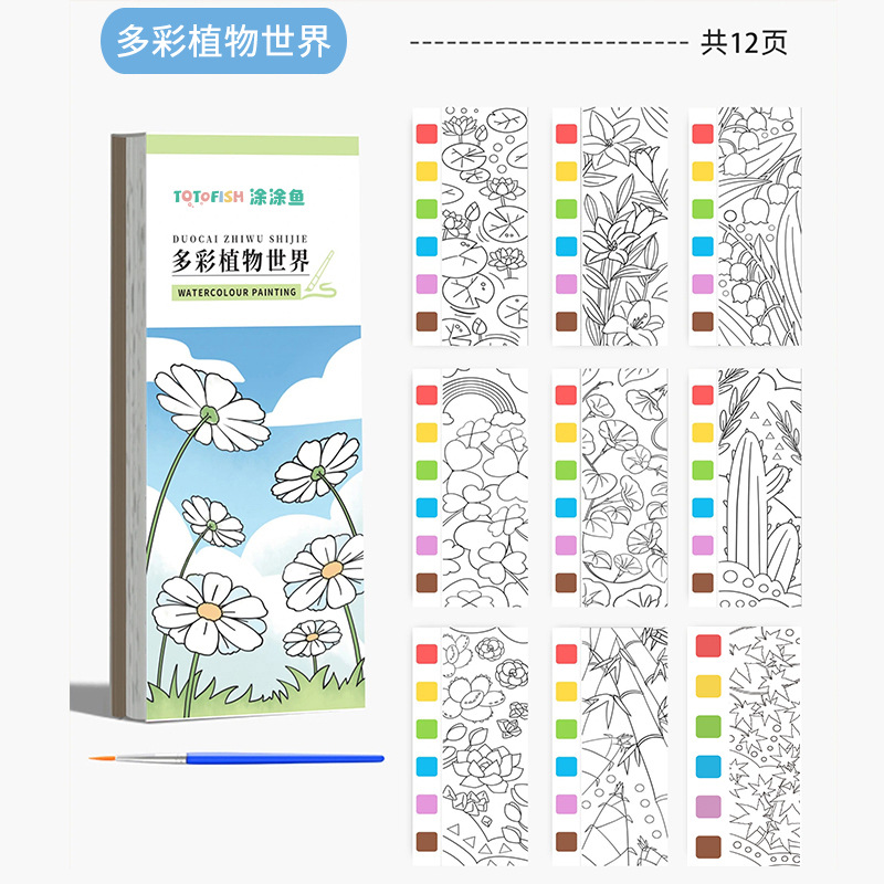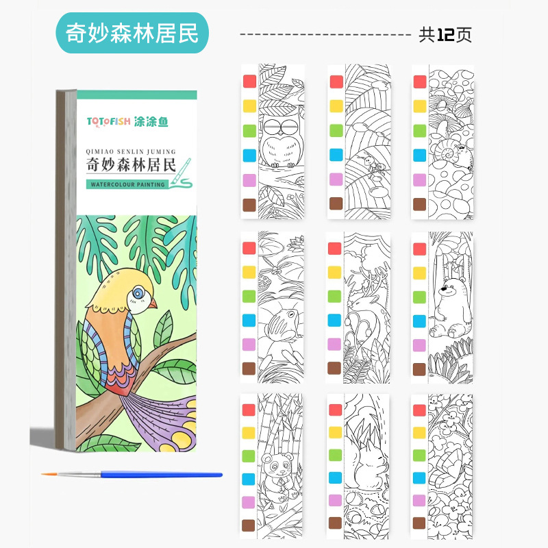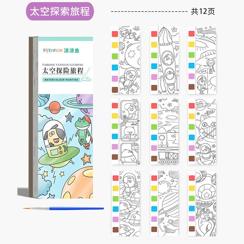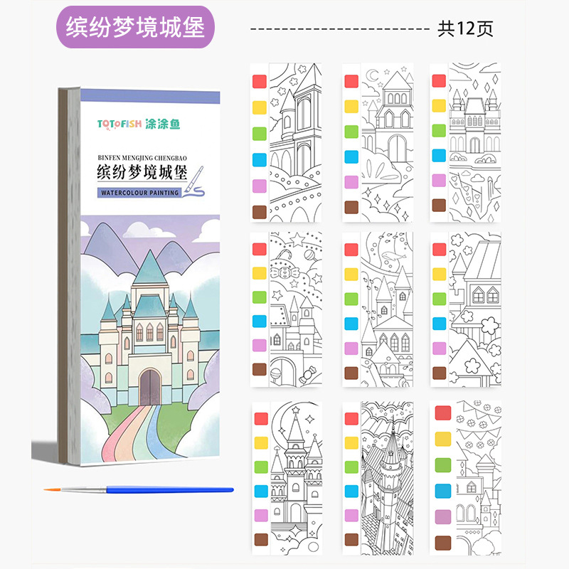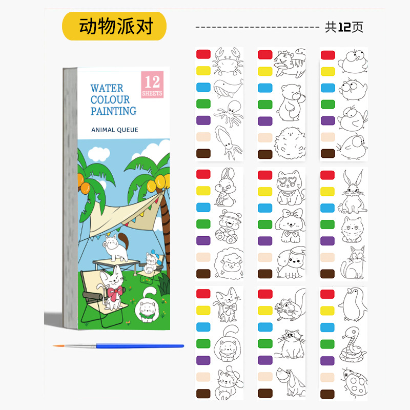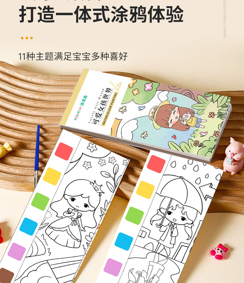儿童水彩涂色本少儿涂鸦画画本填色本幼儿美术生自带颜料绘画本专