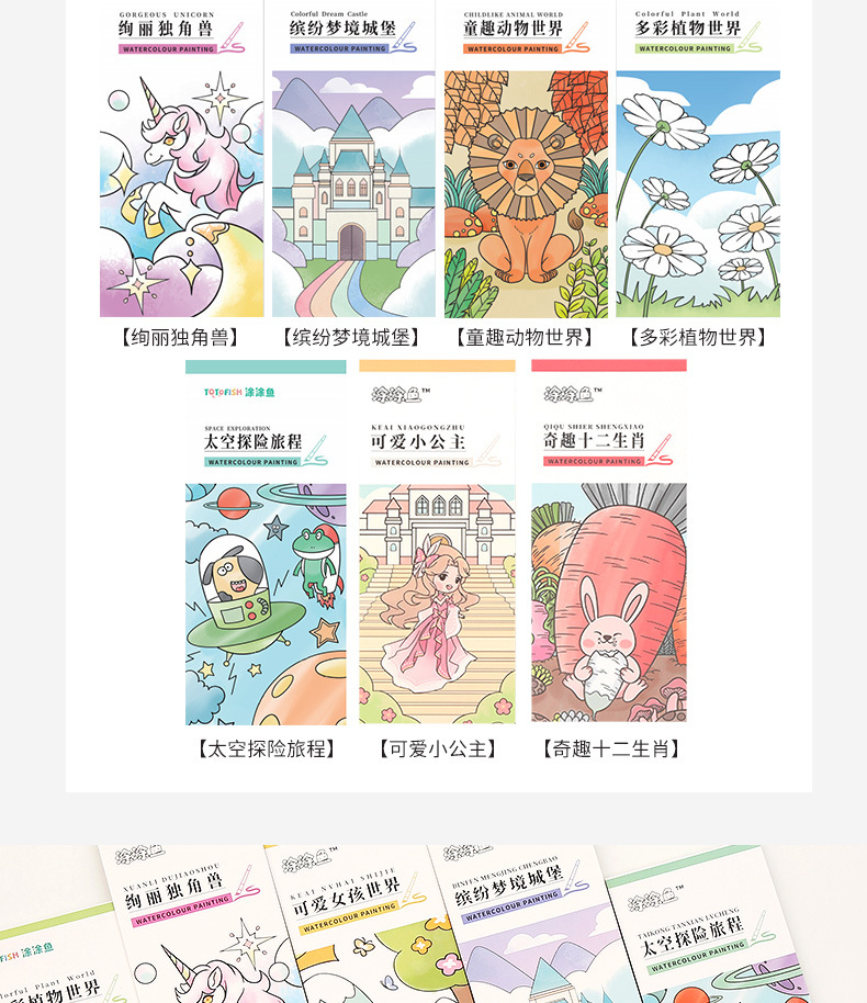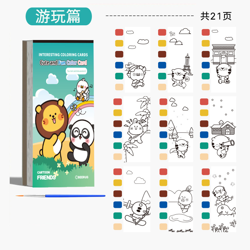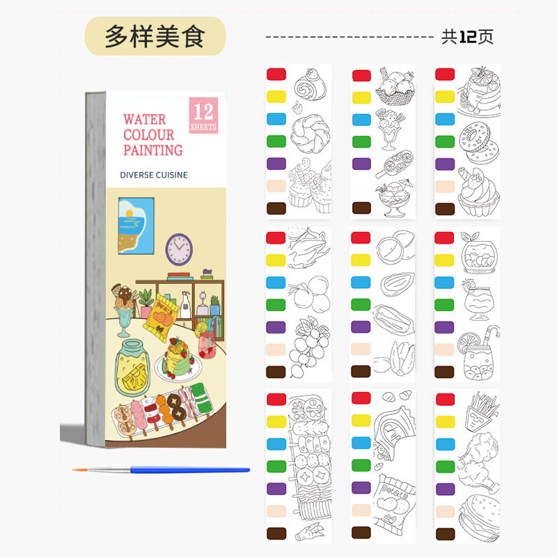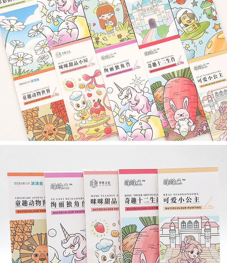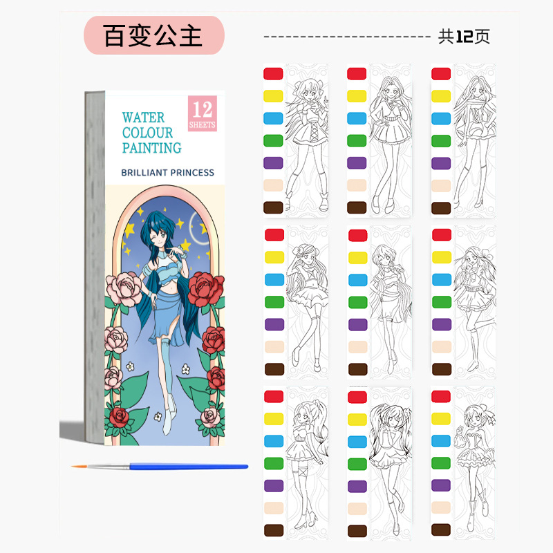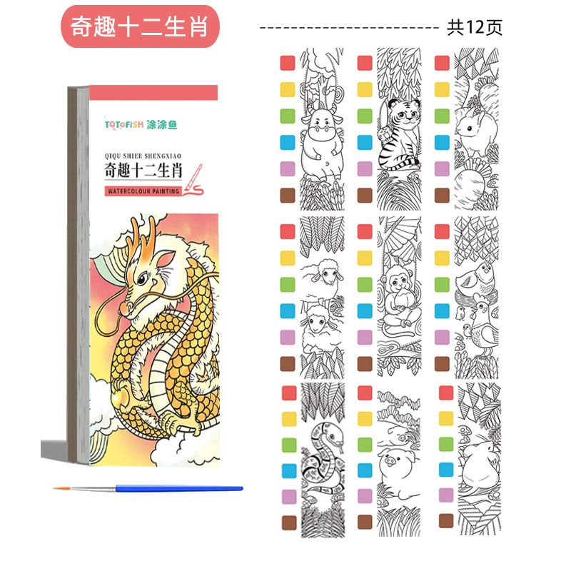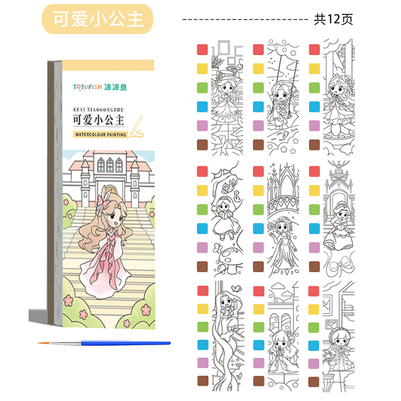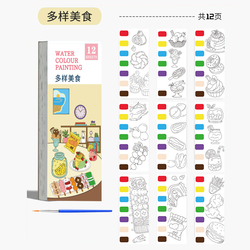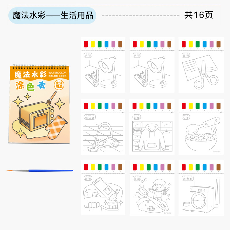 儿童水彩涂色本少儿涂鸦画画本填色本幼儿美术生自带颜料绘画本专