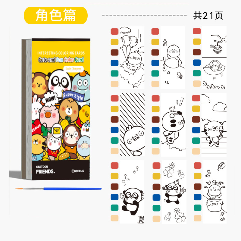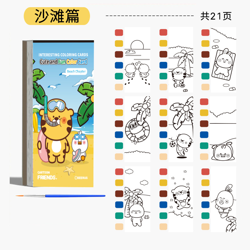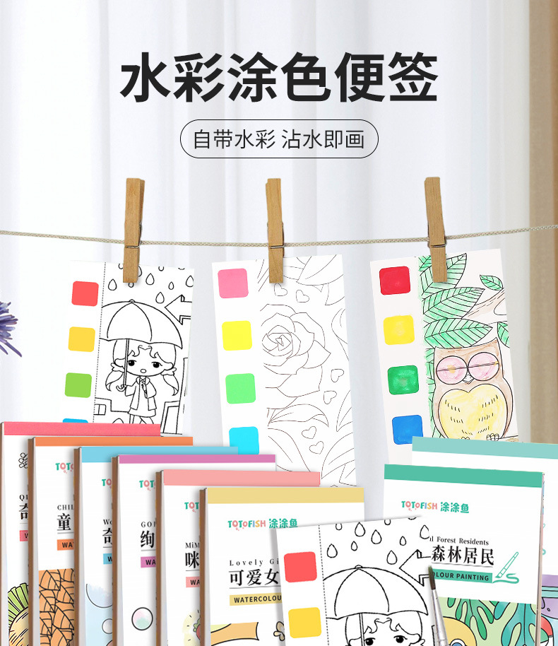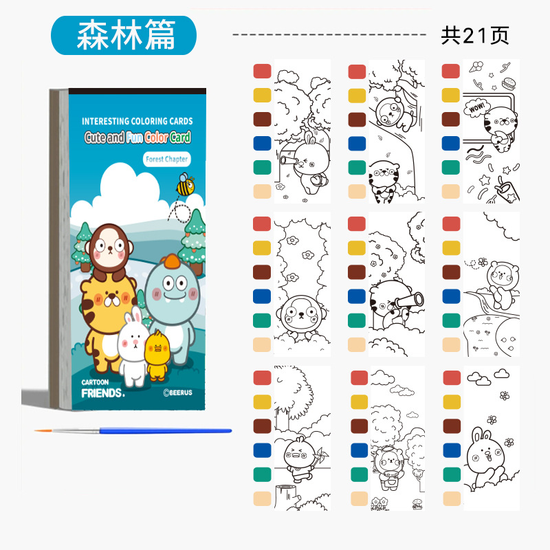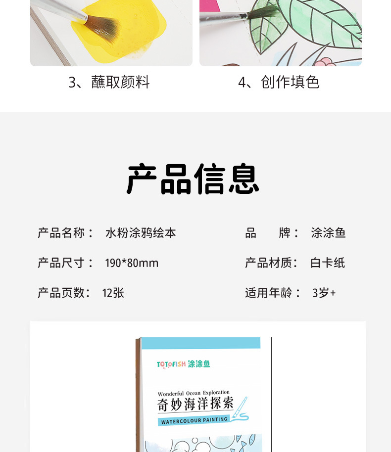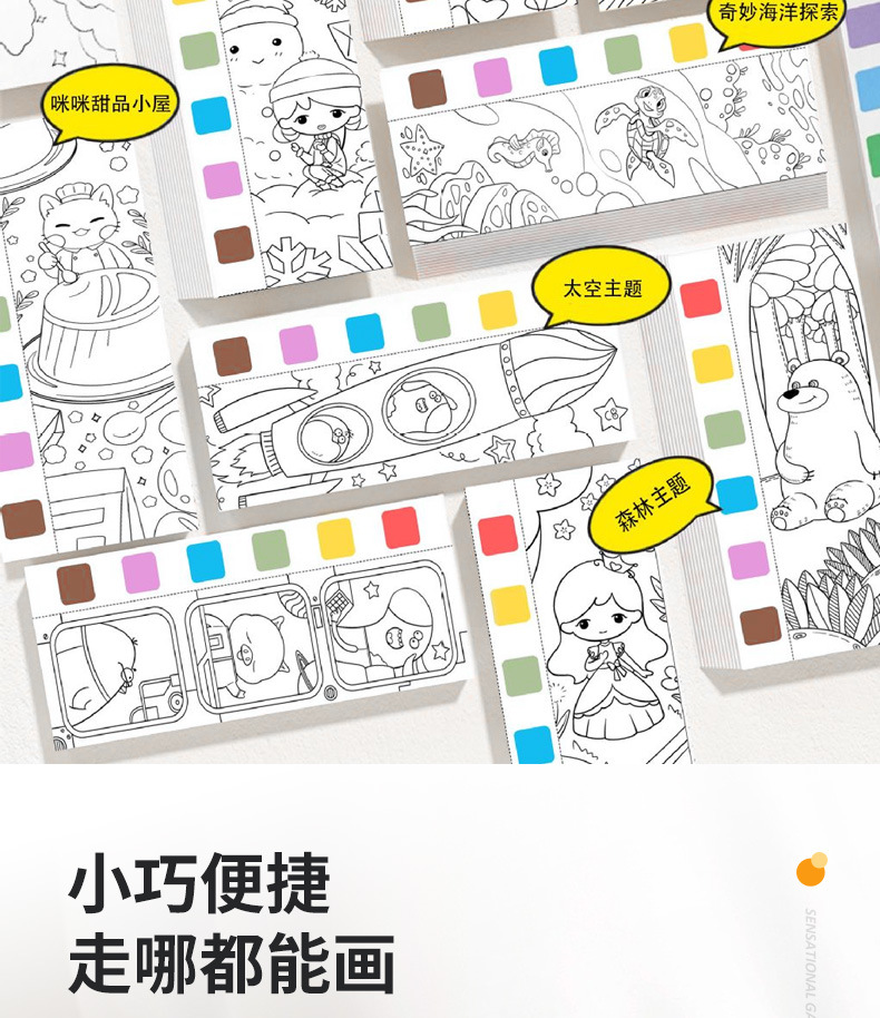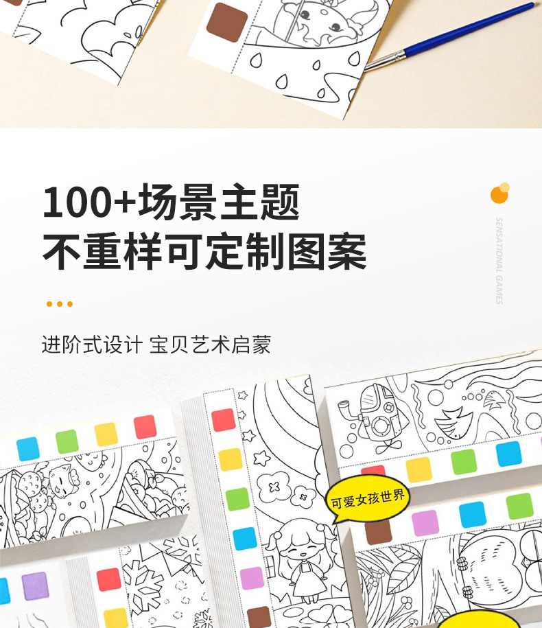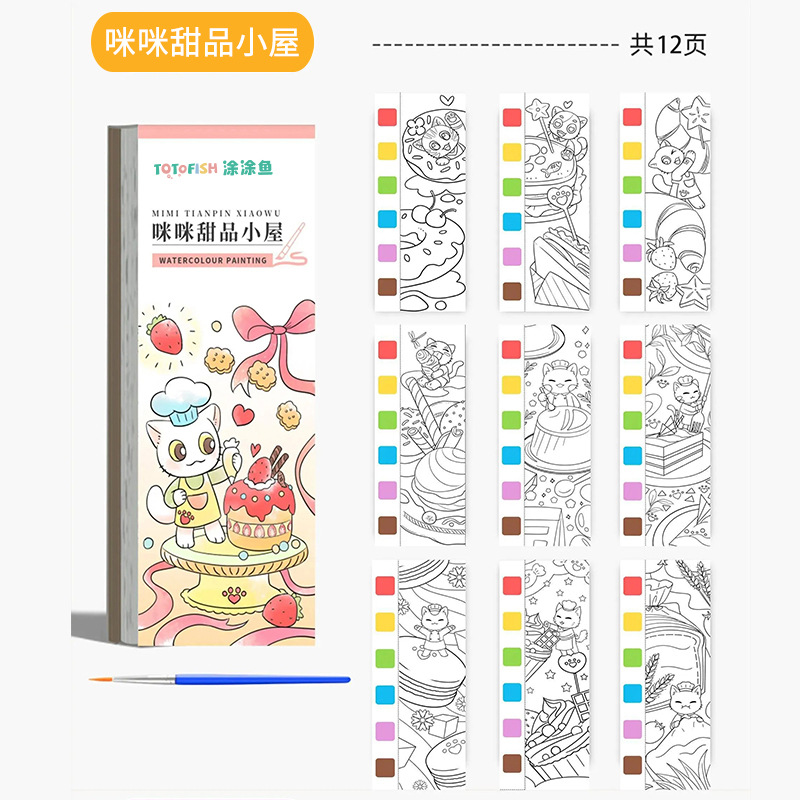 儿童水彩涂色本少儿涂鸦画画本填色本幼儿美术生自带颜料绘画本专