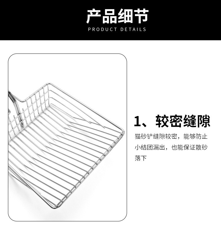 不锈钢猫砂铲手柄带挂钩大网面宠物猫咪铲屎官清洁工具金属猫屎铲