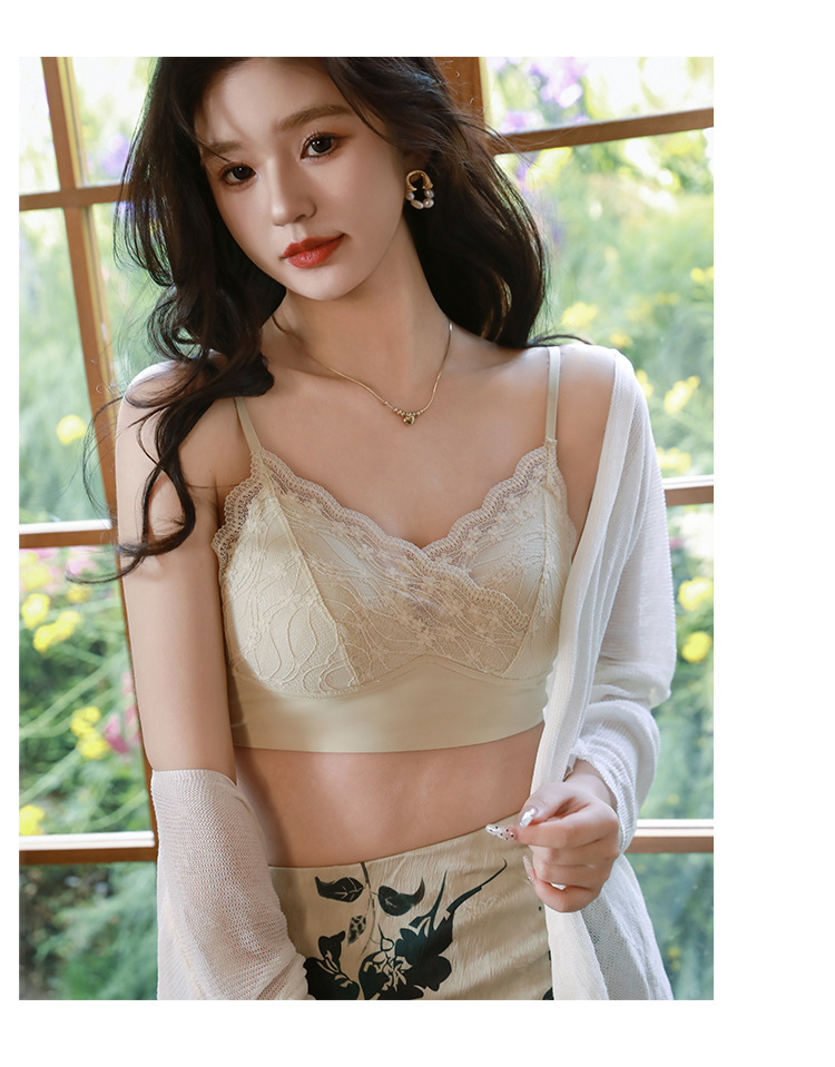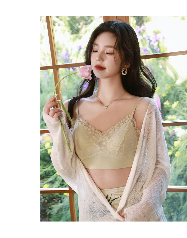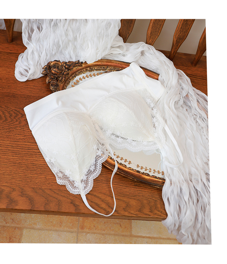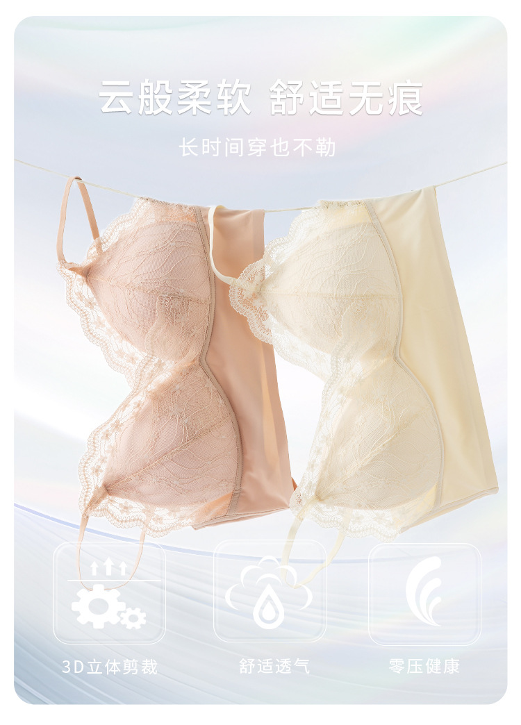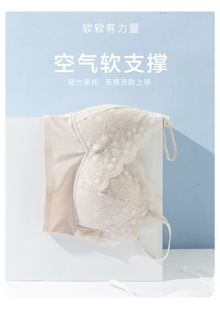 2024夏蕾丝美背性感薄款裸感舒适固定杯防走光裹胸拼接一片式内衣