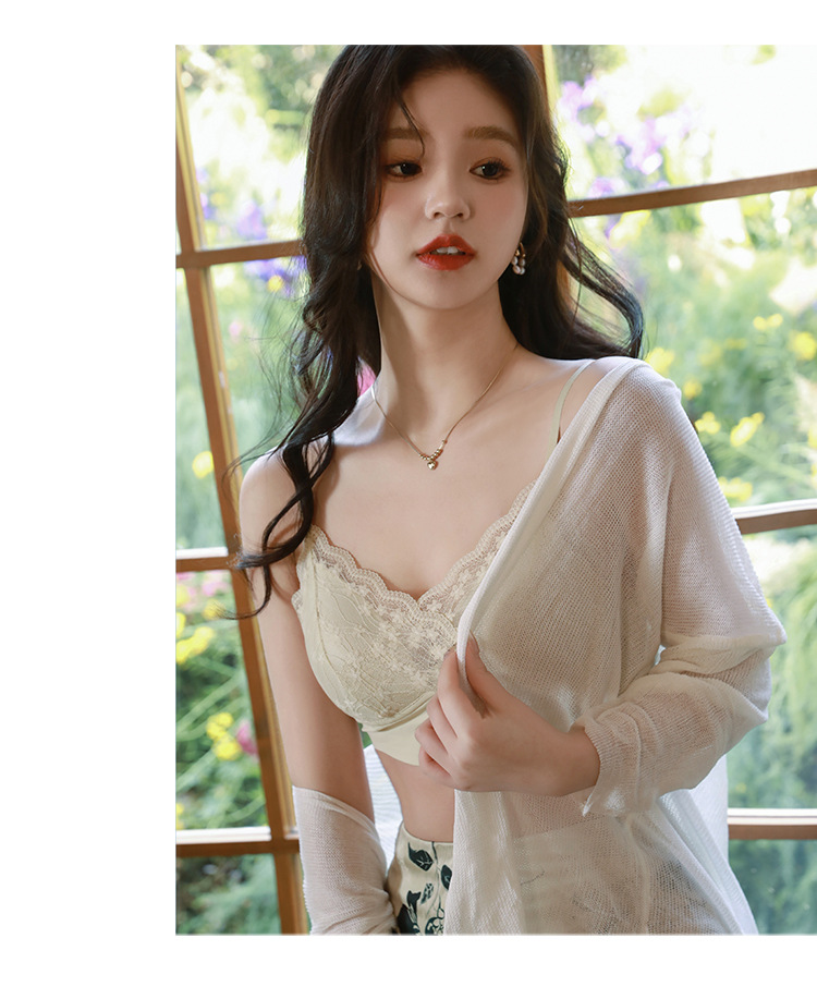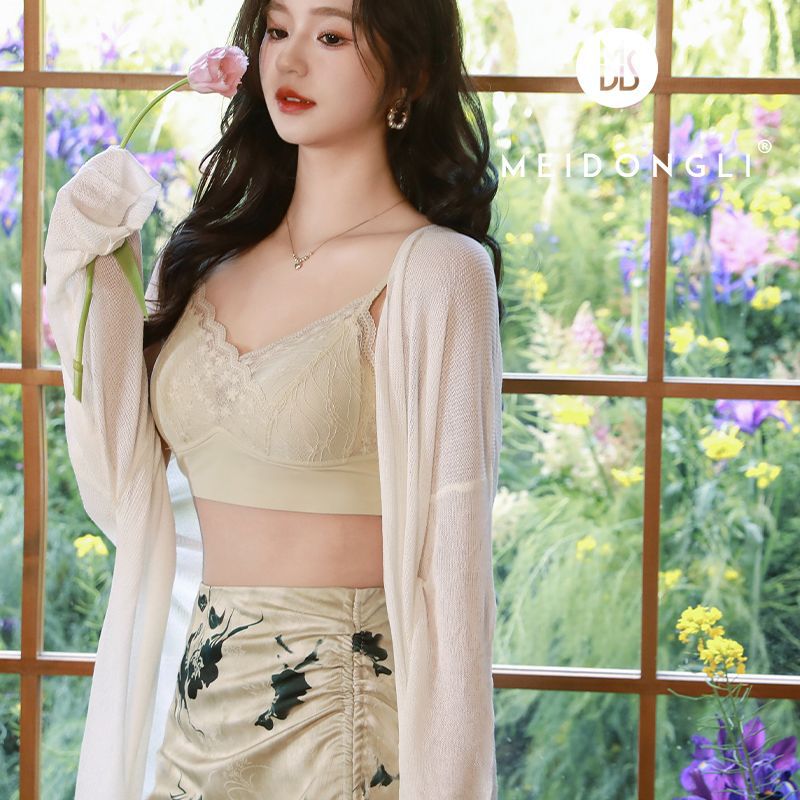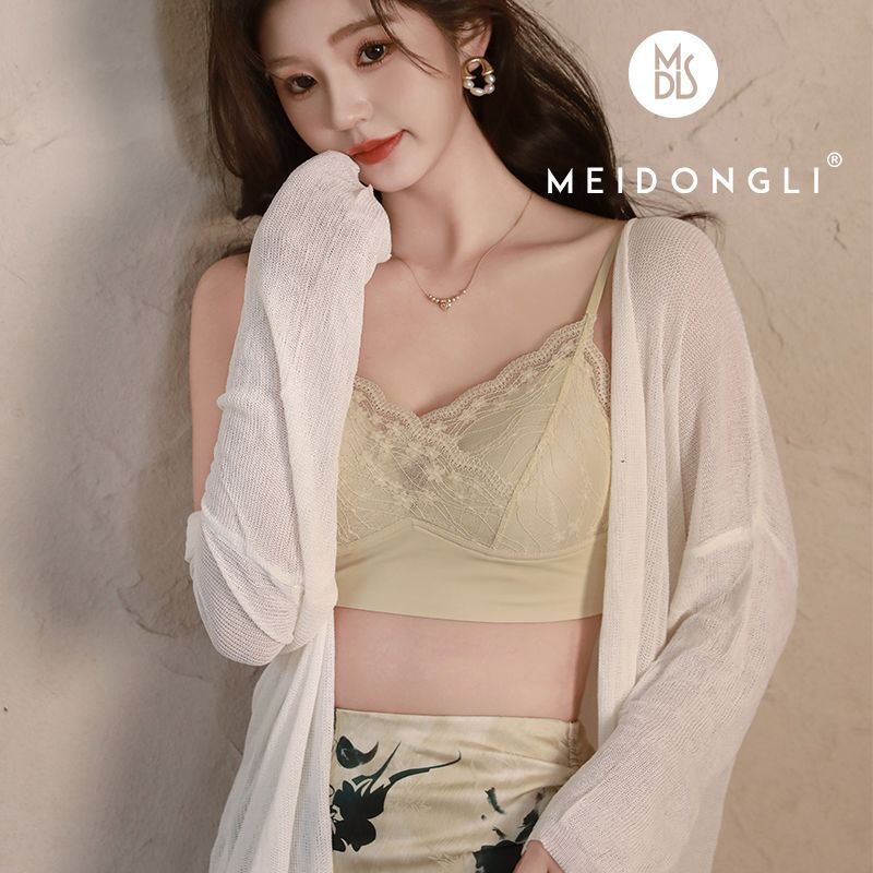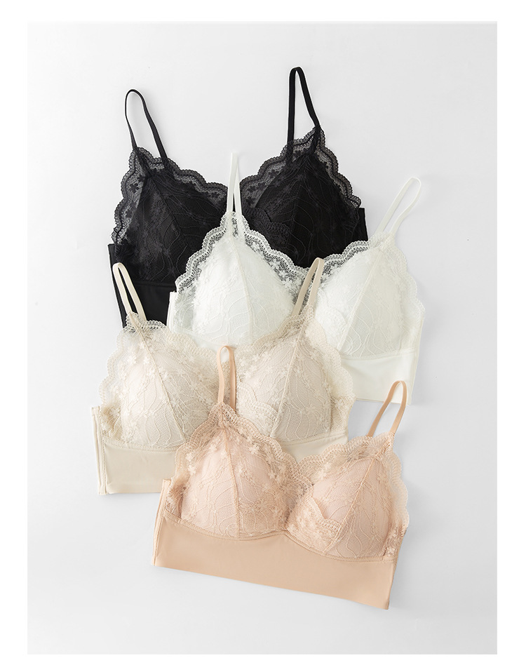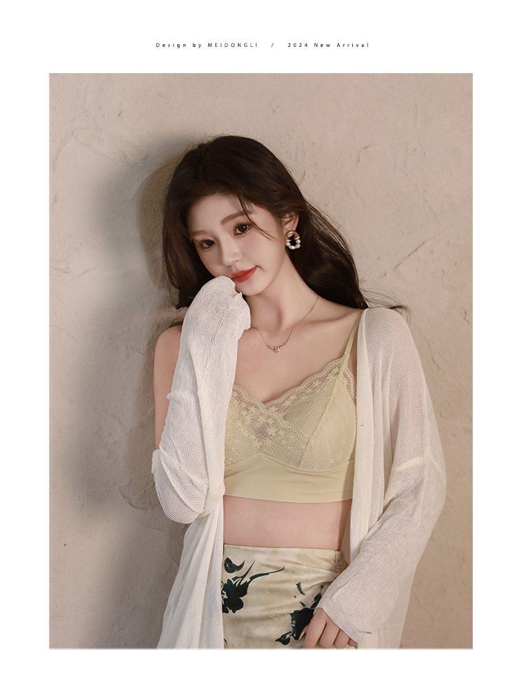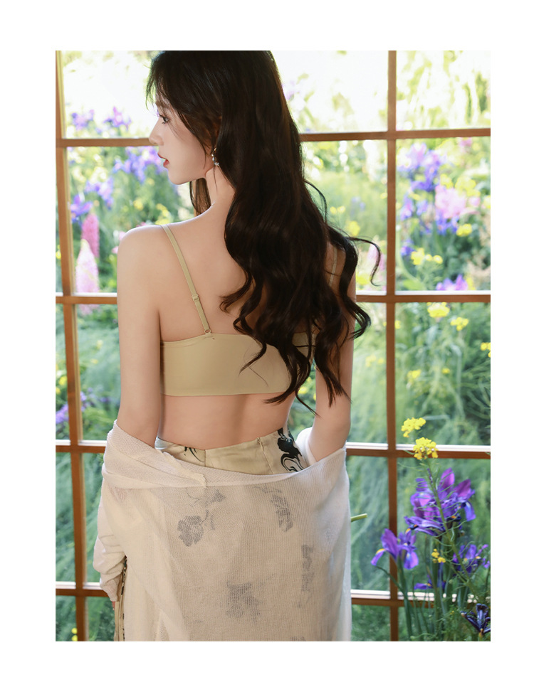 2024夏蕾丝美背性感薄款裸感舒适固定杯防走光裹胸拼接一片式内衣
