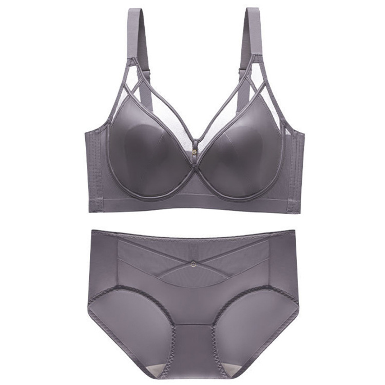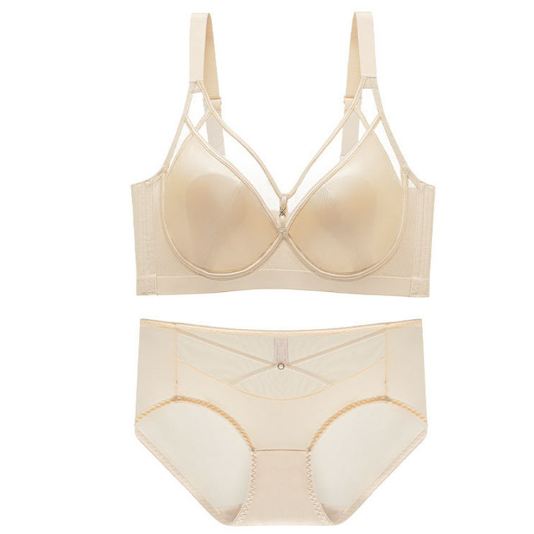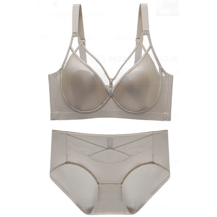 轻奢缎面网纱轻薄大胸显小无痕内衣桑蚕丝记忆软钢圈承托稳固文胸