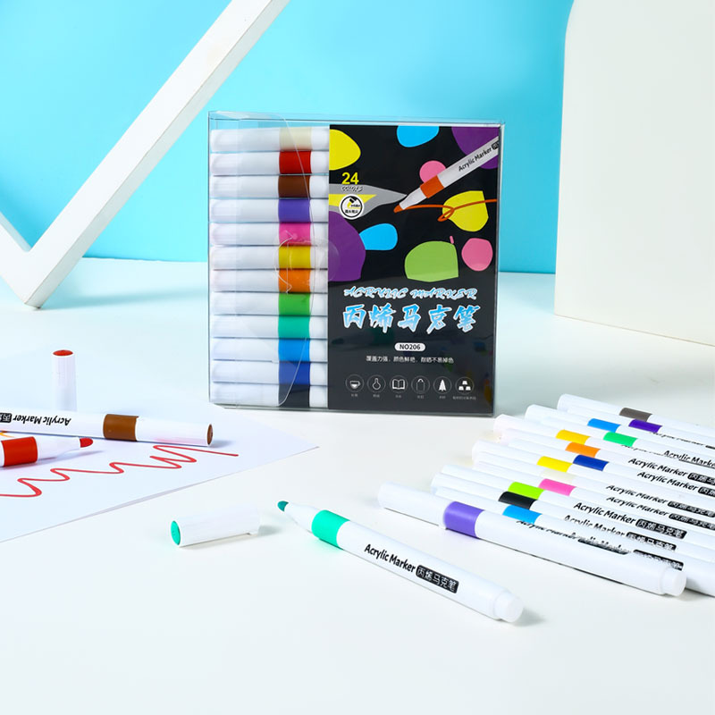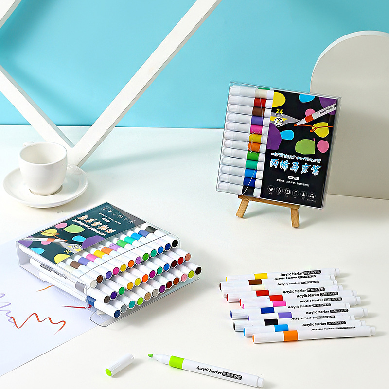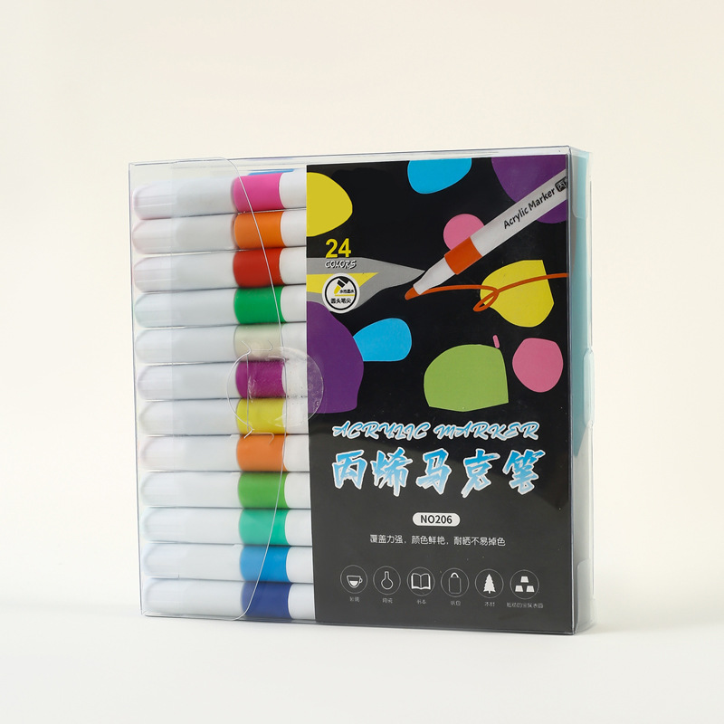 源头厂家批发直销 12色丙烯马克笔 可印刷logo 灯板笔套装