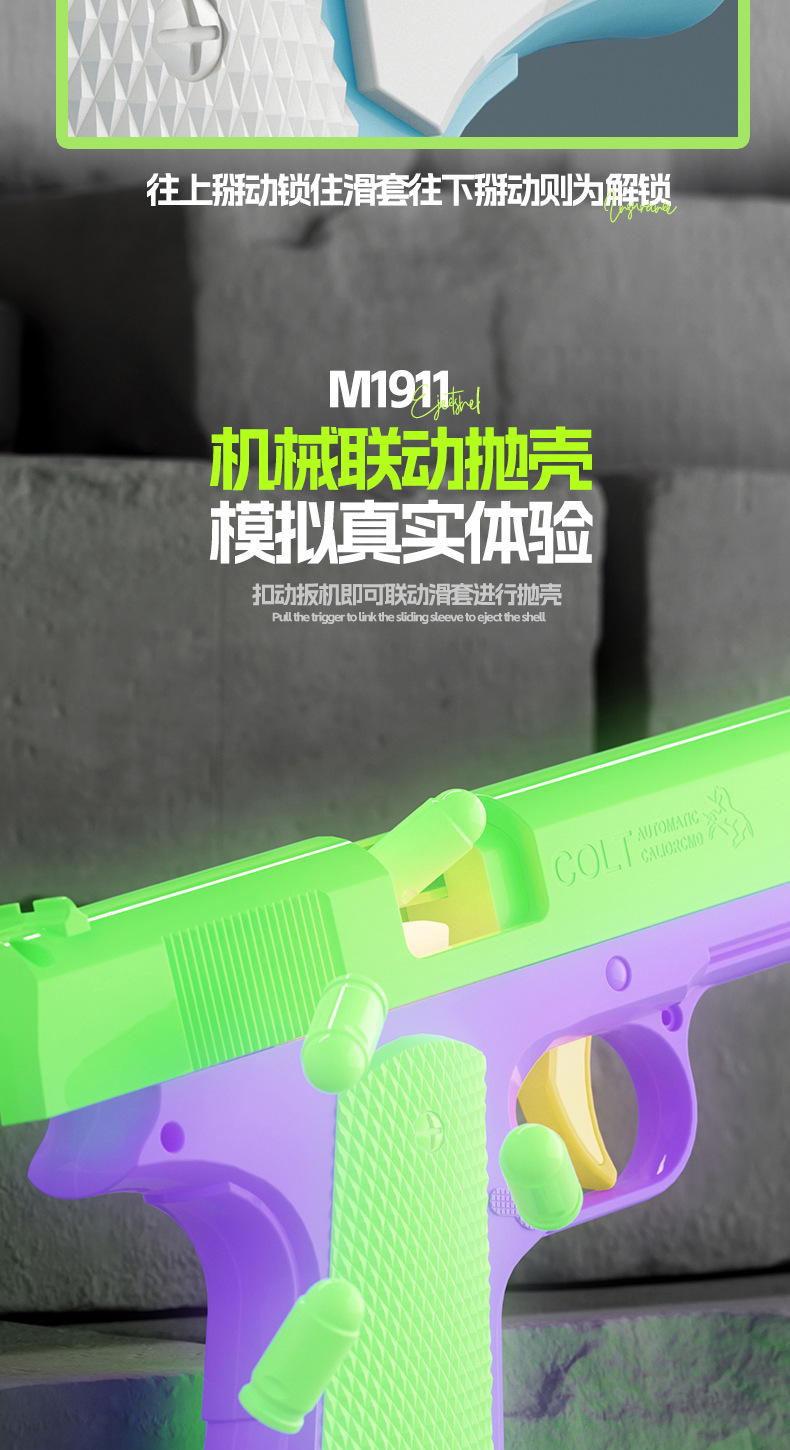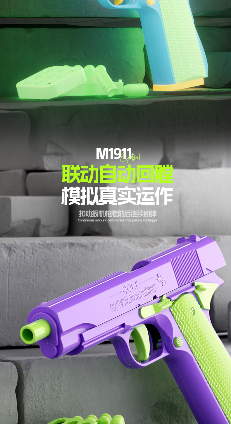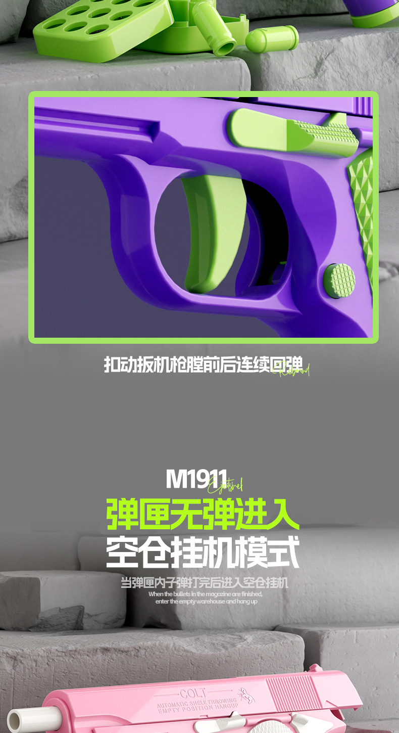 跨境萝卜枪1911不可发射手抢仿真可空挂柯尔特模型解压儿童玩具枪