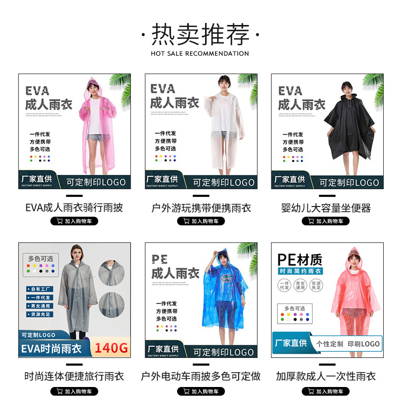成人男女雨披加厚非一次性EVA雨衣 户外游玩携带方便连体雨衣平口
