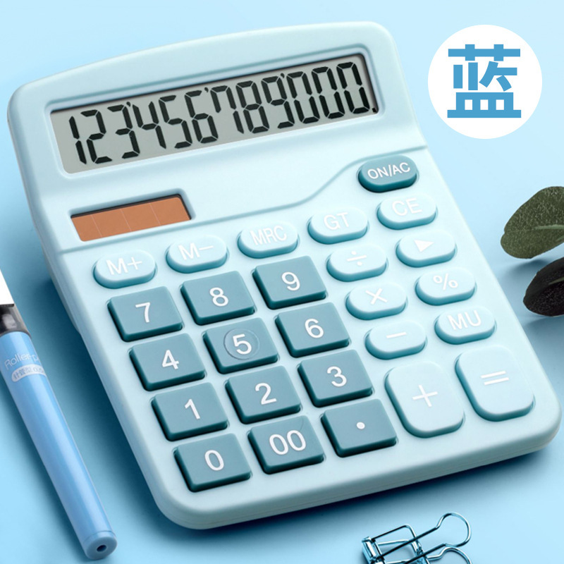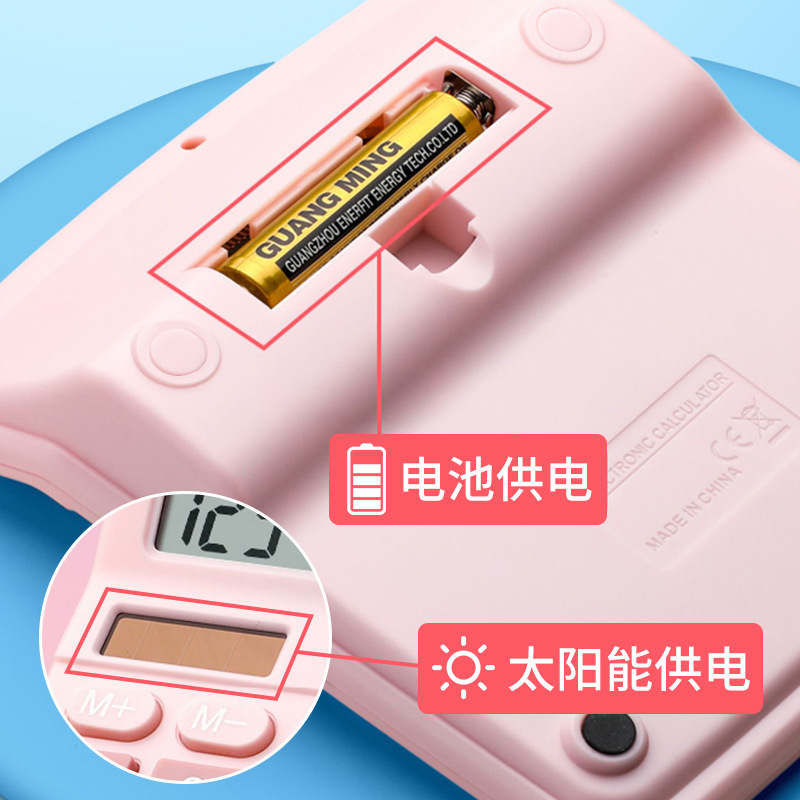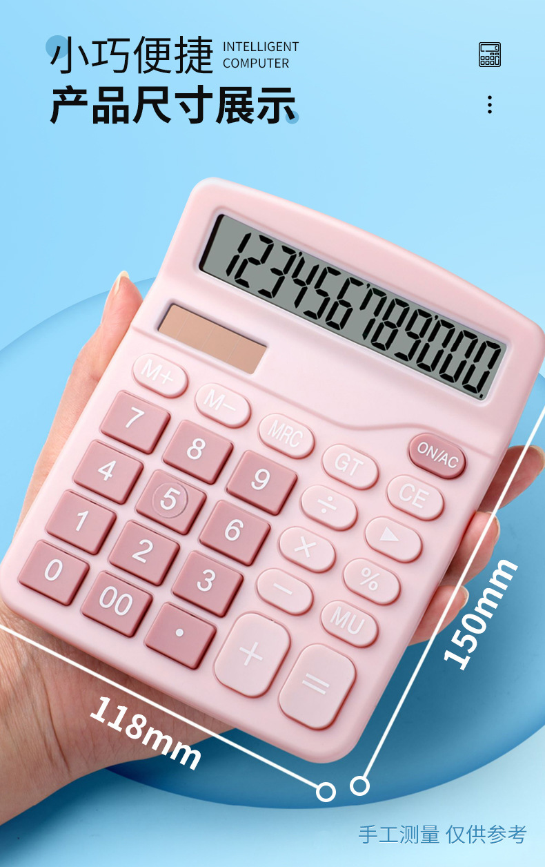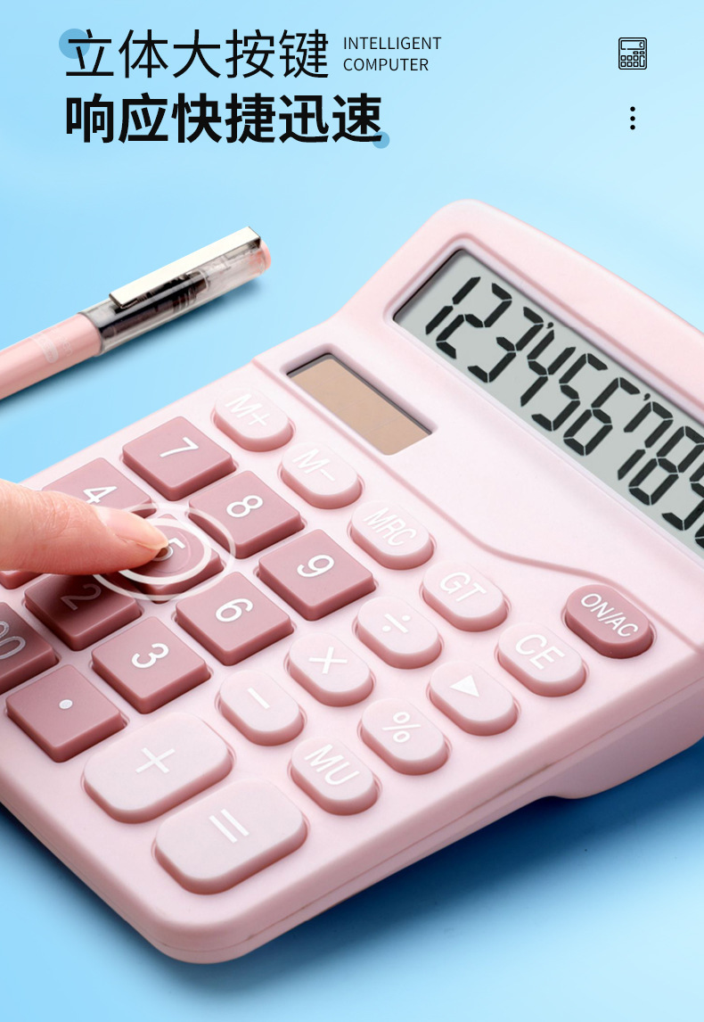 办公专用粉色太阳能计算器学生大号电子计算机12位双电源计算器
