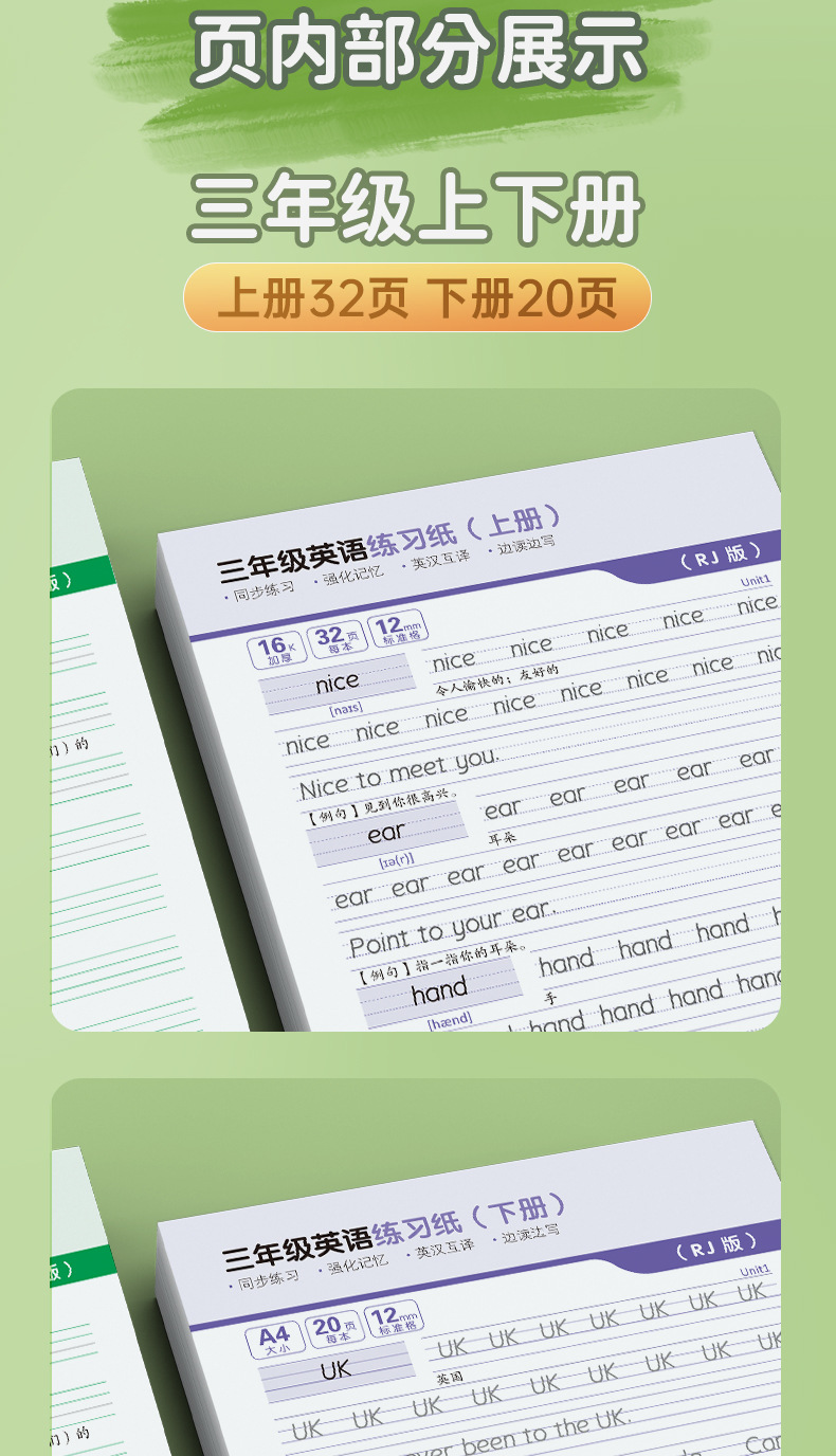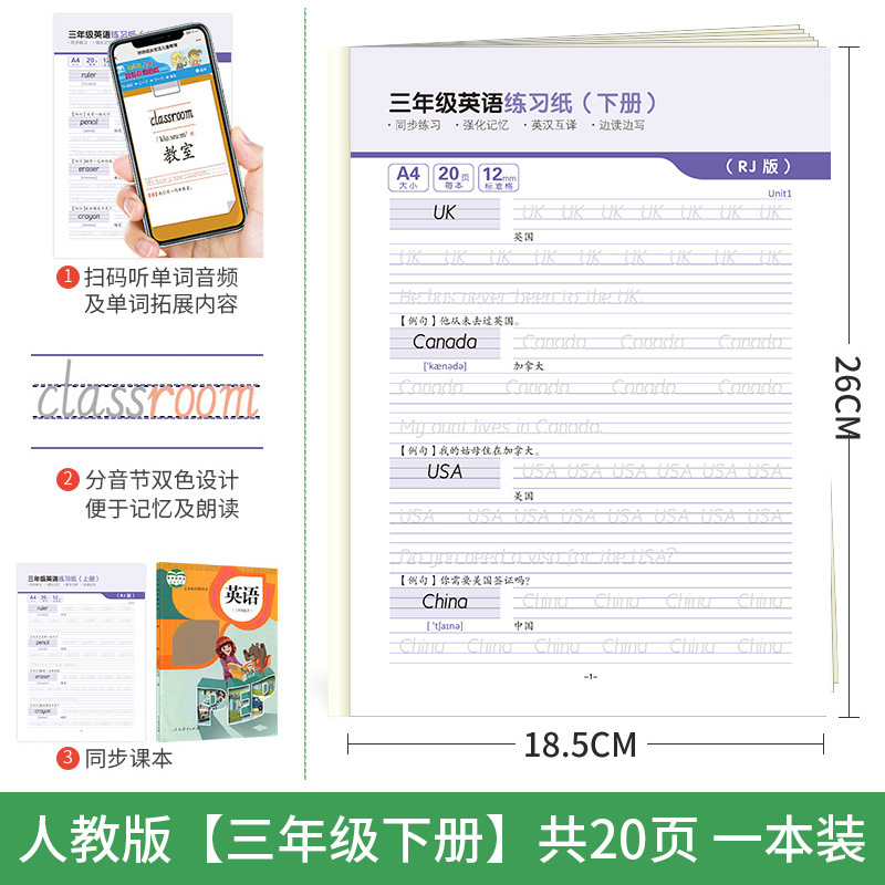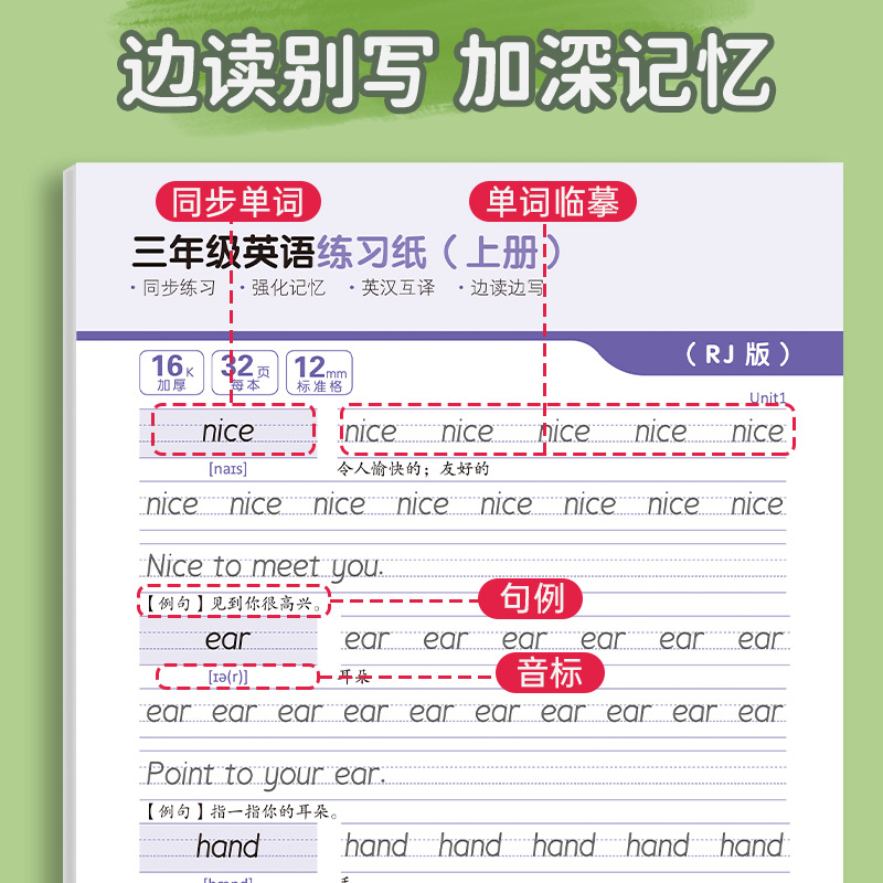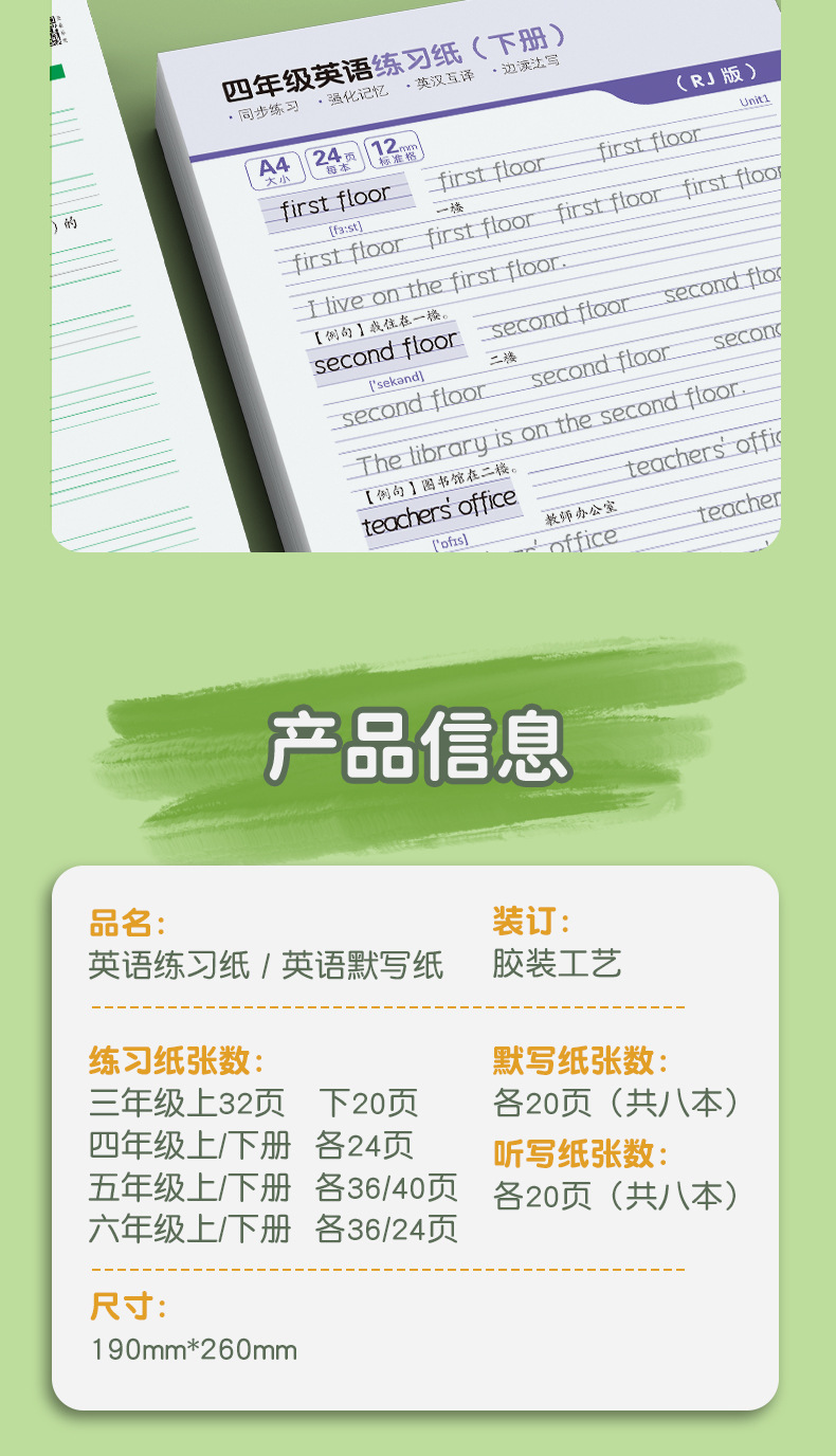 三年级PEP英语练字帖小学生人教版同步英语默写纸四五六年级练习