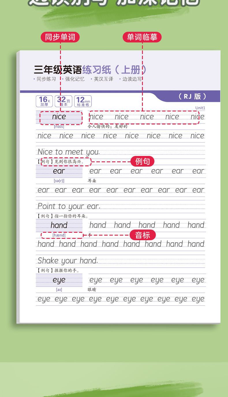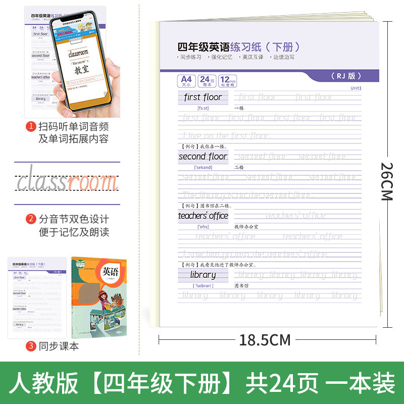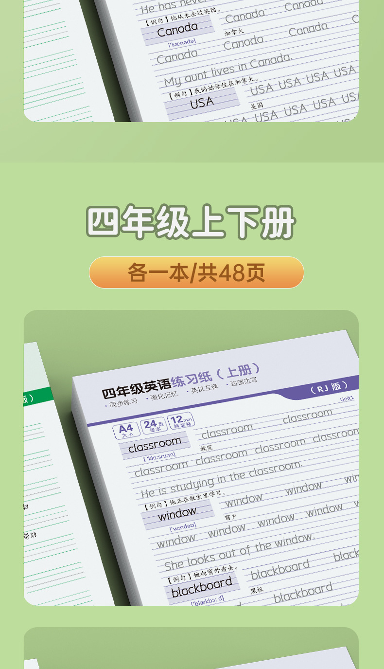 三年级PEP英语练字帖小学生人教版同步英语默写纸四五六年级练习