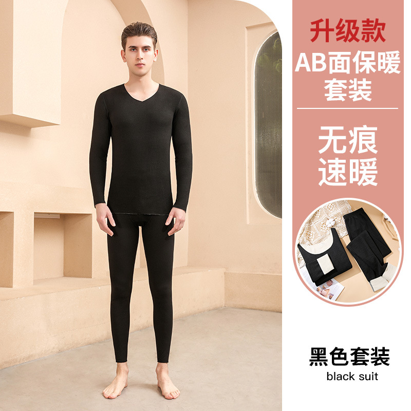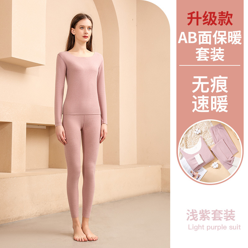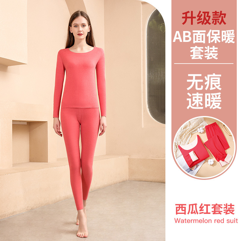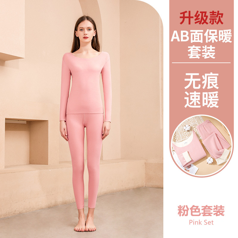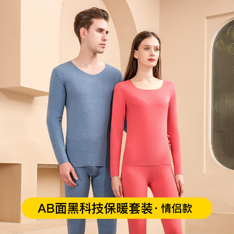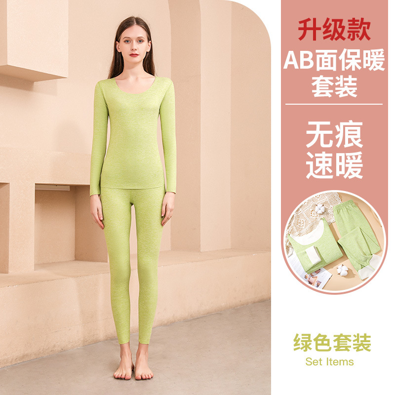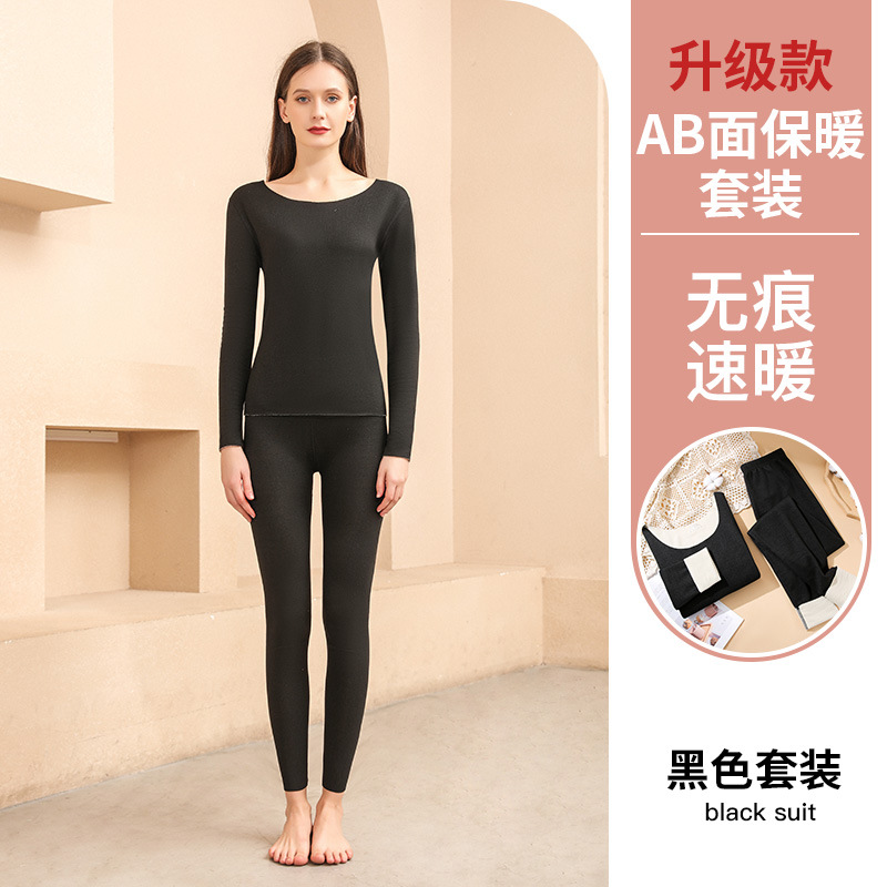 双面磨毛无缝保暖套装秋冬新款无痕圆领AB面保暖内衣秋衣秋裤套装