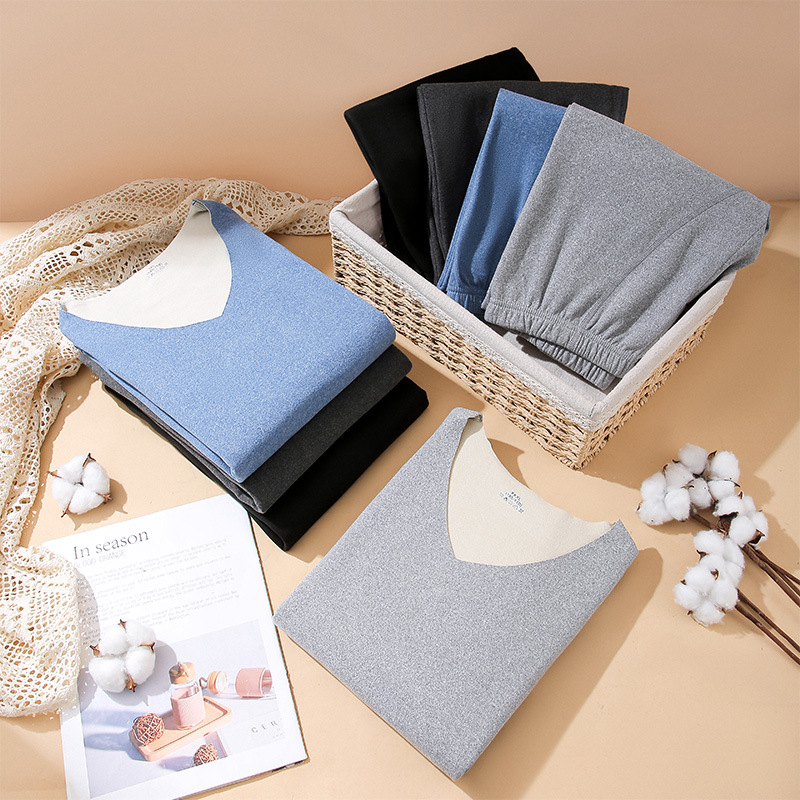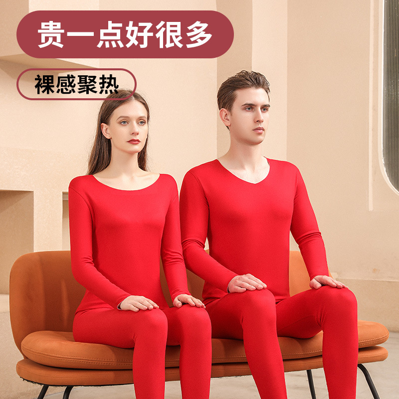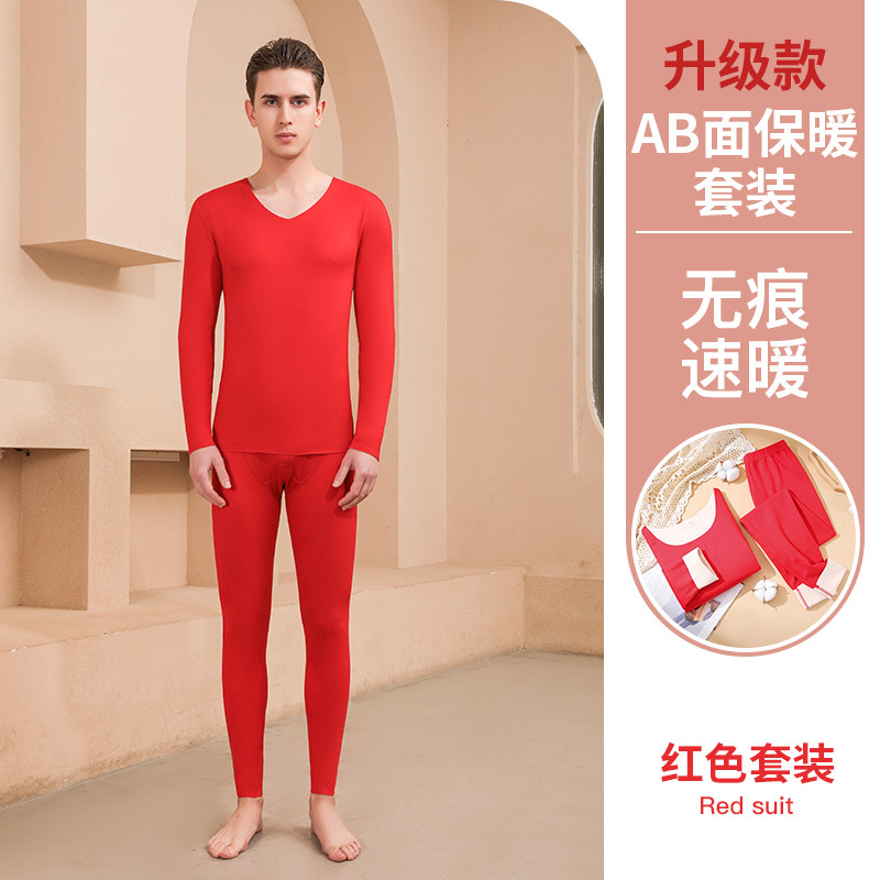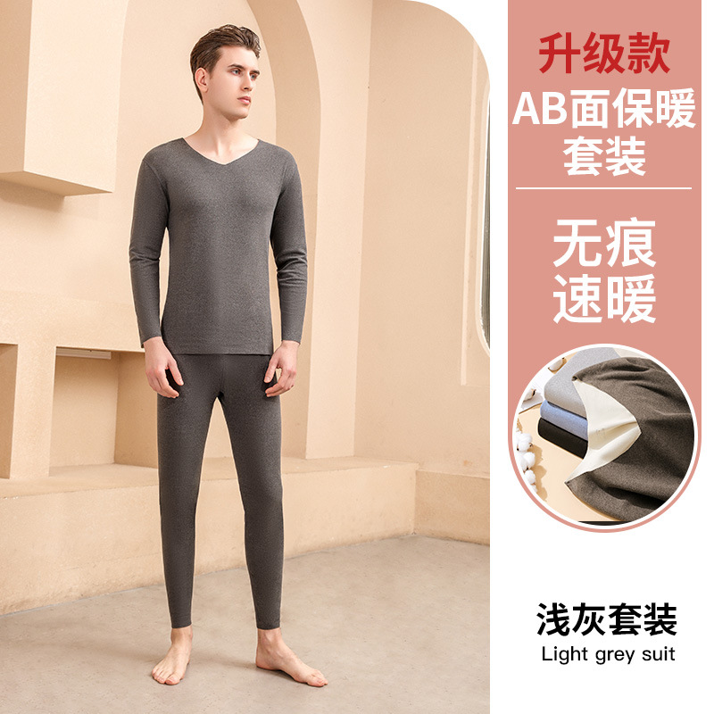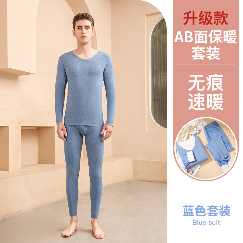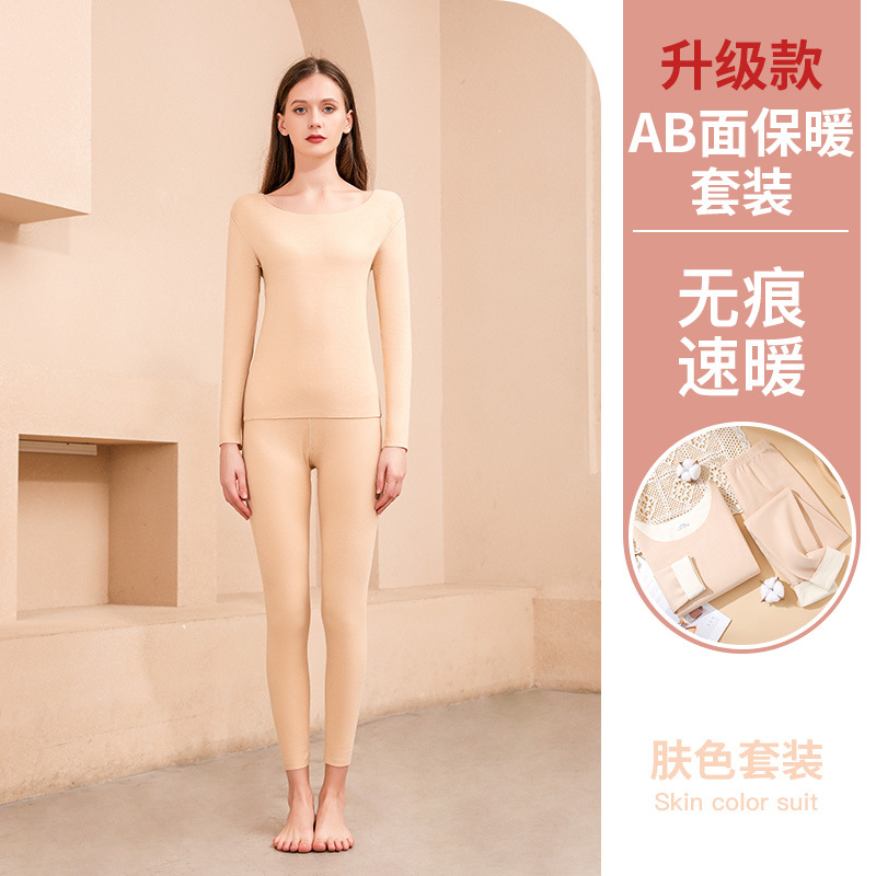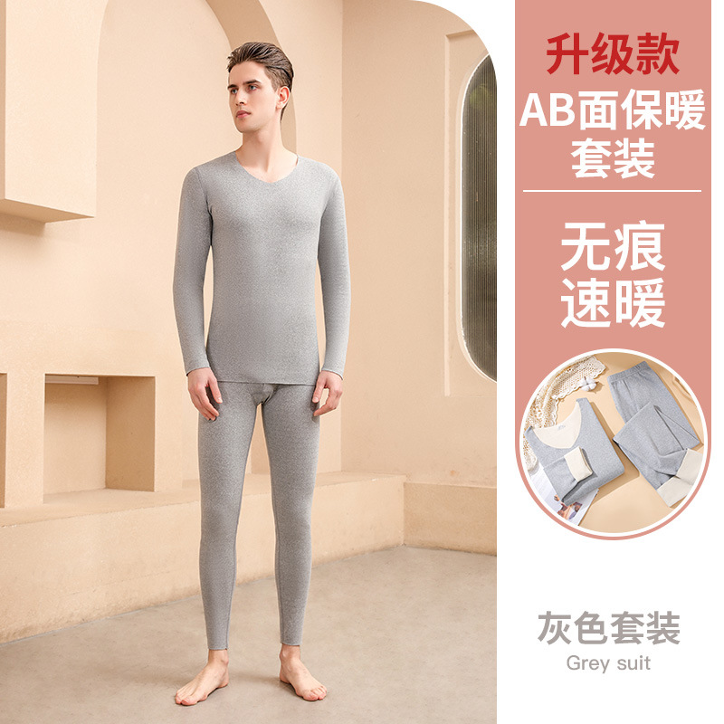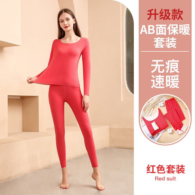 双面磨毛无缝保暖套装秋冬新款无痕圆领AB面保暖内衣秋衣秋裤套装