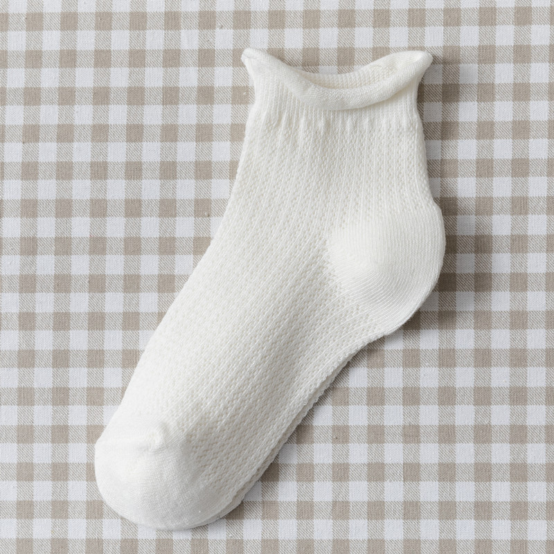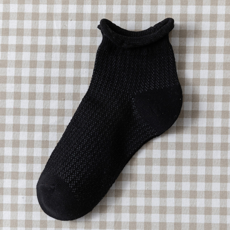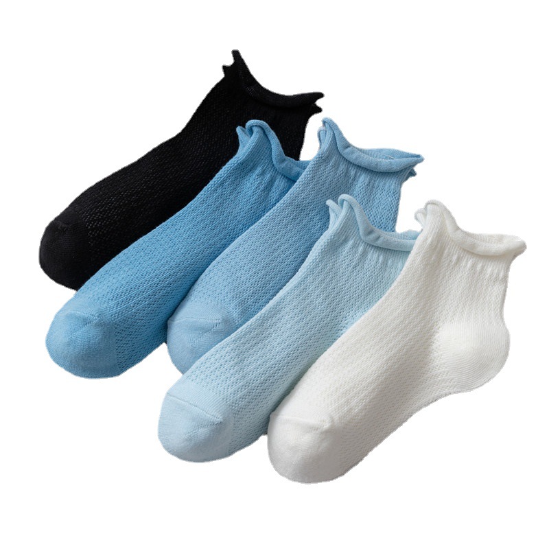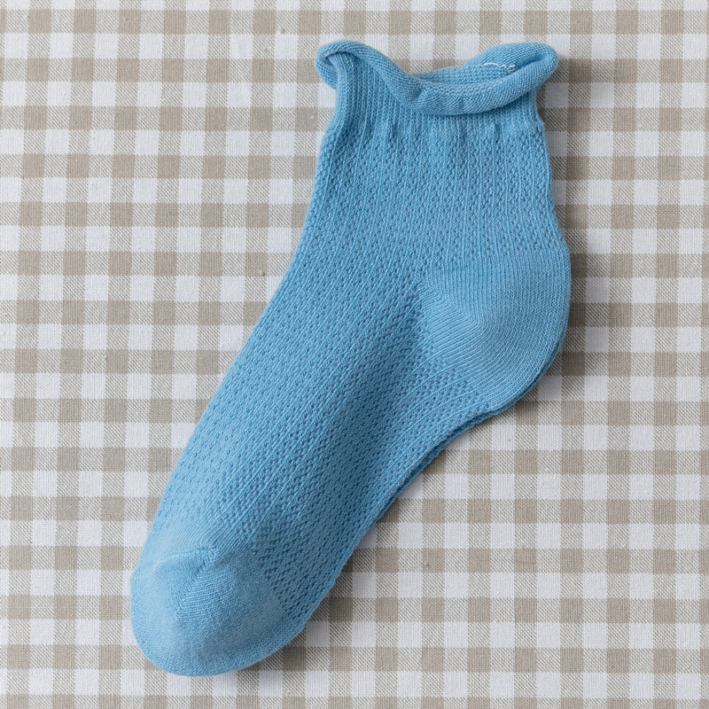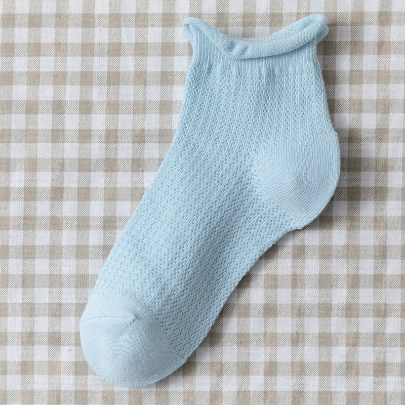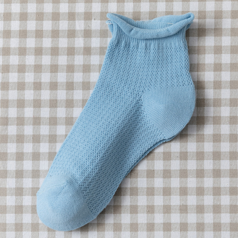 夏季薄款网眼透气蓝色棉袜子女浅口短袜潮船袜日系可爱卷边短筒