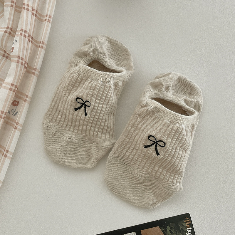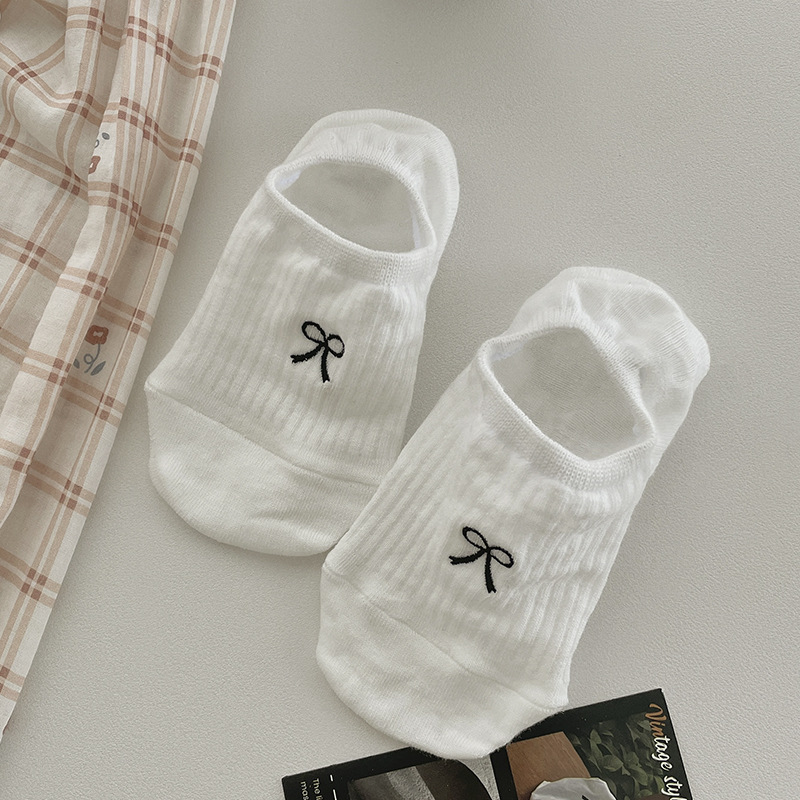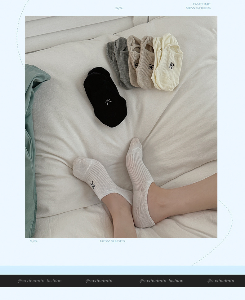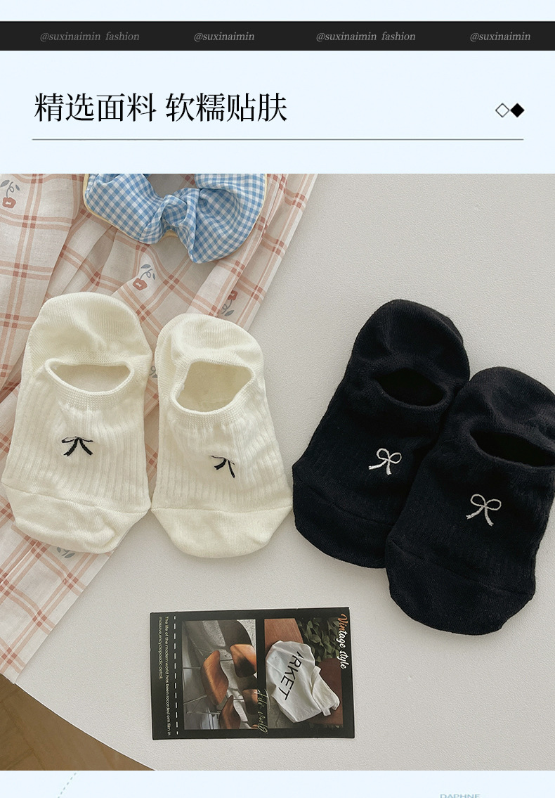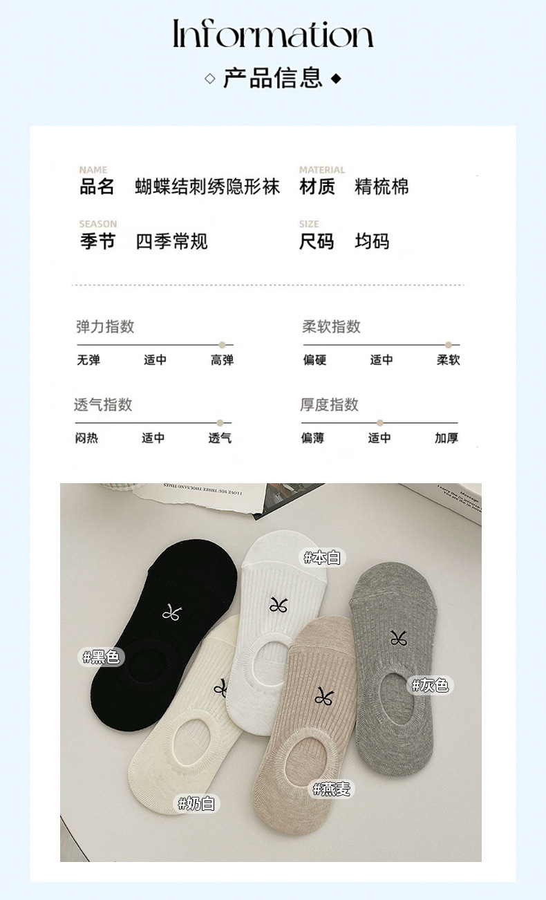春夏蝴蝶结刺绣船袜纯色薄棉硅胶防滑隐形袜函购ins少女浅口袜子