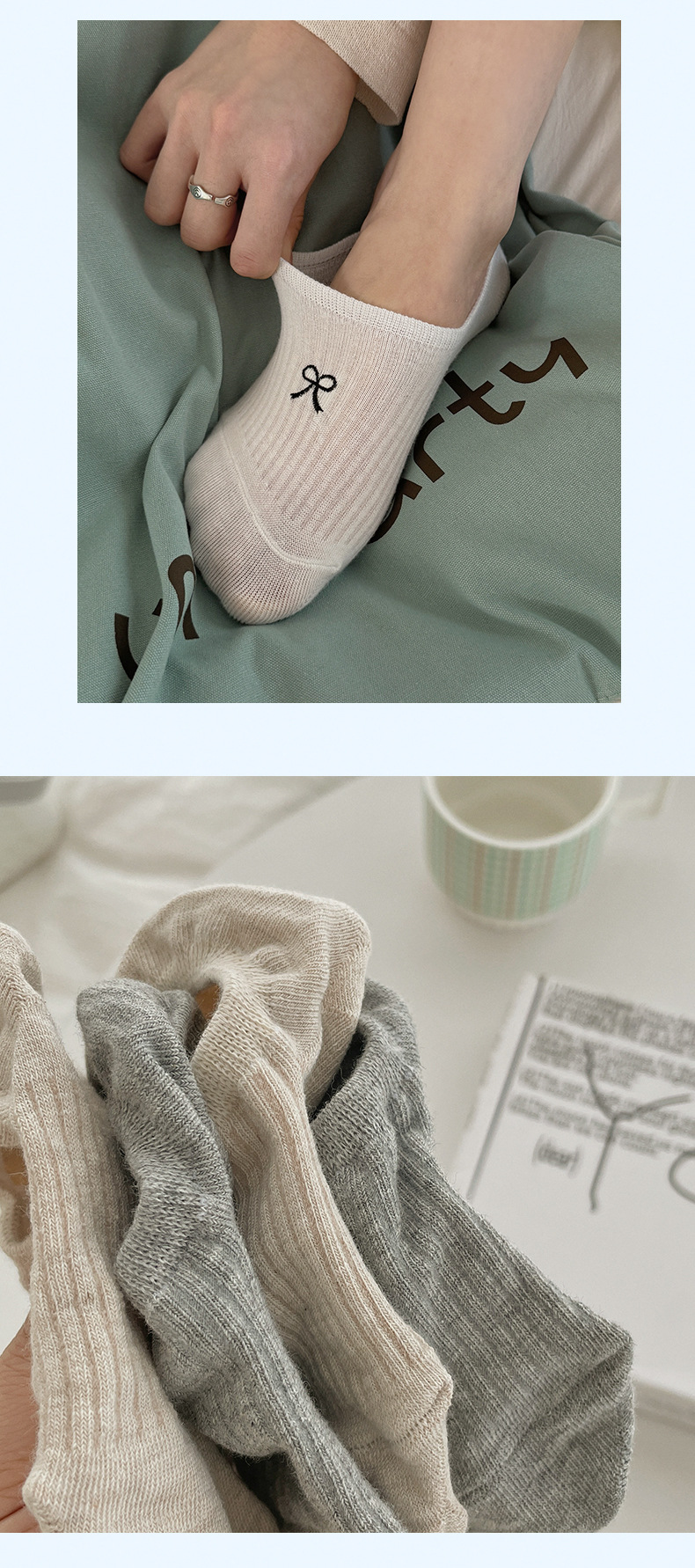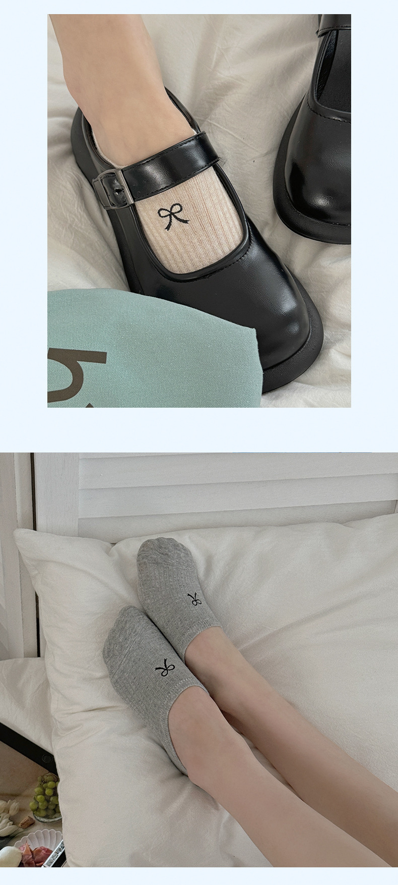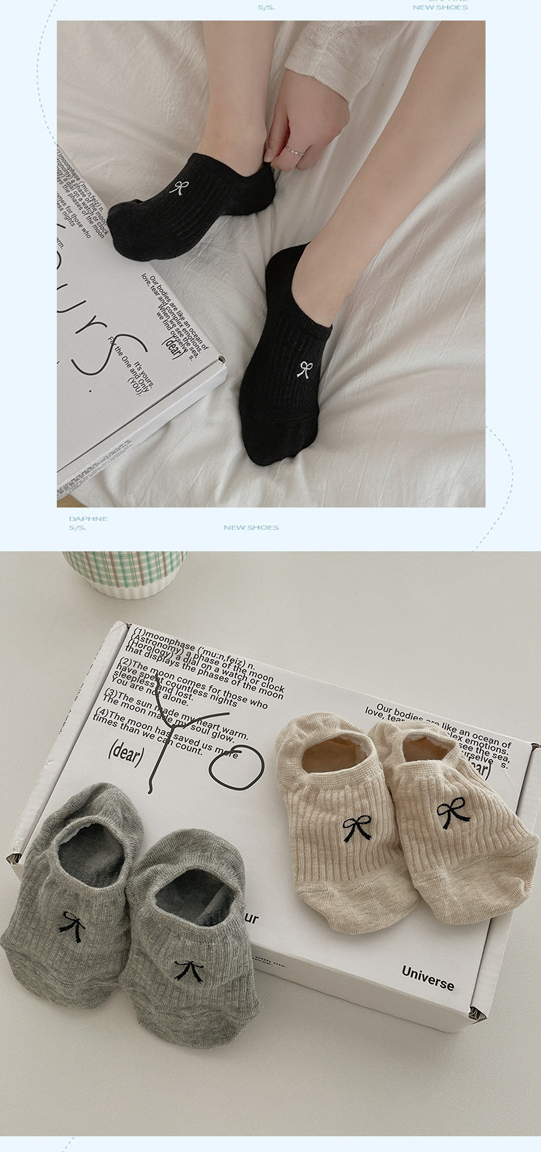 春夏蝴蝶结刺绣船袜纯色薄棉硅胶防滑隐形袜函购ins少女浅口袜子
