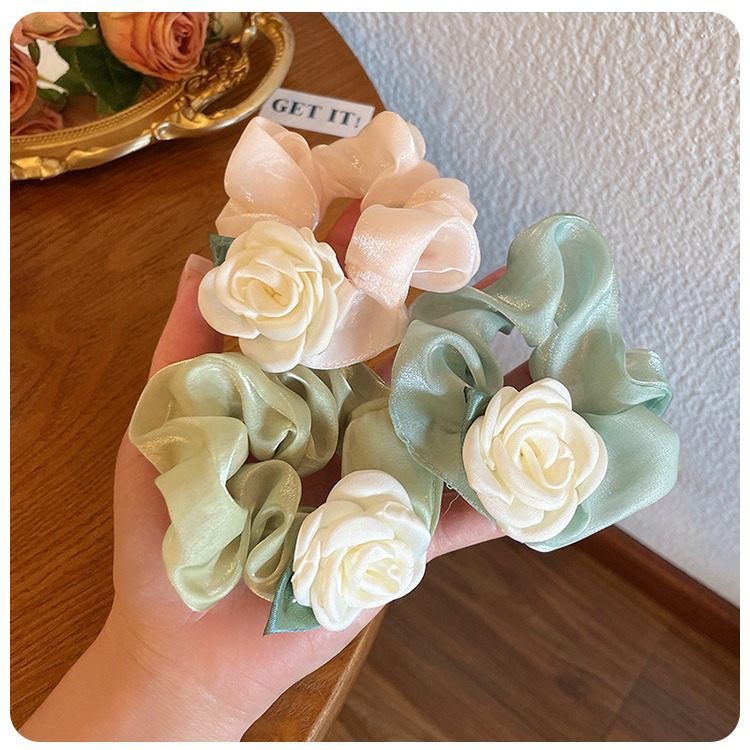 法式大肠发圈山茶花气质发绳发饰甜美小众女个性扎马尾头绳头饰
