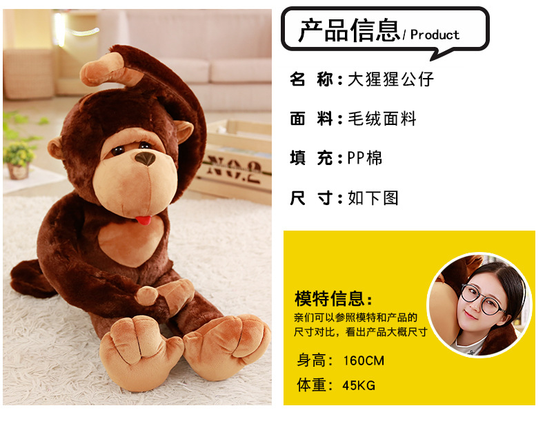 跨境亚马逊热销大猩猩毛绒玩具公仔大猴子大号抱枕公仔女生日礼物