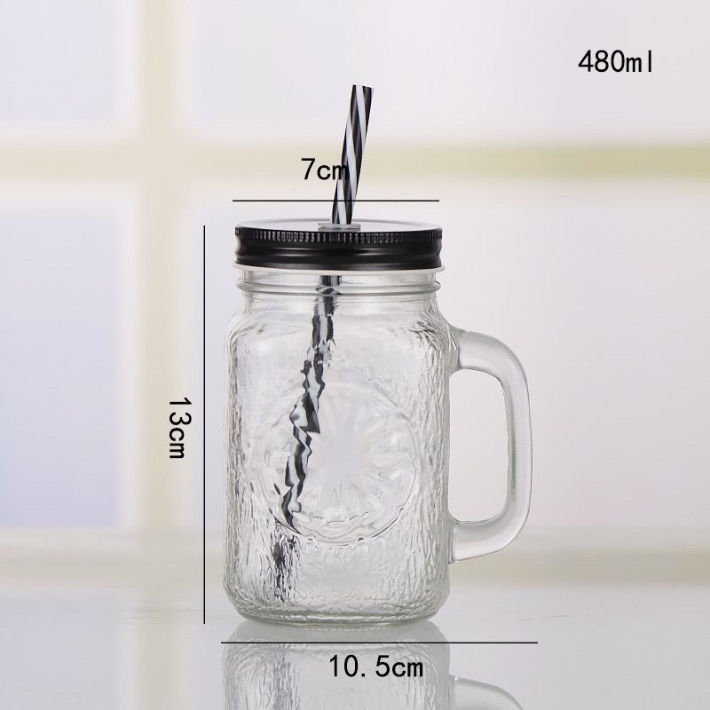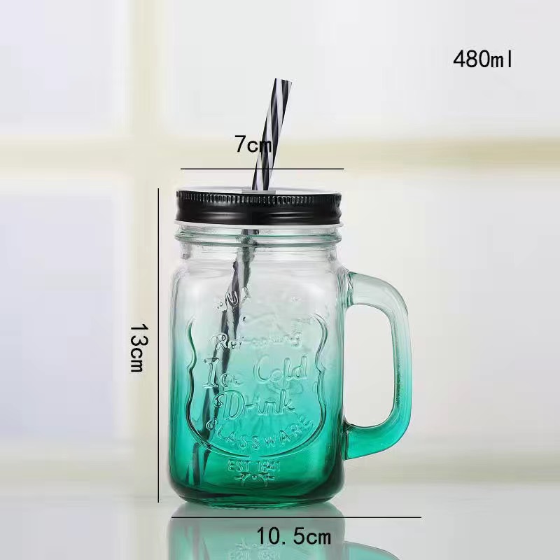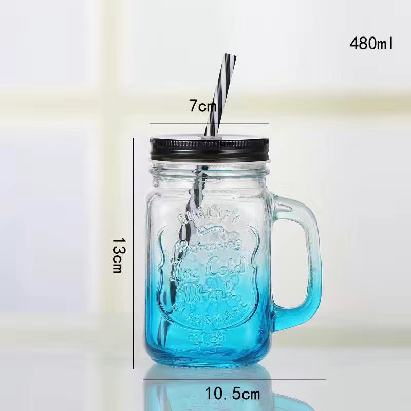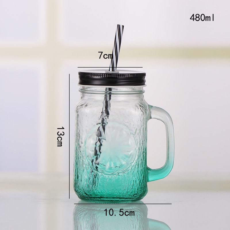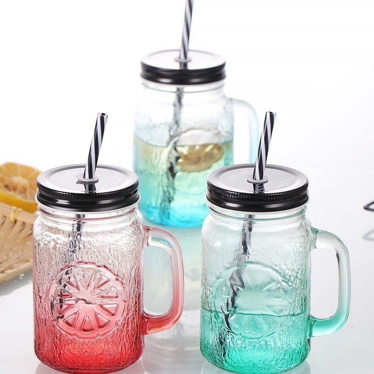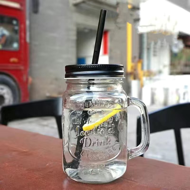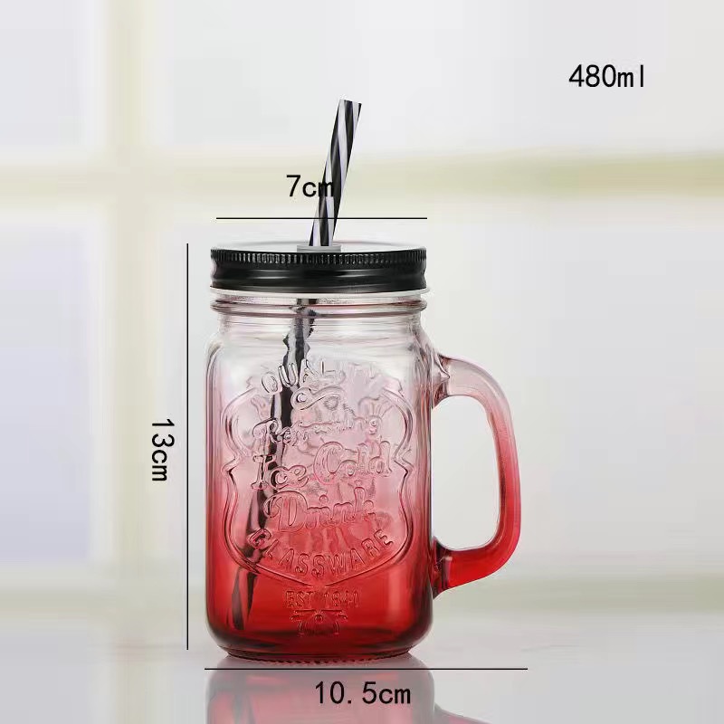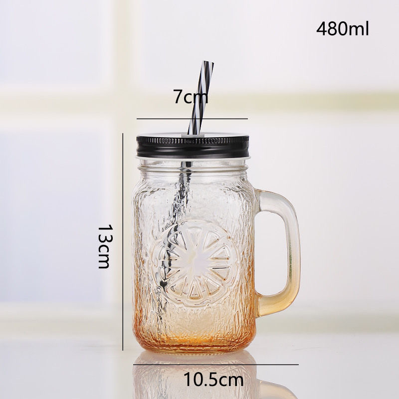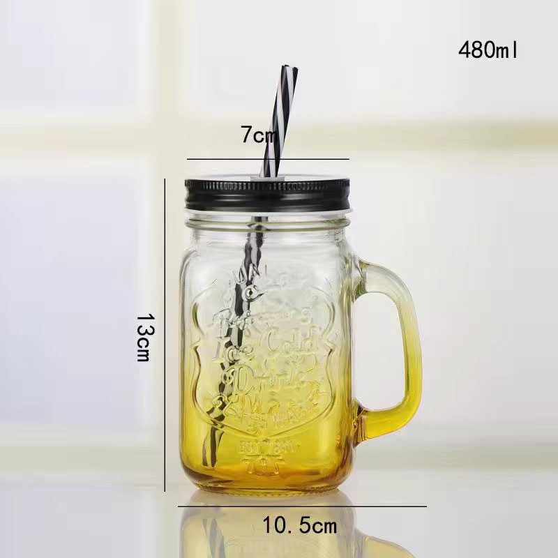 创意情侣梅森杯冰橘玻璃杯韩版奶茶成人饮料果汁杯把子杯公鸡杯
