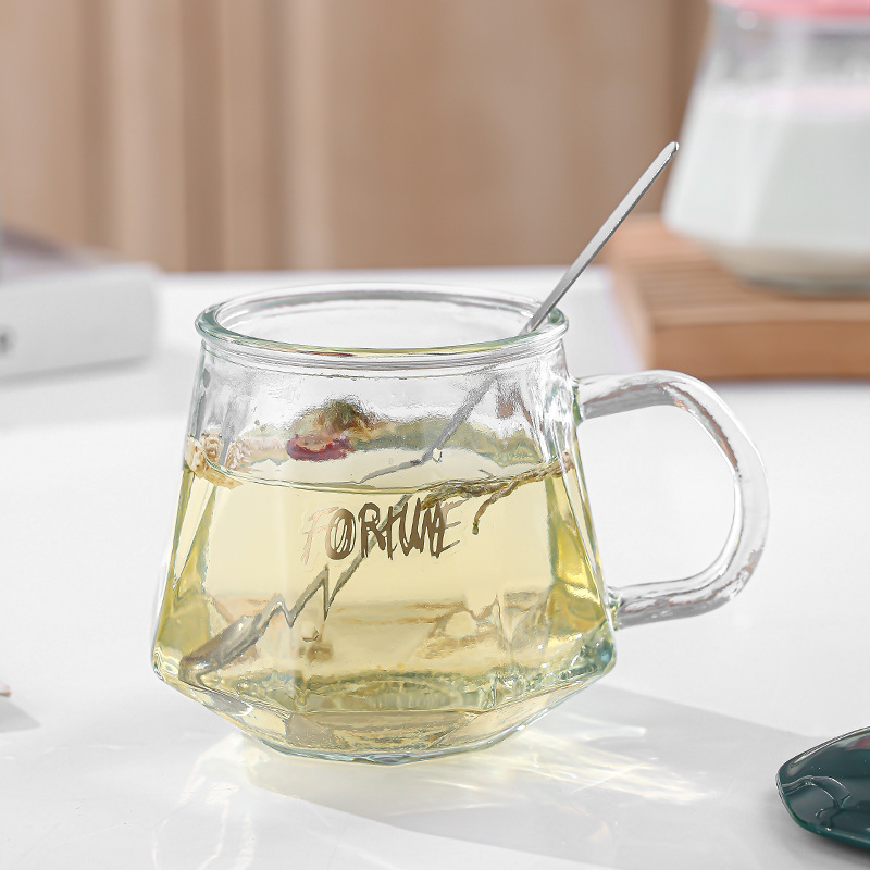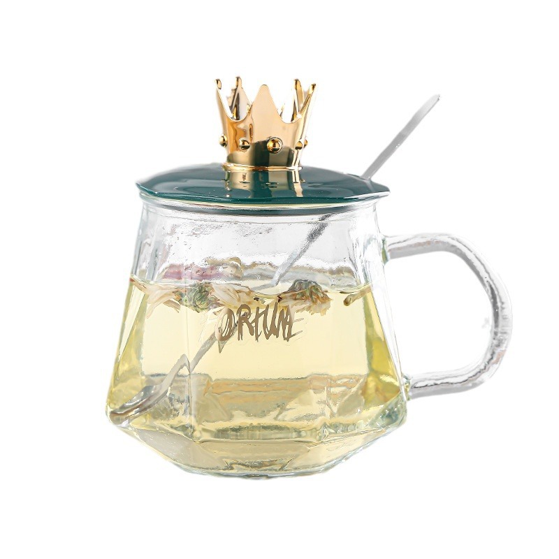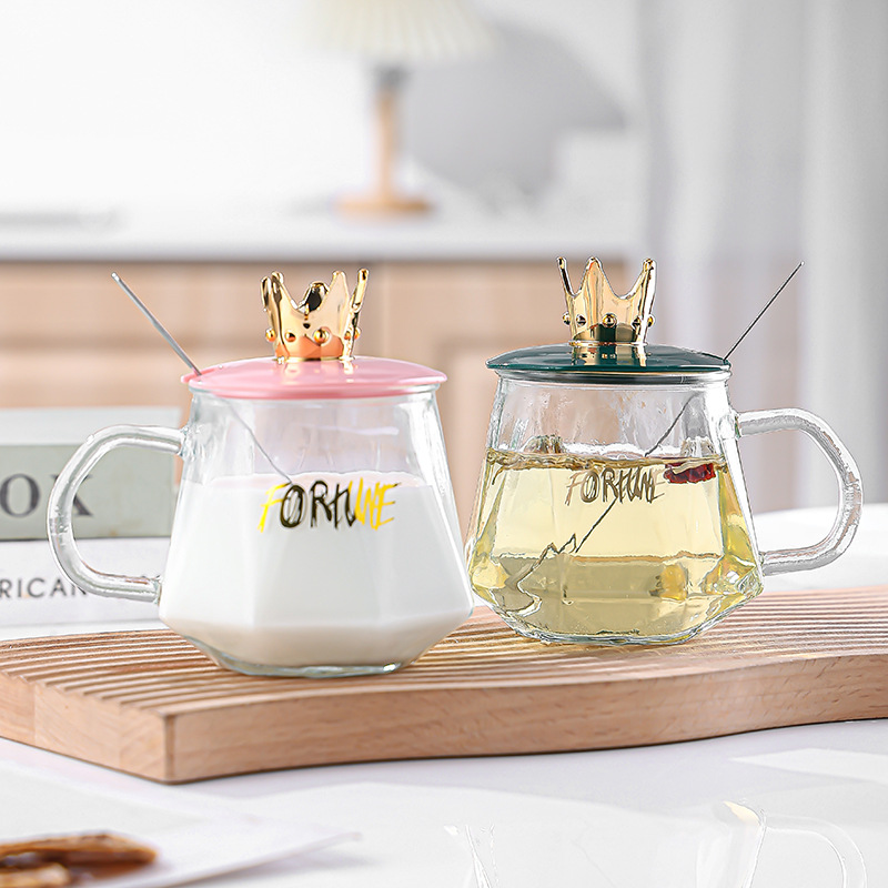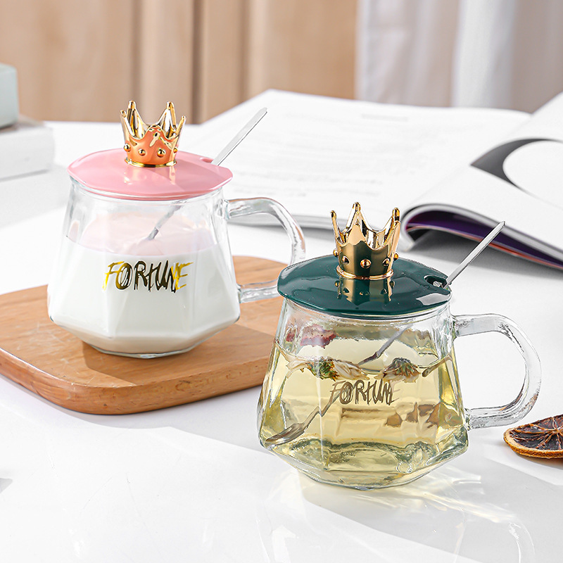 高颜值ins早餐皇冠把手玻璃水杯咖啡带勺女生办公室礼品杯子