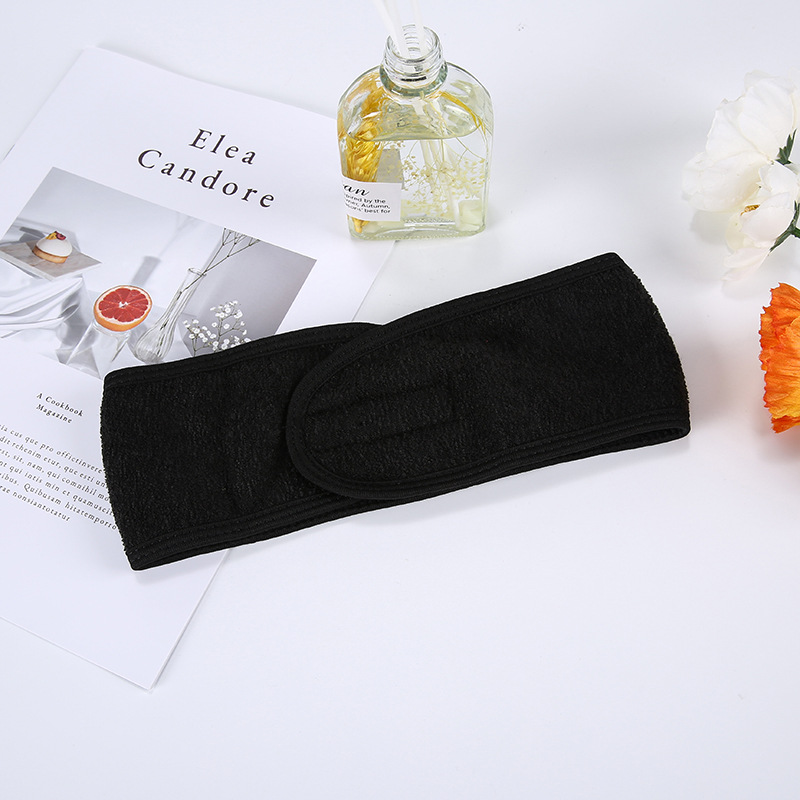 魔术贴毛巾布束发美容运动头带化妆纯色瑜伽扎头带跨境蚂蚁布刺绣