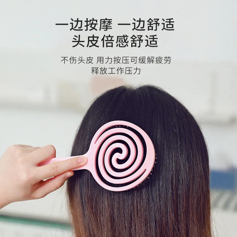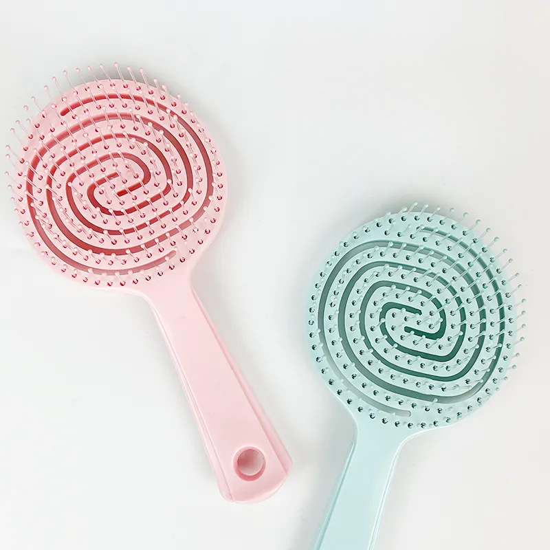 马卡龙色蓬松镂空按摩梳子卷发梳造型按摩梳子棒棒糖排骨梳批发
