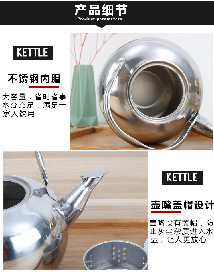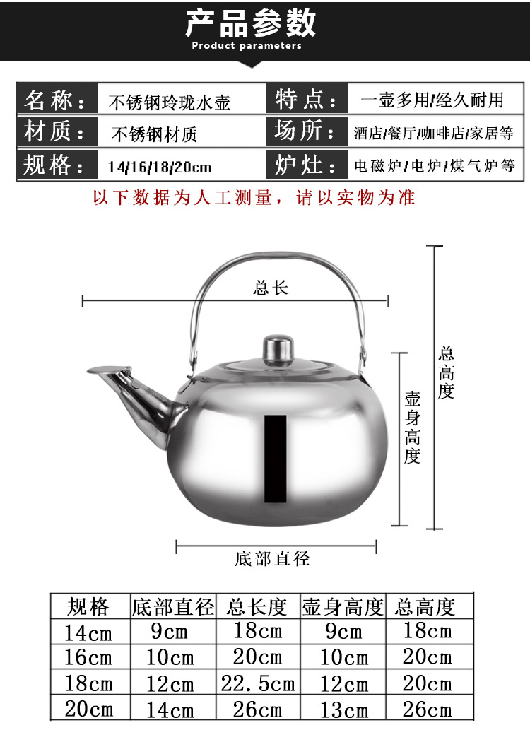 不锈钢玲珑壶加厚大容量煮茶壶泡茶壶酒店饭店餐厅商用户外烧水壶