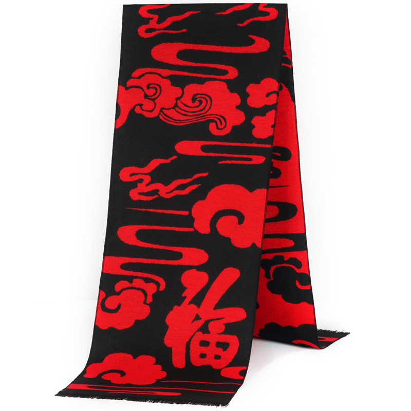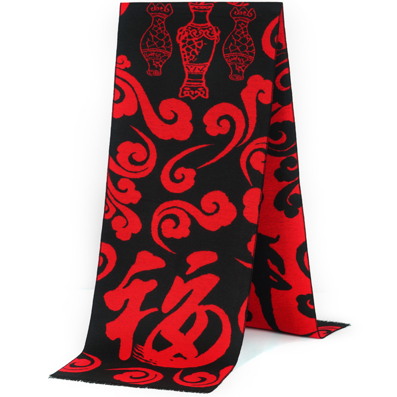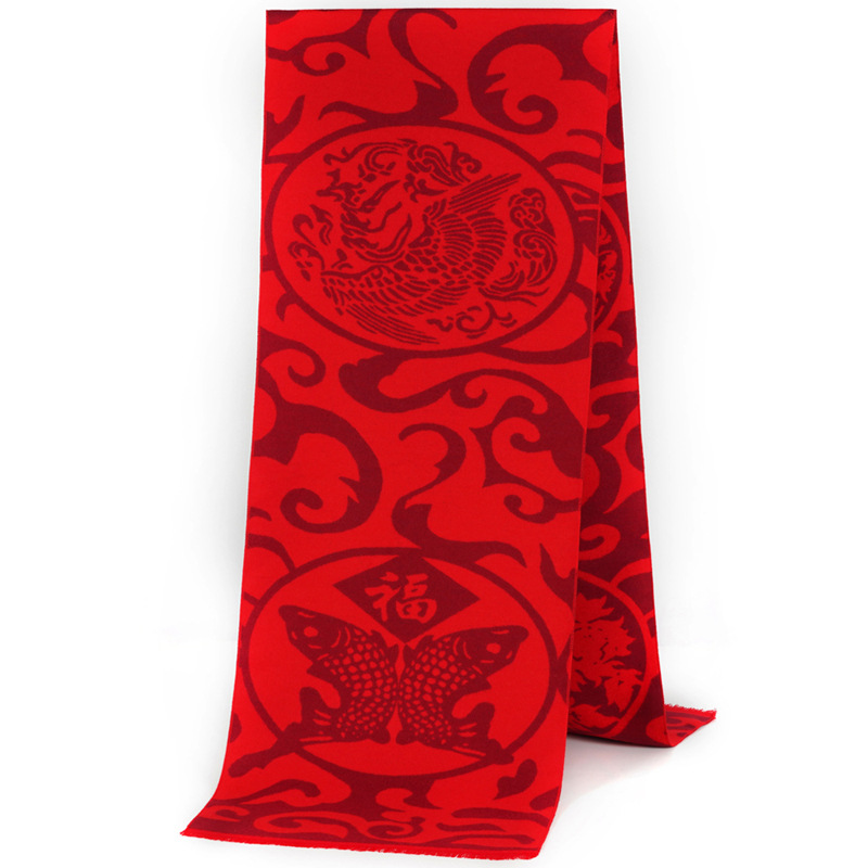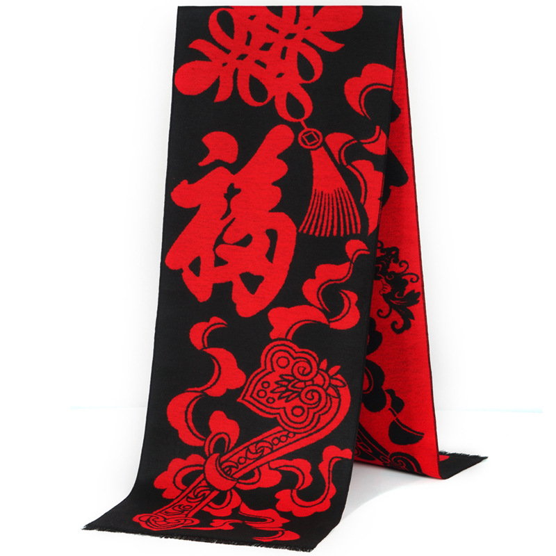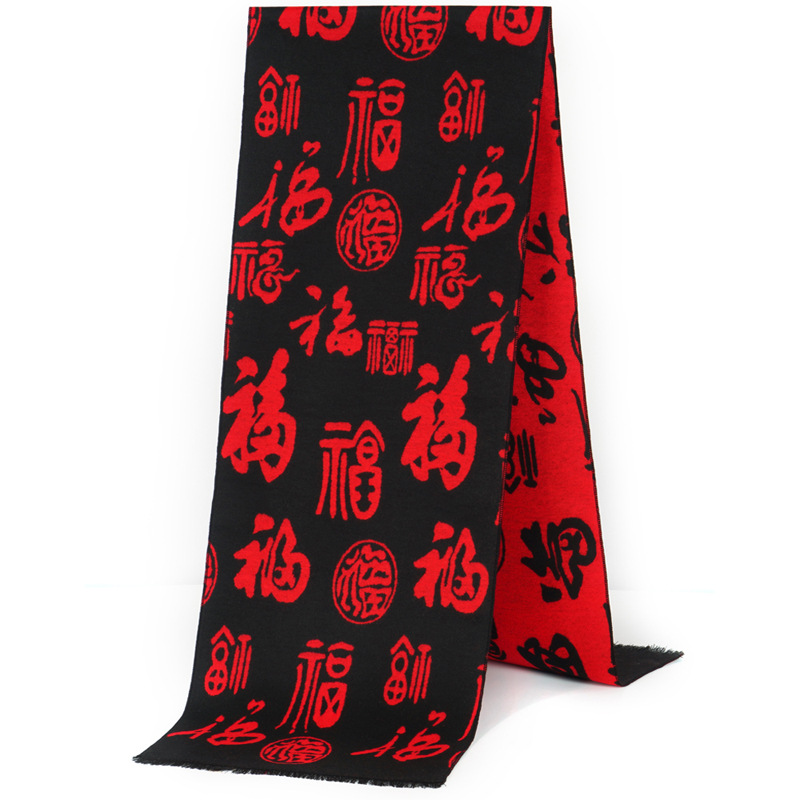 祝寿福字围巾平安福定制logo年会活动礼品刺绣印字红围巾披肩批发