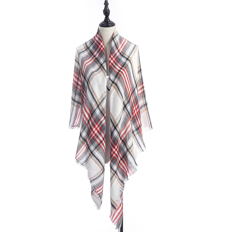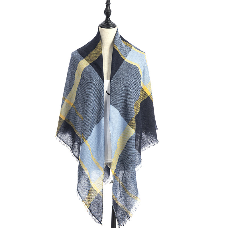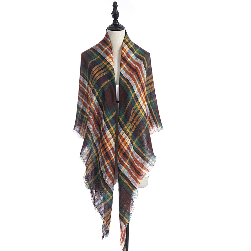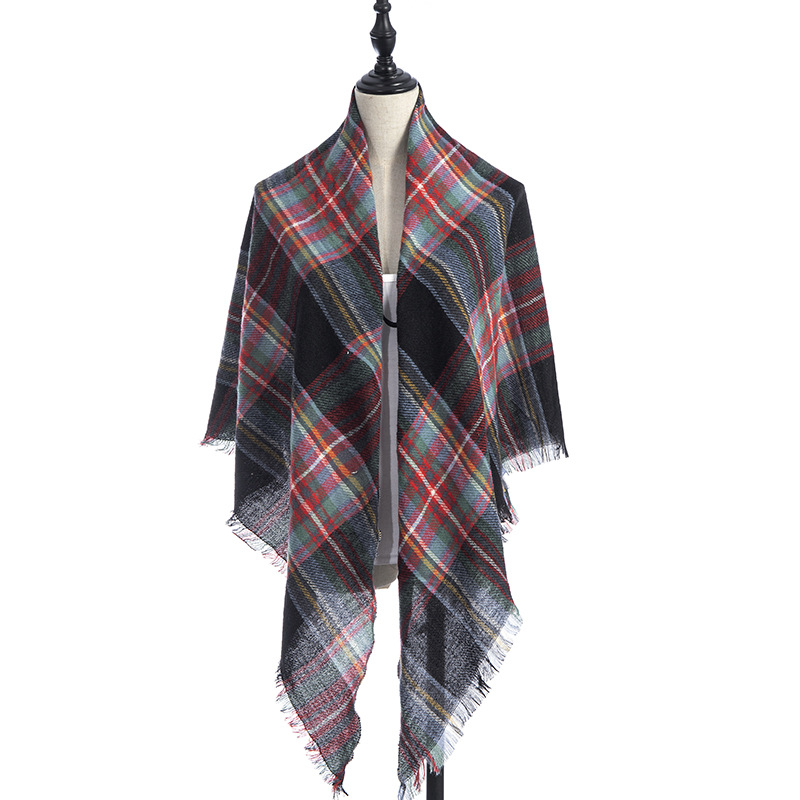 欧美春秋冬季新款仿羊绒双面七彩格子方巾三角巾围巾女士围脖披肩