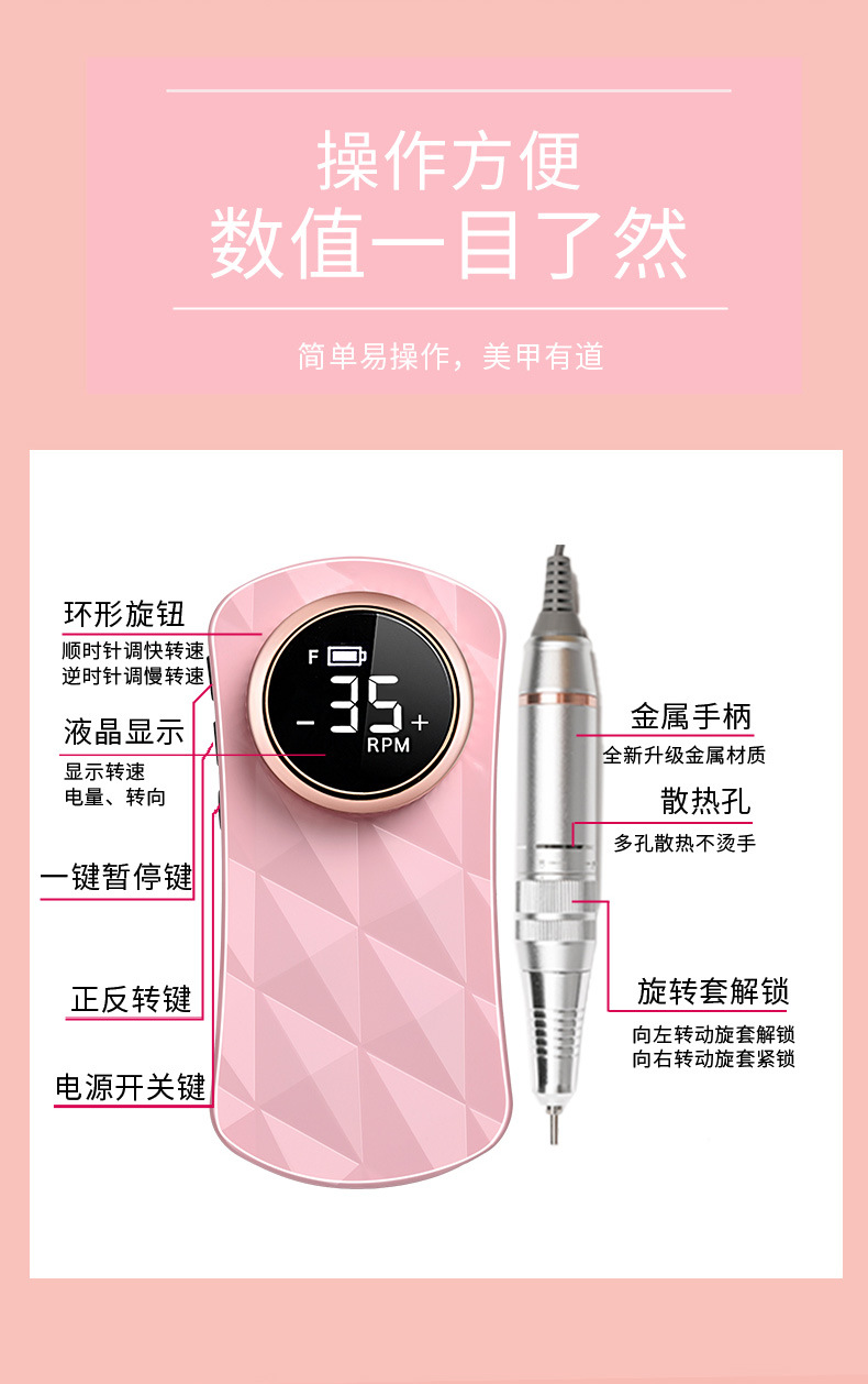 跨境爆款慕礼美甲打磨机美甲店专用修甲卸甲去死皮蓄电款磨甲机器
