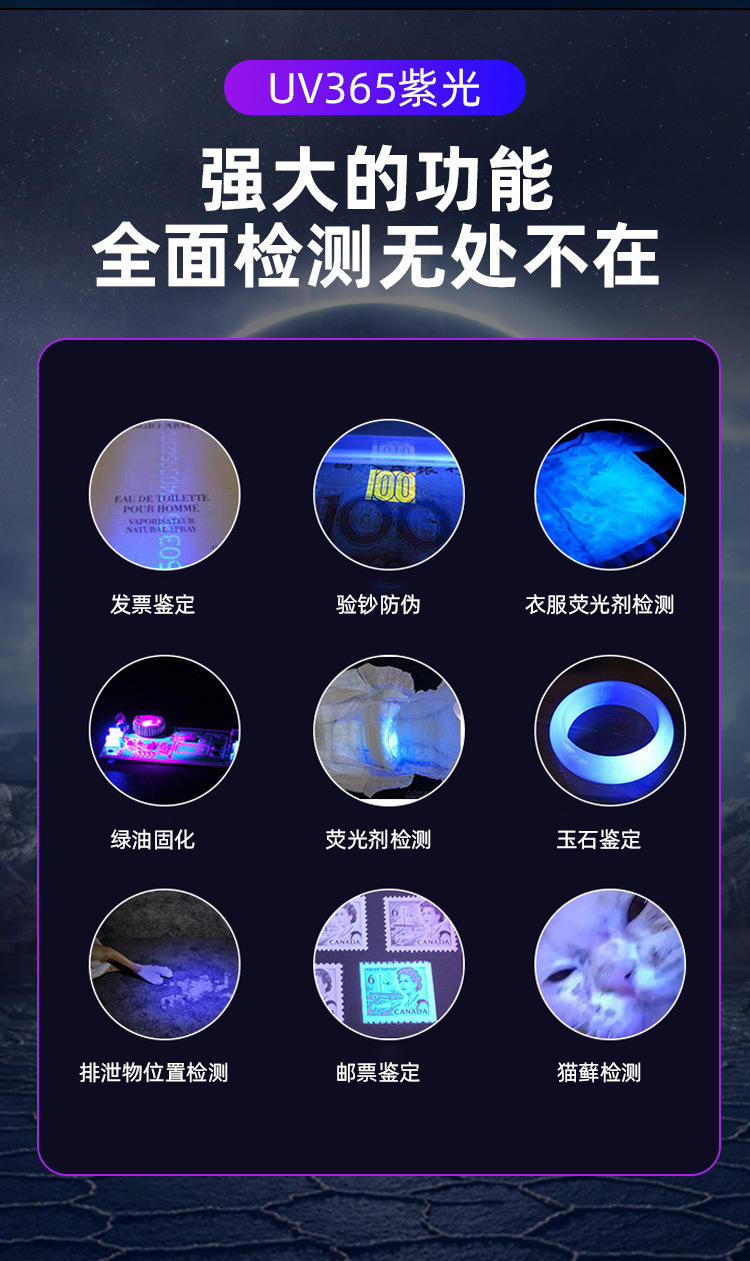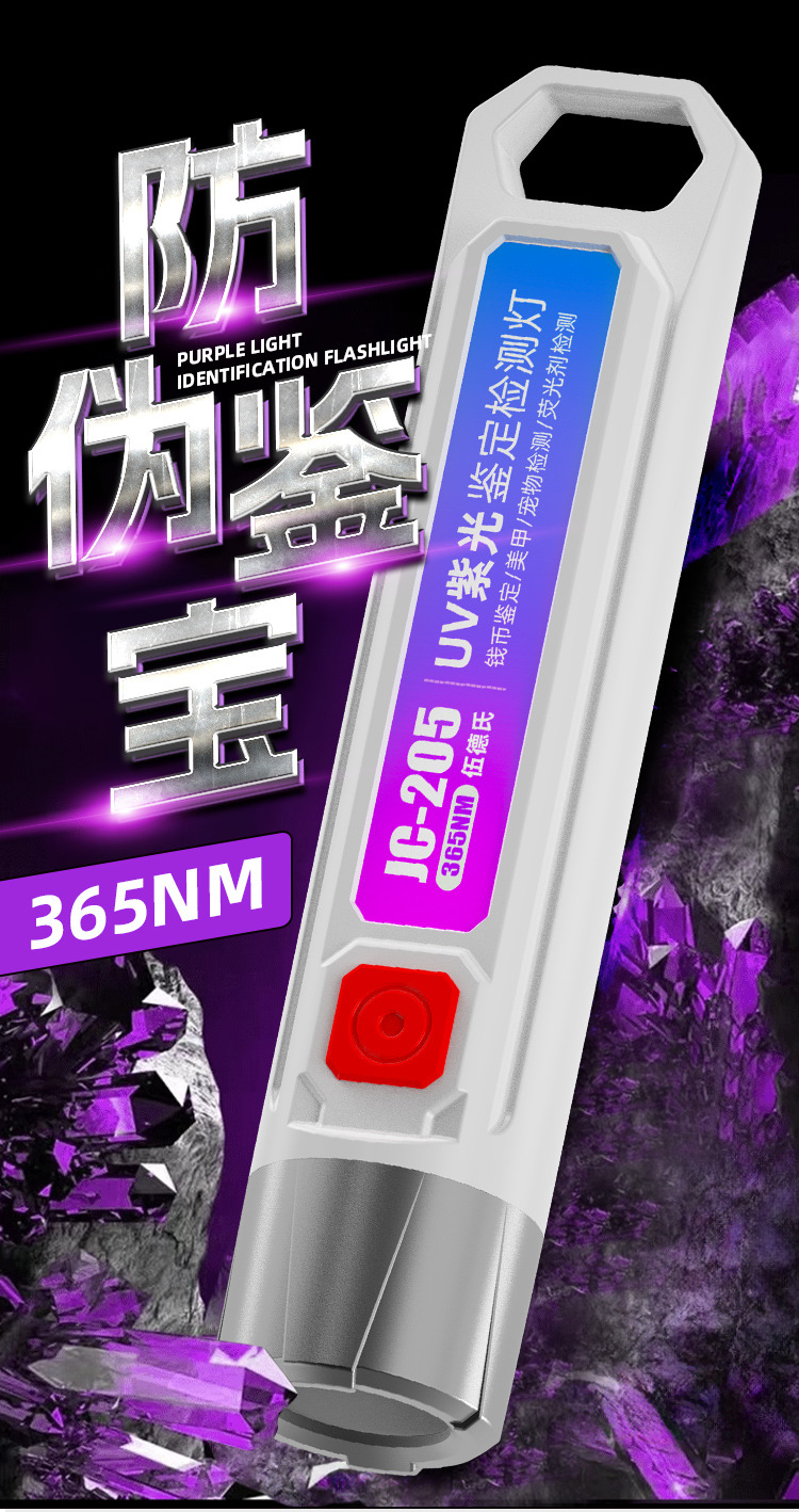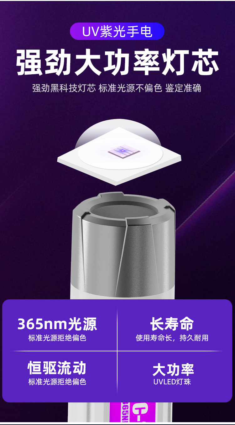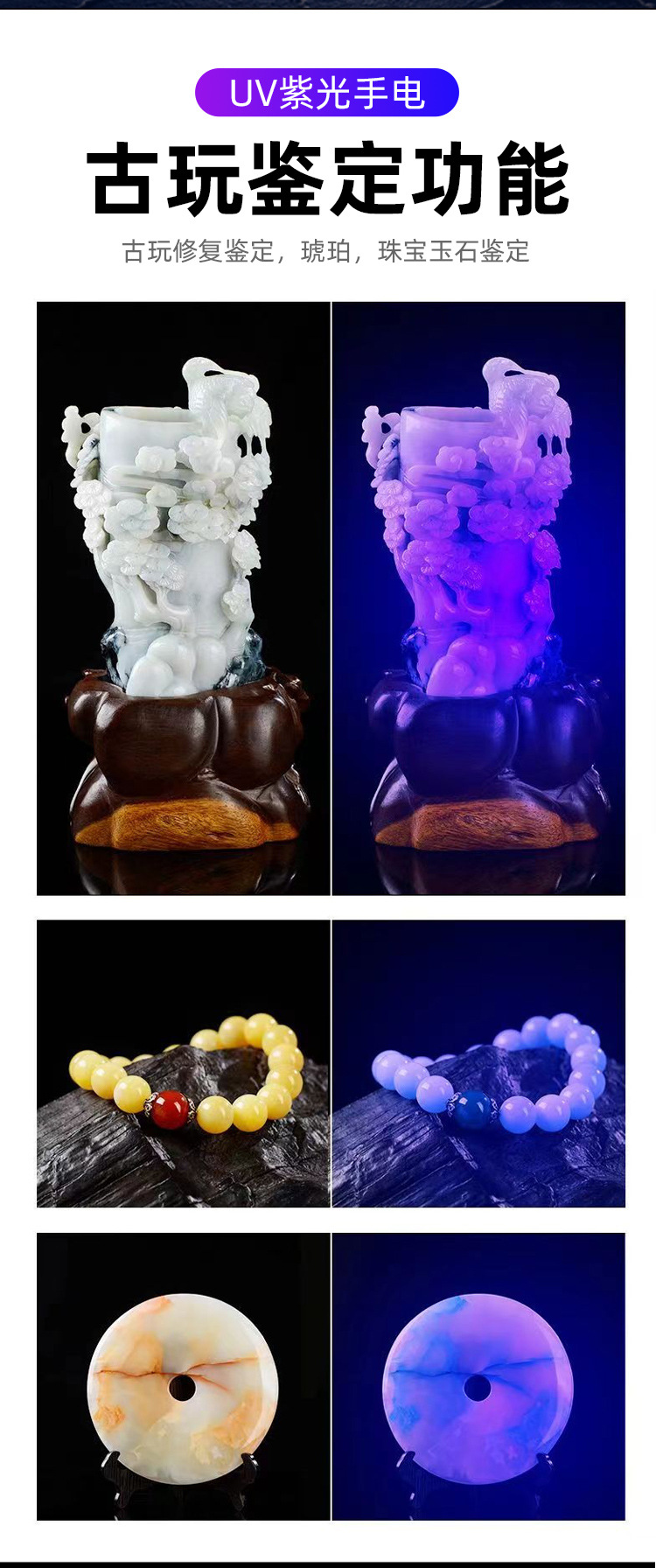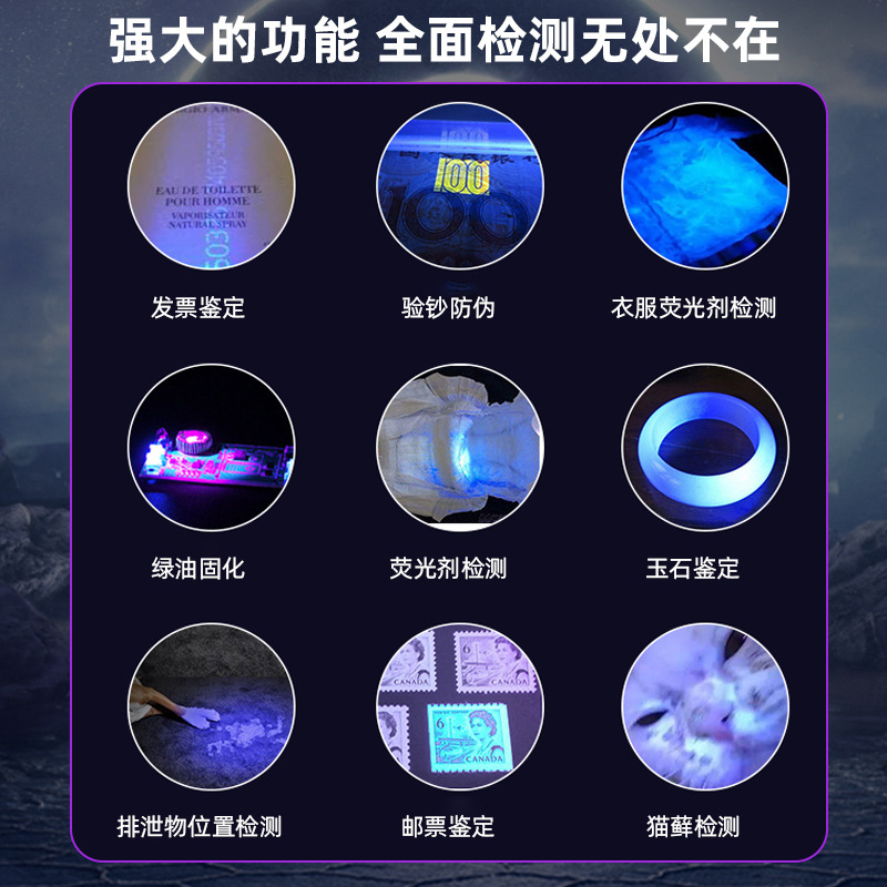 紫光灯鉴定专用手电筒烟酒防伪翡翠玉石UV胶固化LED伍德氏猫癣灯