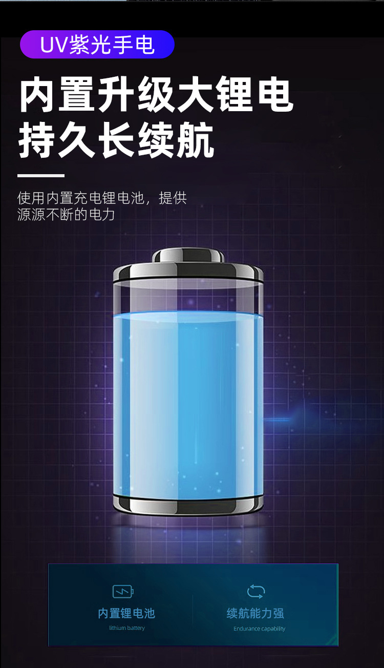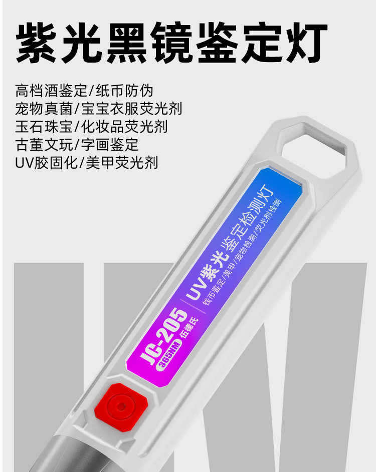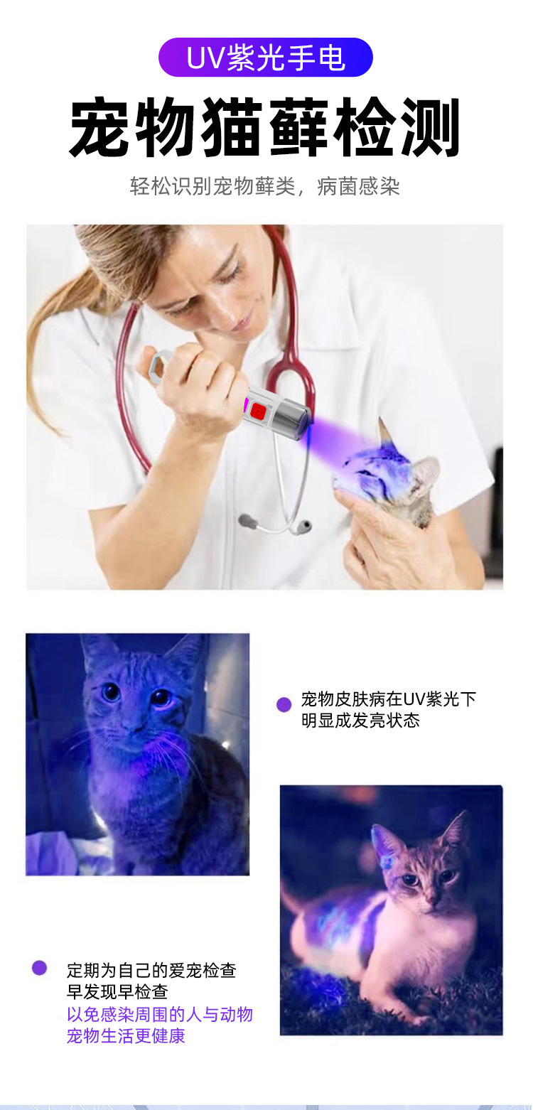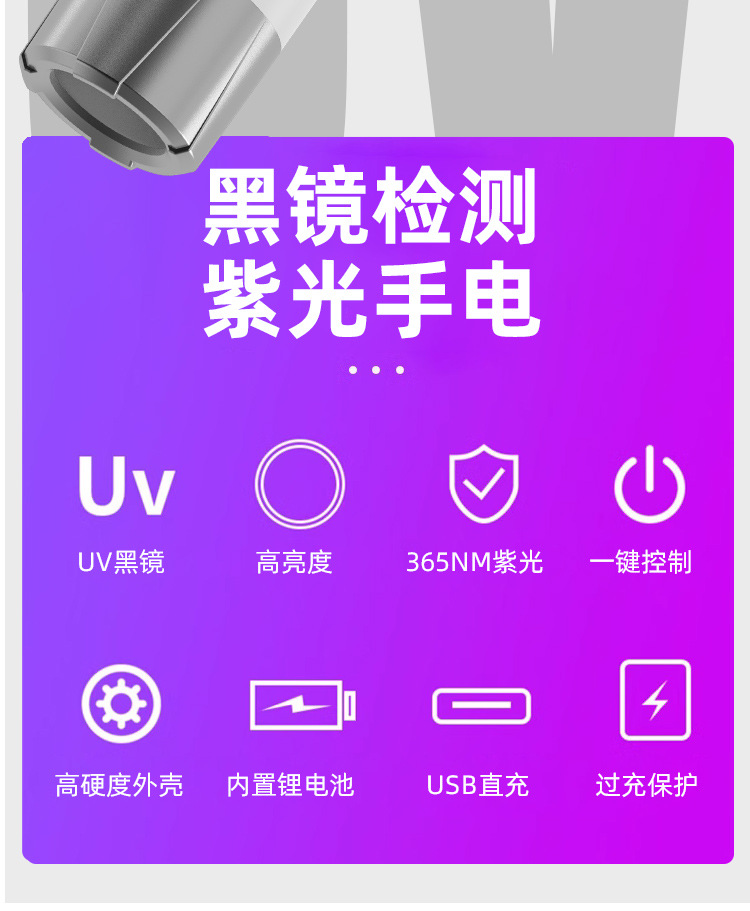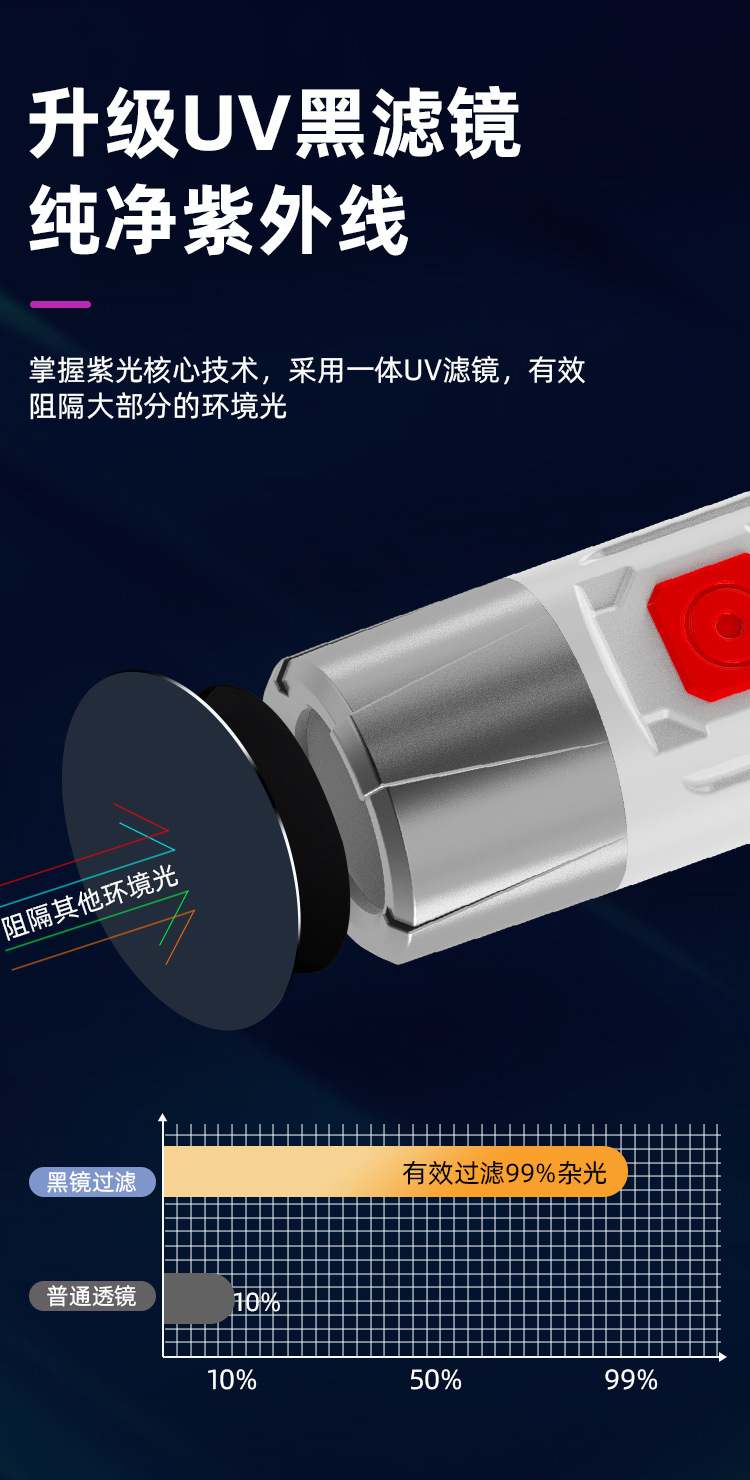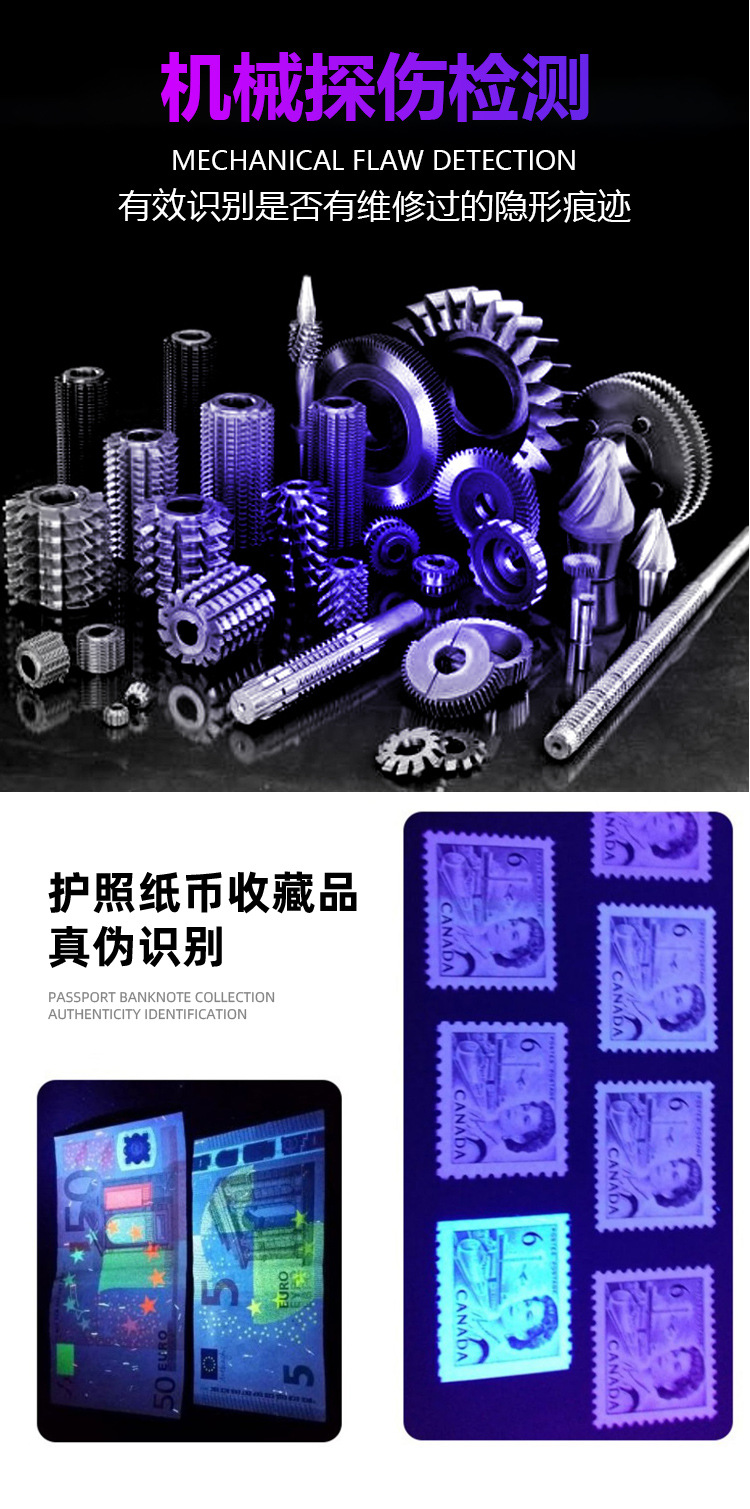 紫光灯鉴定专用手电筒烟酒防伪翡翠玉石UV胶固化LED伍德氏猫癣灯