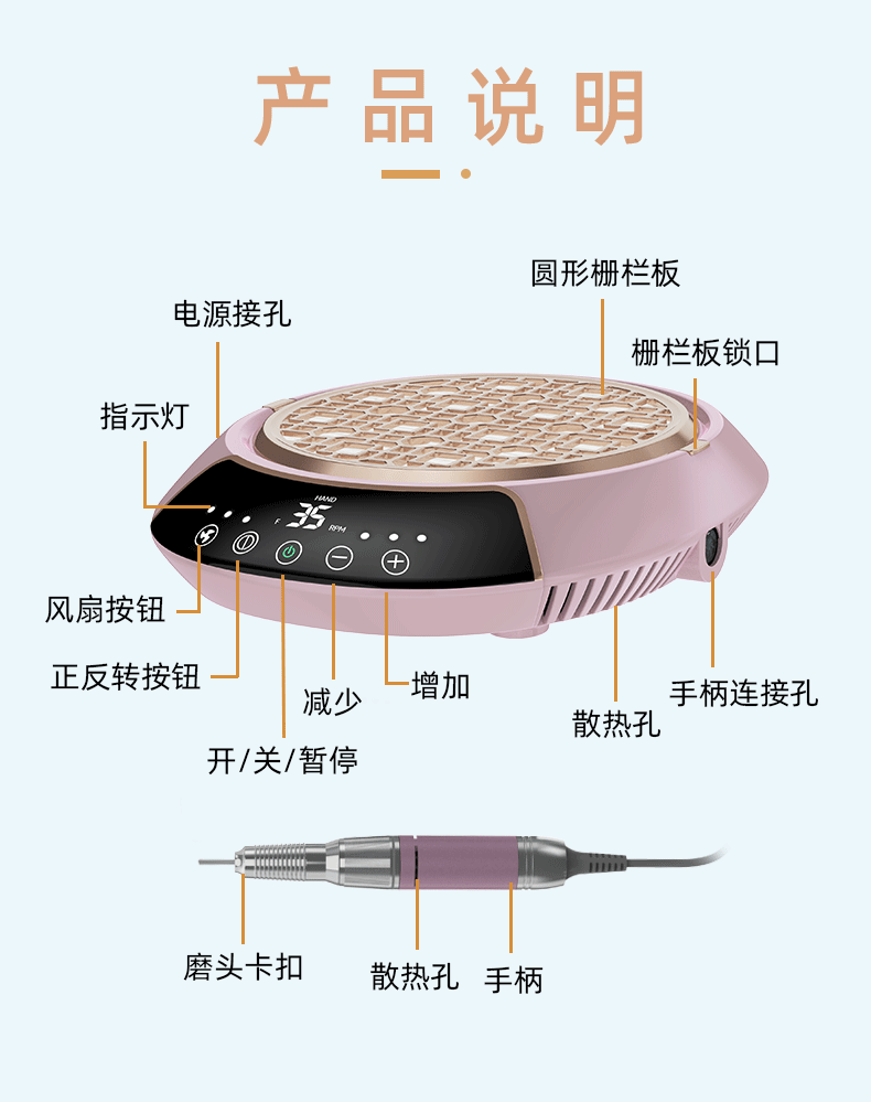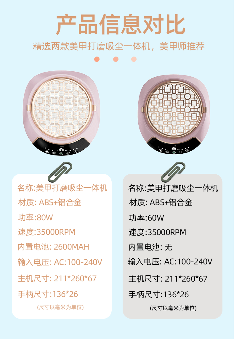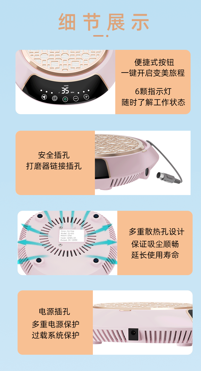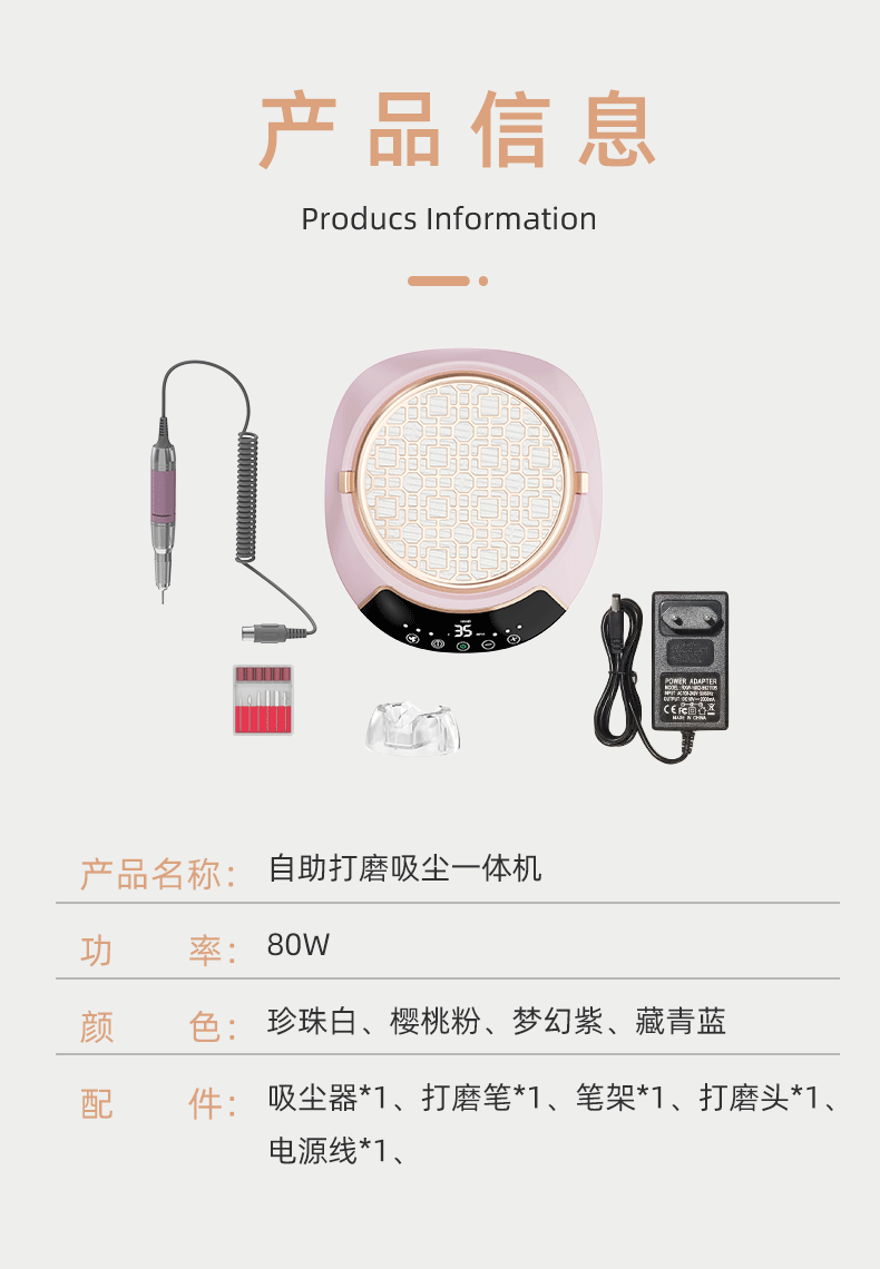 跨境新款美甲打磨吸尘一体机美甲卸甲插电式打磨机美甲静音吸尘器
