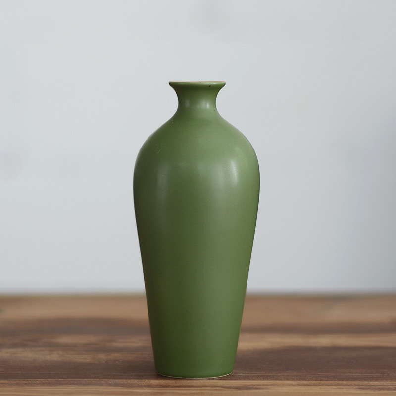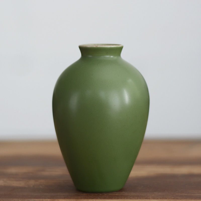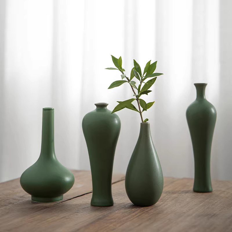景德镇厂家批发陶瓷小花瓶禅意中国风家居摆件简约干花插花器绿色