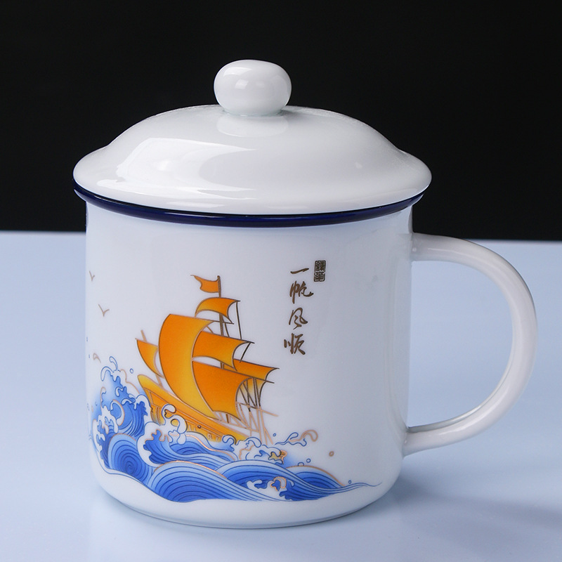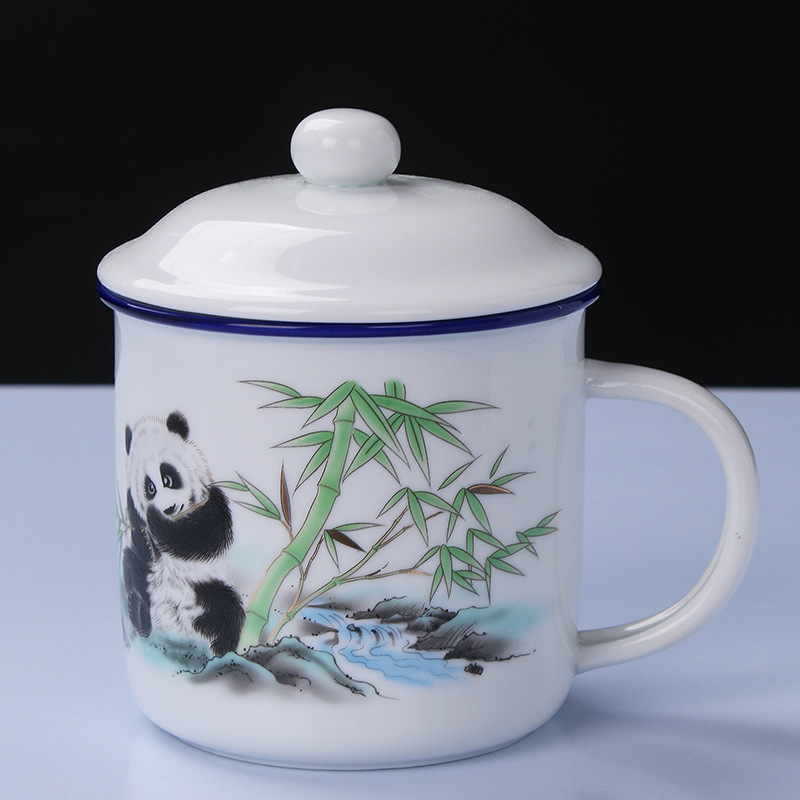 陶瓷马克杯带盖家用办公仿搪瓷水杯创意怀旧复古茶杯子一件代发