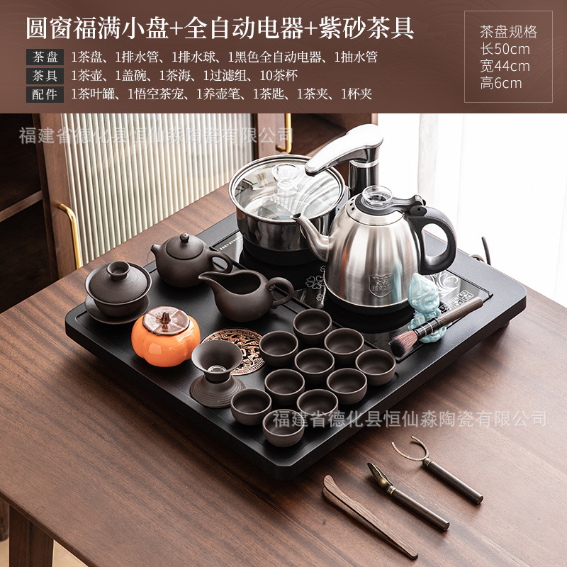 全自动底部上水烧水壶一体小号茶盘紫砂茶具套装家用客厅茶台整套